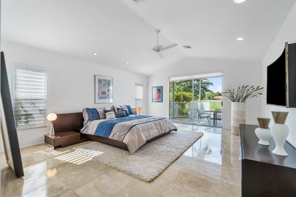 Enjoy one of its kind model home in the lovely Boca woods community, where your second floor balcony overlooks Lakes 11 green. This home is a spacious 3679 sq ft under air (4524 sf total) with dramatic high ceilings, master bedroom with 2 walk-in closets plus 3 more bedrooms, 3 full baths, a powder room and a cabana bath. All bathrooms are strikingly done with contemporary Porcelanosa tile. This home has 2 HVAC units (main w/ air filtration unit) and 2 hot water heaters. All water pipes throughout the house were replaced. Azure blue pool has new diamond brite and a tranquil patio surrounding it. The landscaping was just beautifully refreshed with new custom lighting. Impact windows throughout and new front door are on order and will be fully paid prior to closing.