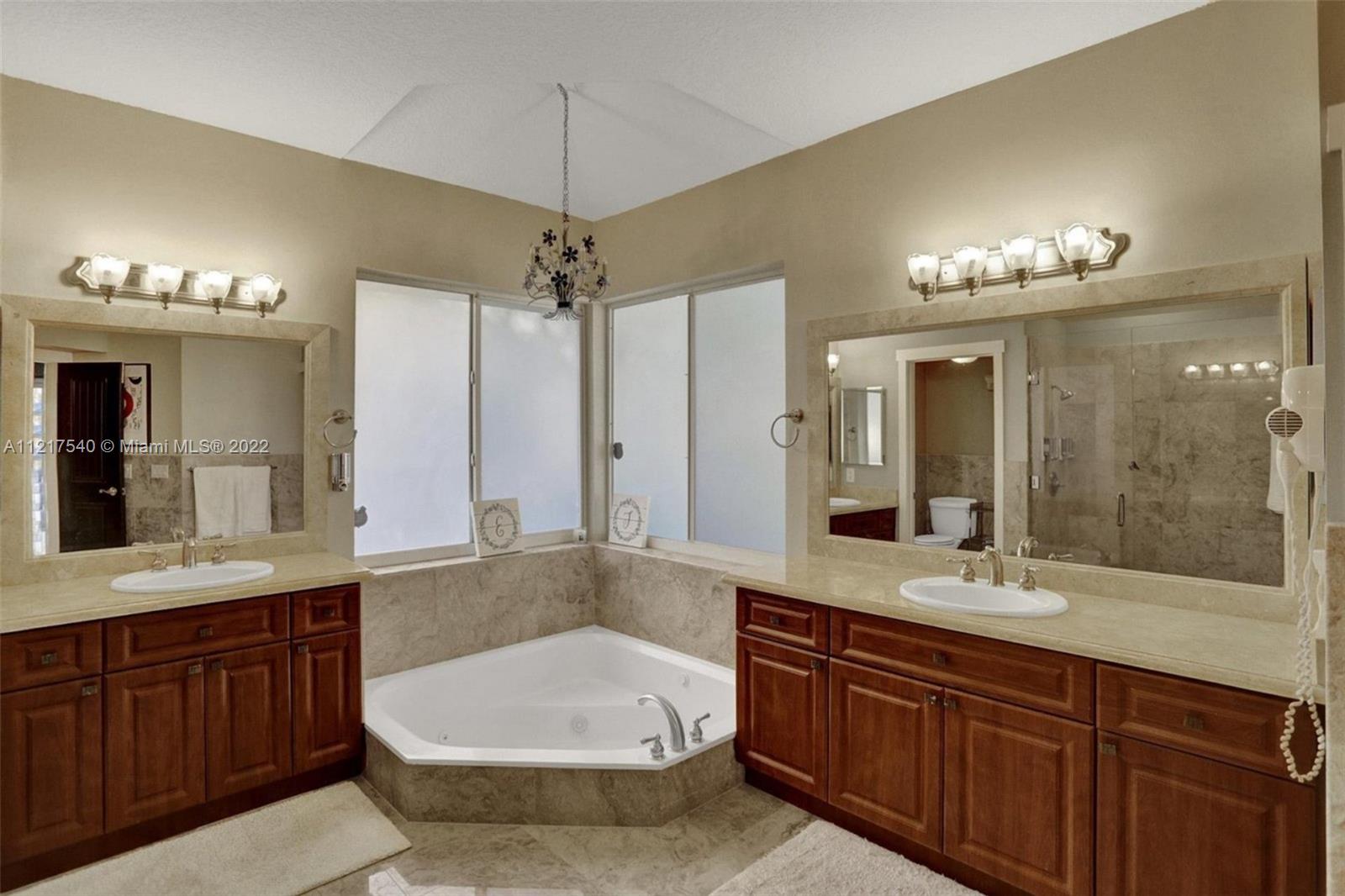 Stunning home with 5 bedrooms plus an office, 3 full bathrooms, 3 half bathrooms, pool & lake, in the guard gated section of Silver Lakes! This home features volume ceilings, marble and hardwood flooring throughout, and a beautiful wrought iron railing leading to the upper level. The upgraded gourmet kitchen is complete w/granite countertops, wood cabinetry & stainless steel appliances. Oversized master suite with sitting area, custom walk-in closets, and an upgraded master bathroom. The 5th bedroom is currently set up as a huge game room! Custom cabinetry in the laundry room and garage. Enjoy the fully fenced-in backyard with a large pool, covered sitting area, and grassy area, overlooking the peaceful lake.