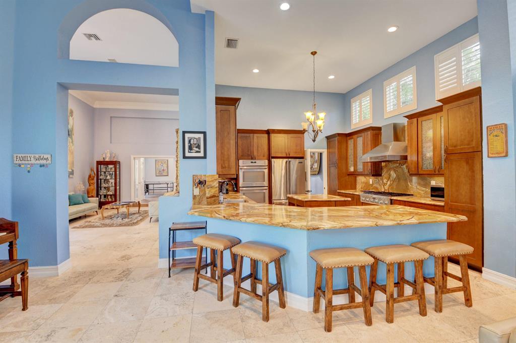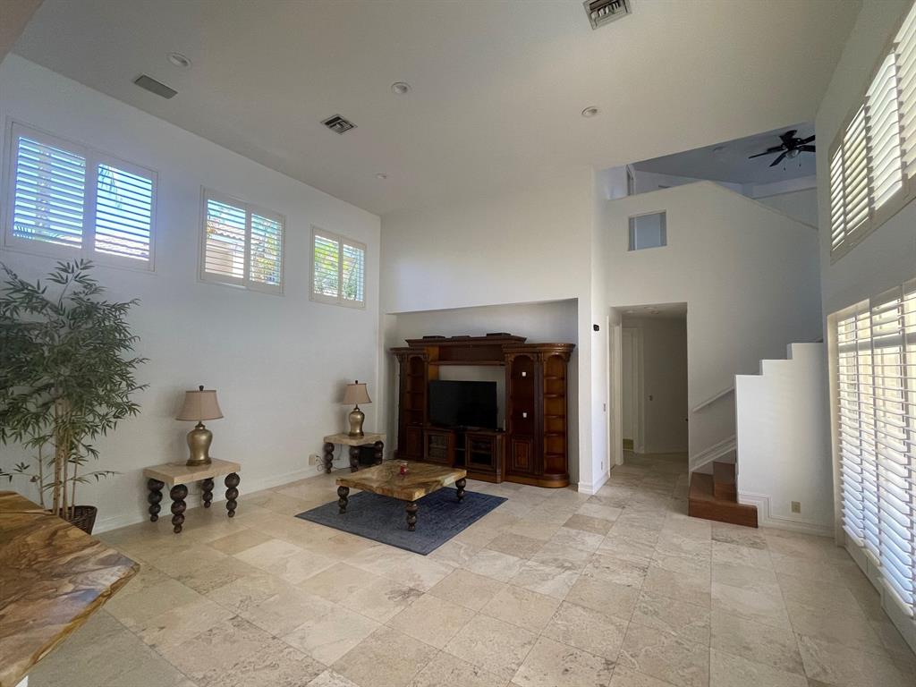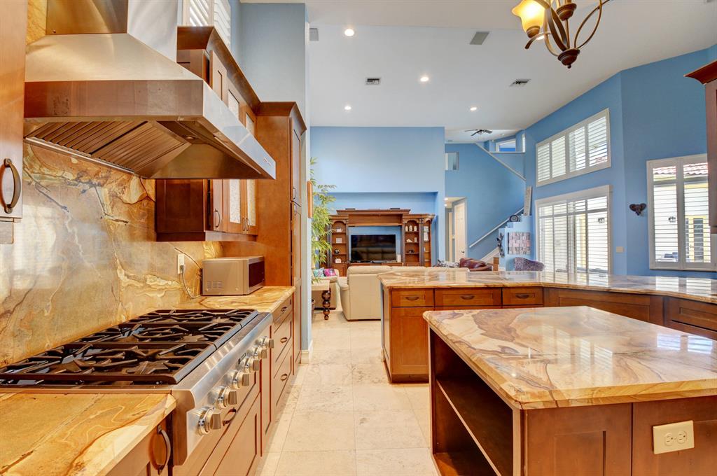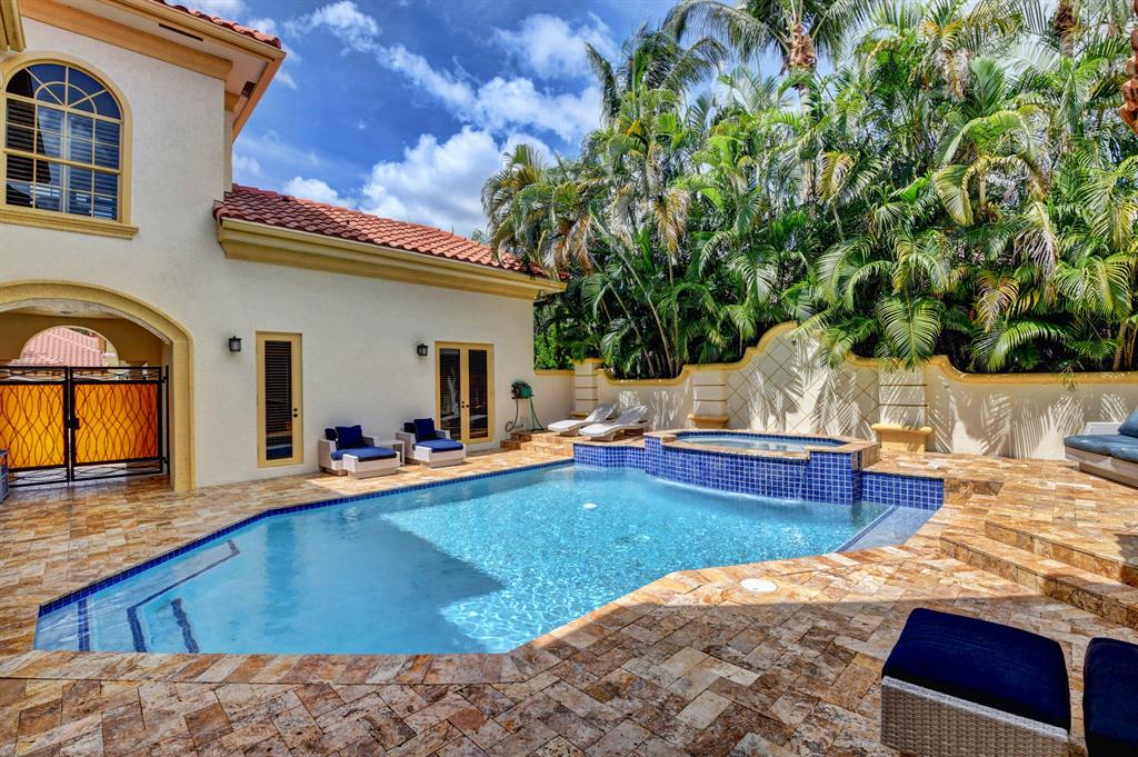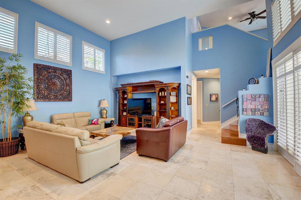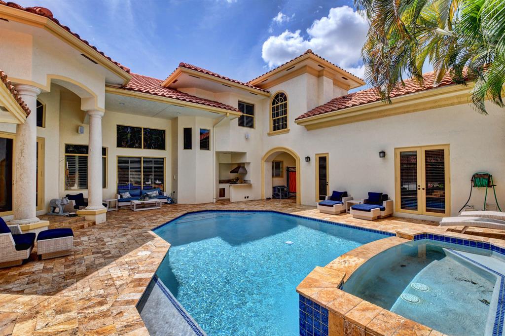 One of the largest custom courtyard estates in rarely available Mediterrania. This 5BR/4.5 bath house sits on one of the largest lots in the community allowing not only the courtyard tropical oasis feel, but a large backyard with a private deck, grass field and fruit trees. INTERIOR JUST FRESHLY PAINTED WHITE. 2 story kids wing with a 400 foot game room and an upstairs home theater room with 2 rows of seating and an Epson projector with 120 inch screen. A striking 500 gallon salt water tank with exotic fish and colorful coral. Large kitchen with island and rare Palomino granite counter tops from Brazil. Gas cooking with Thermador cooktop double ovens, and Viking refrigerator. Large master wing with private office, 2 built in walk in closets and zen rain shower with a high end jacuzzi tub.