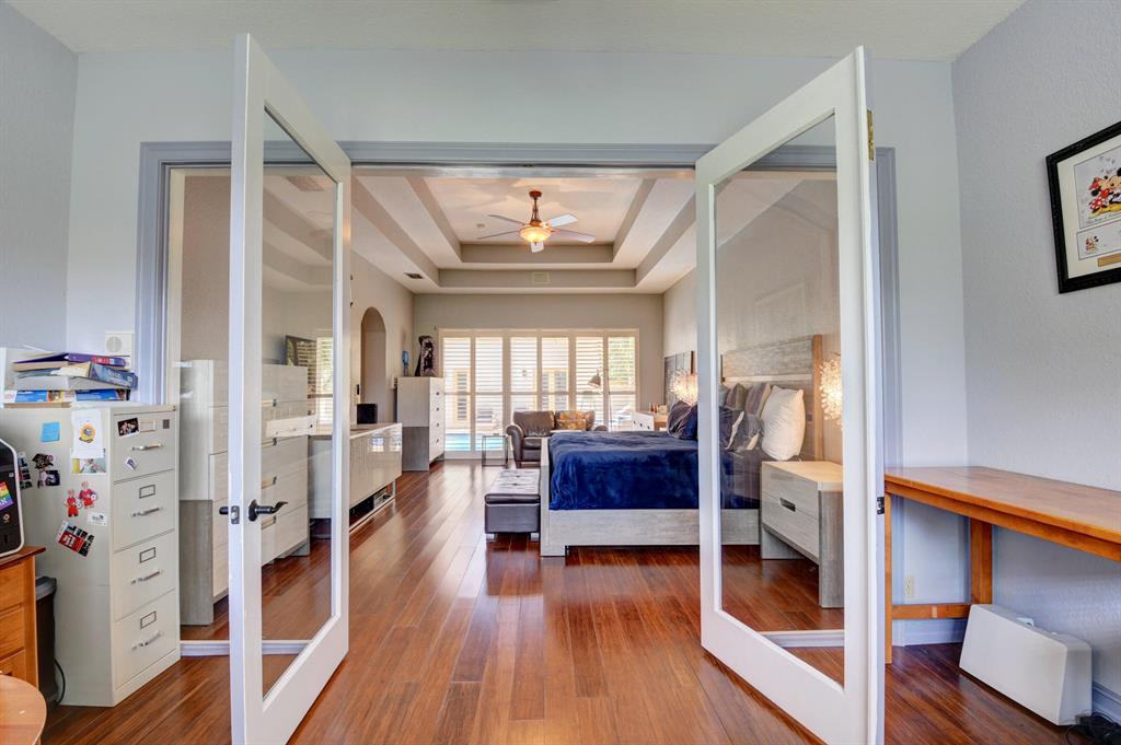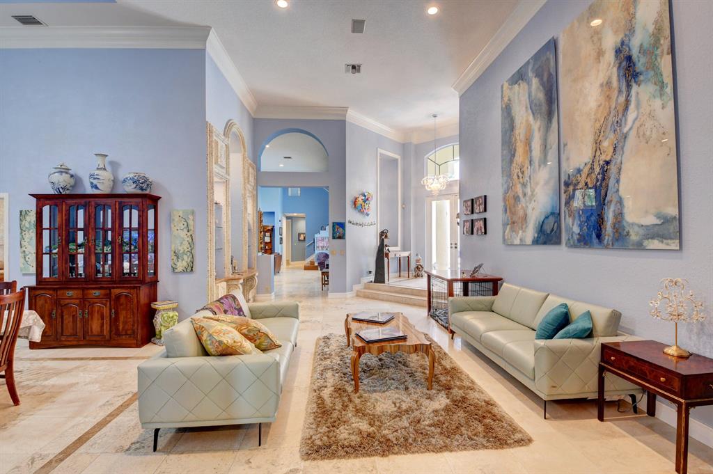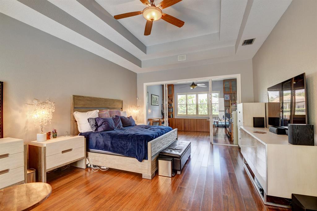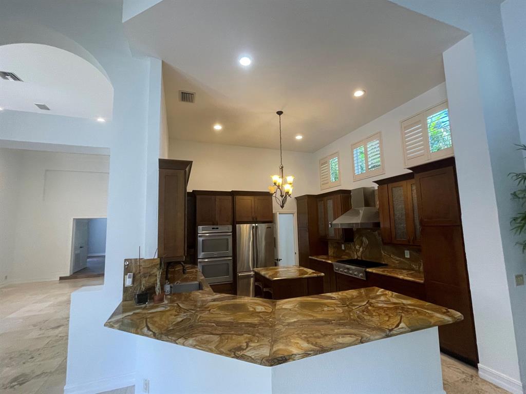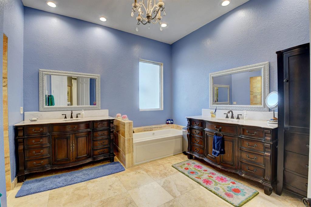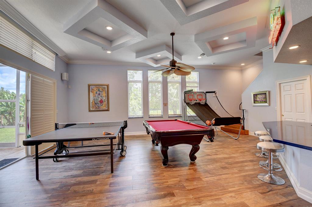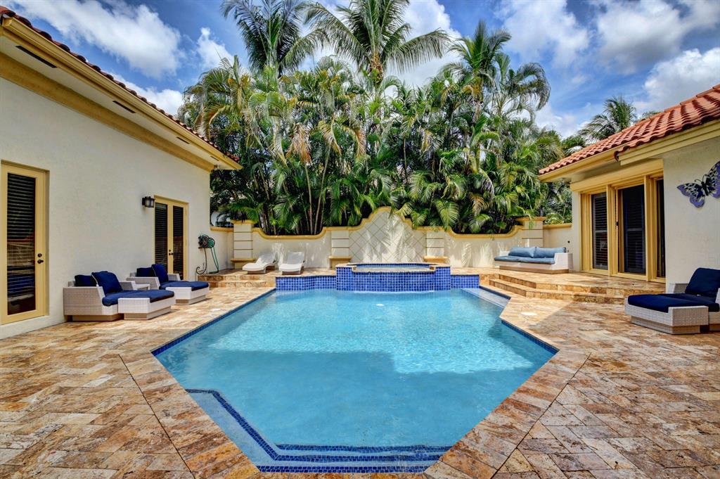 One of the largest custom courtyard estates in rarely available Mediterrania. This 5BR/4.5 bath house sits on one of the largest lots in the community allowing not only the courtyard tropical oasis feel, but a large backyard with a private deck, grass field and fruit trees. INTERIOR JUST FRESHLY PAINTED WHITE. 2 story kids wing with a 400 foot game room and an upstairs home theater room with 2 rows of seating and an Epson projector with 120 inch screen. A striking 500 gallon salt water tank with exotic fish and colorful coral. Large kitchen with island and rare Palomino granite counter tops from Brazil. Gas cooking with Thermador cooktop double ovens, and Viking refrigerator. Large master wing with private office, 2 built in walk in closets and zen rain shower with a high end jacuzzi tub.