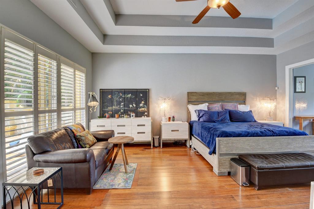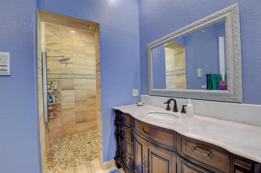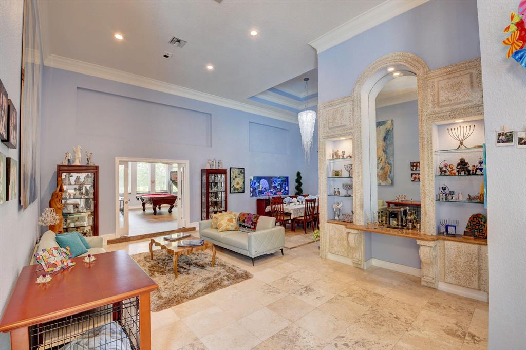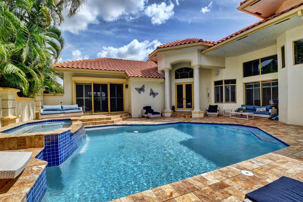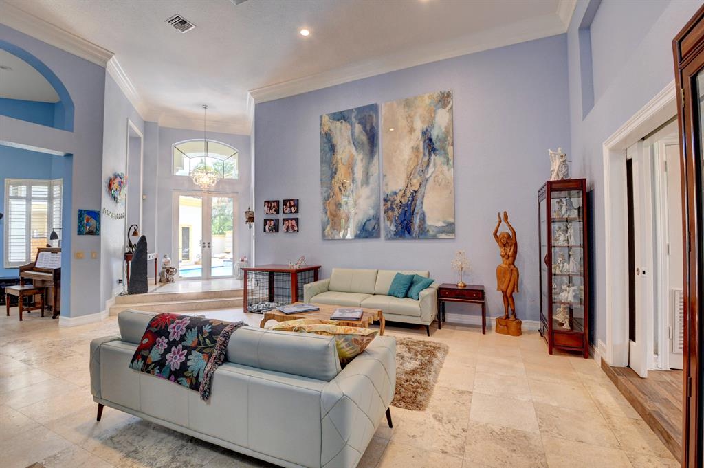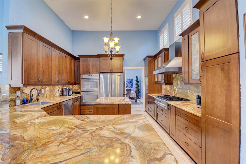 One of the largest custom courtyard estates in rarely available Mediterrania. This 5BR/4.5 bath house sits on one of the largest lots in the community allowing not only the courtyard tropical oasis feel, but a large backyard with a private deck, grass field and fruit trees. INTERIOR JUST FRESHLY PAINTED WHITE. 2 story kids wing with a 400 foot game room and an upstairs home theater room with 2 rows of seating and an Epson projector with 120 inch screen. A striking 500 gallon salt water tank with exotic fish and colorful coral. Large kitchen with island and rare Palomino granite counter tops from Brazil. Gas cooking with Thermador cooktop double ovens, and Viking refrigerator. Large master wing with private office, 2 built in walk in closets and zen rain shower with a high end jacuzzi tub.