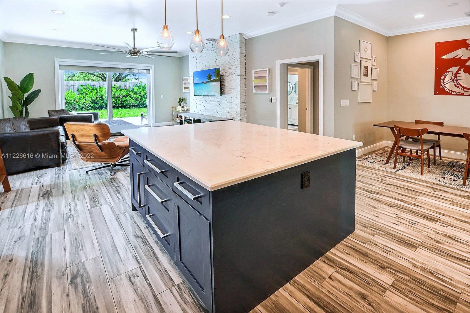 PERFECT 3 BED, 2 BATH BEAUTIFULLY REMODELED HOME IN POINCIANA PARC, DAVIE. TRAVERTINE DRIVEWAY & DOUBLE FROSTED IMPACT GLASS DOORS WELCOME YOU TO THIS HOME WHICH HAS BEEN EXPERTLY UPDATED WITH STUNNING FINISHES, STYLISH FLOORS & NEUTRAL COLOR PALETTE THROUGHOUT. FABULOUS TWO-TONE KITCHEN HAS QUARTZ COUNTERS, STAINLESS STEEL APPLIANCES, LARGE ISLAND, PENDANT LIGHTING & ELEGANT BACKSPLASH. GORGEOUS BATHROOMS HAVE BEEN DESIGNED W MARBLE TILE, GOLD & STAINLESS STEEL FEATURES AND CUSTOM GLASS ENCLOSURES. SPACIOUS PRIMARY SUITE W TRAY CEILINGS. BRAND NEW ROOF IN PROGRESS. DREAMY BACKYARD W TRAVERTINE PATIO, PRIVACY FENCE AND MANICURED HEDGES HAS PLENTY OF SPACE FOR OUTDOOR DINING AND ROOM FOR PLAY. ALL IN A WONDERFUL GATED MAN COMMUNITY CLOSE TO MANY SHOPS, RESTAURANTS & PUBLIC PARKS.