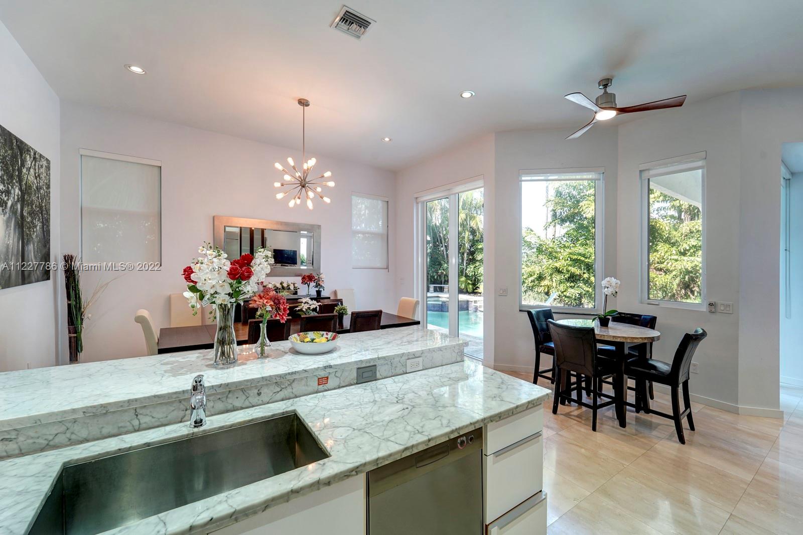 Beautiful home in a great location. With high vaulted ceilings, large windows bringing in plenty of sunlight. This updated home has fresh new feel with 4 bedrooms and 2.5 bathrooms. With a beautiful fenced private backyard with a pool and large entertaining area. Kitchen has stainless steel appliances and impacted windows. Selling price includes all the furniture. Home is easy to show.
