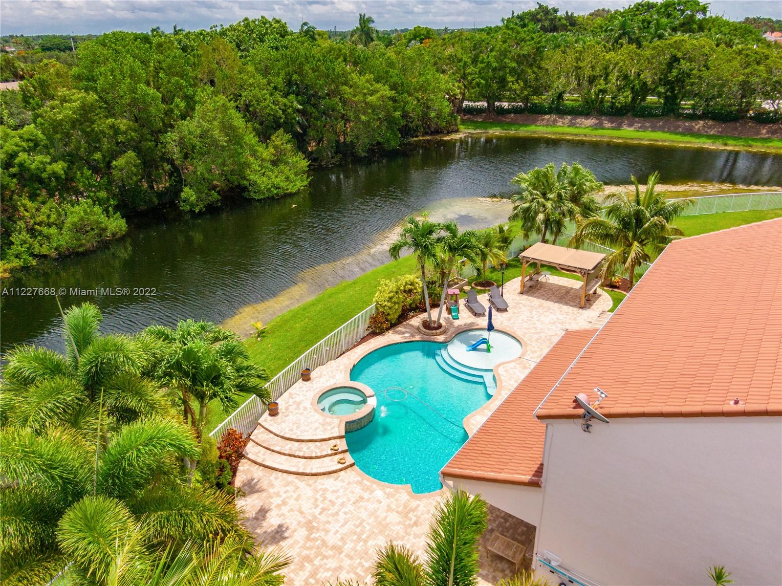 This unique home is located at the end of Cameron Drive peninsula on a cul de sac over a 12,383 sq ft lot. This provides ultimate privacy, a serene water view, and trees that make the sunsets an incomparable spectacle. The private backyard has a magical oversized pool and the patio has been paved and manicured turning the space into one you never want to leave. A brand new roof, installed on 10/2021 will give your family, security, and peace of mind for many years to come. The huge master bedroom offers an additional space that could be used as an office, nursing room or TV area, and his and hers walk-in closets. Accordion shutters throughout the house. This home has been fully upgraded and it's within walking distance from elementary school Eagle Point.