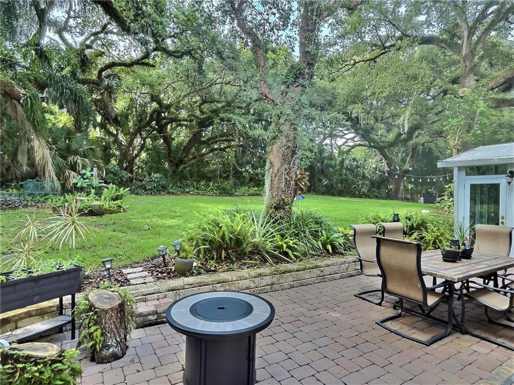 Spacious model home on the RIDGE with tons of upgrades, private wooded backyard, & comfy living spaces. Upgrades include fireplace, sunroom, hurricane windows and doors, vaulted ceilings, granite, heated jet tub, built-in wine fridge, stainless steel appliances, loft/office easily converted to 4th bedroom, mirrored panels, garage with built-in cabinets, natural stone driveway pavers, new AC & water heater, and crown modeling. Community includes miles of wooded trails, lake access, and automatic membership in golf/country club, large community pool, fitness room, playground, tennis, basketball, pickleball, and restaurants. 1 mile to shopping and highways. Great schools. Newly painted exterior. Mature oaks and a private backyard on Pine Island Ridge set this gorgeous home as a rare find!