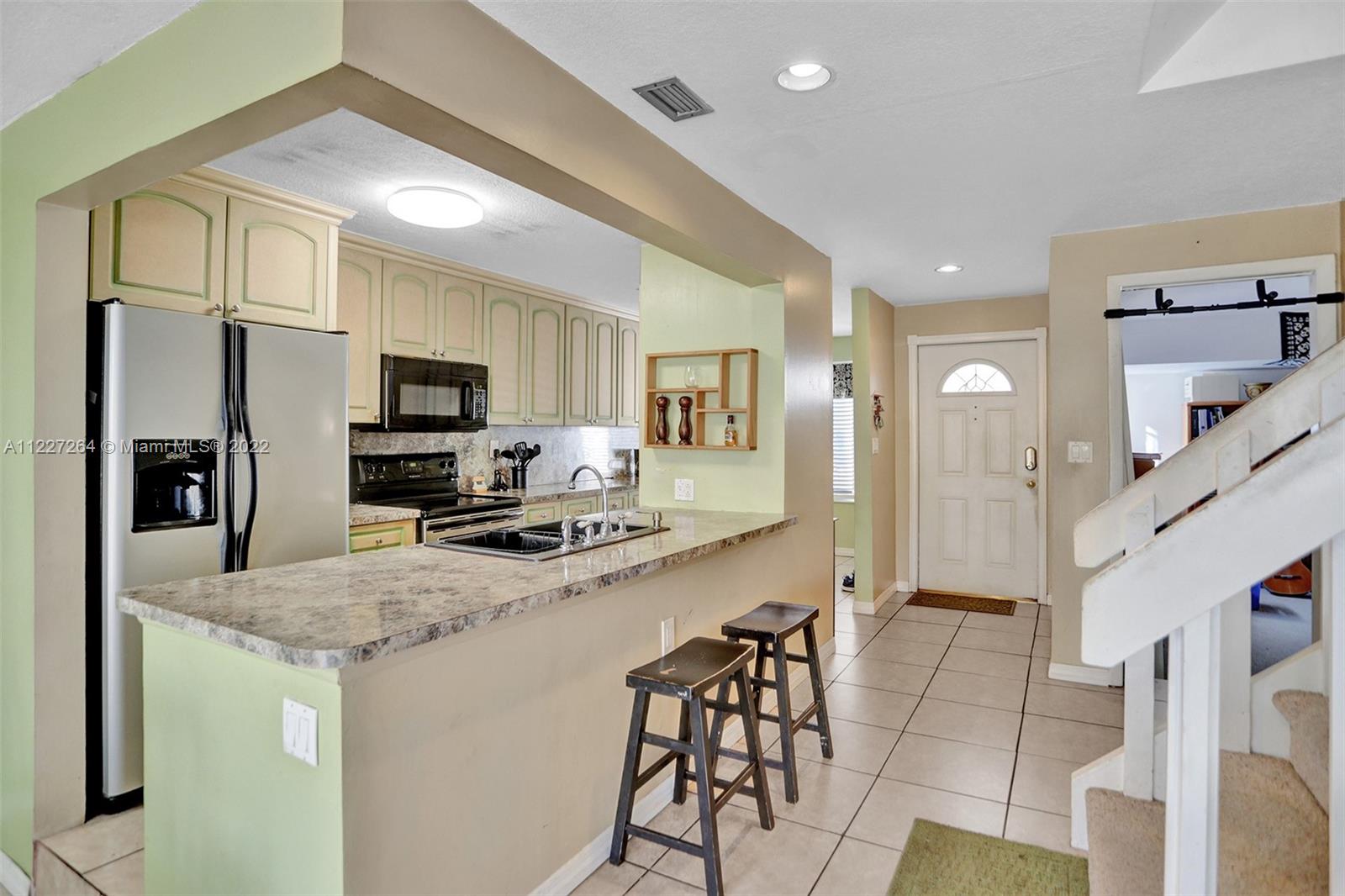 Magnificent and rarely available Town Home in highly desired Jacaranda in Plantation. This beautiful home is boasting a bright & airy floor plan, with an beautiful open custom kitchen with wood kitchen cabinets, Stainless Steel appliances, snack/bar counter & formal dining. This beautiful unit features 3 bedrooms, 2.5 bathrooms & 1770 sq. ft. of living space, tile flooring throughout, carpet upstairs, full size washer-dryer & huge oversized walk in closets. Walk outside the Master bedroom into the spacious balcony. Large patio great for entertaining, gardening and more, one car attached garage. This is the one! The Jacaranda Neighborhood offers 2 Community Pools, Tennis Court, Clubhouse and a Playground.