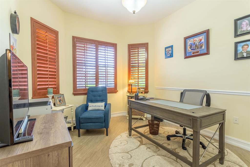 Beautifully landscaped 4 bedroom 3 bath home in picturesque Parkland Reserve. Diagonal tile flooring and updated fixtures and finishes are throughout. the home. The open kitchen has a seated bar for casual dining, plus Shaker-style cabinets, tile backsplash, solid-surface countertops and stainless steel appliances. The spacious master bedroom features a tray ceiling, walk-in closet and en suite with double sinks, seated vanity, separate shower and tub. The 4th bedroom can easily be used as an office or den. The large, screened patio makes entertaining family and friends a breeze with plenty of space for outdoor seating, grilling and dining. A private community pool, family friendly neighborhood and easy access to all Parkland has to offer, make this, one not to be missed.