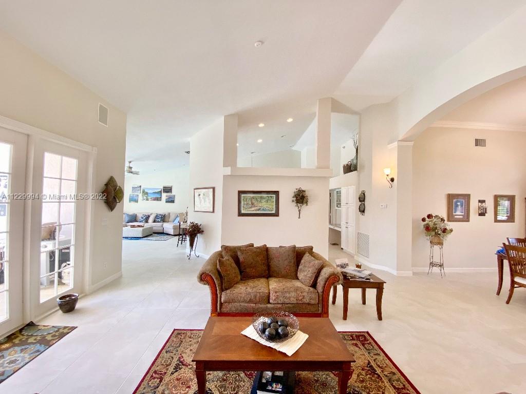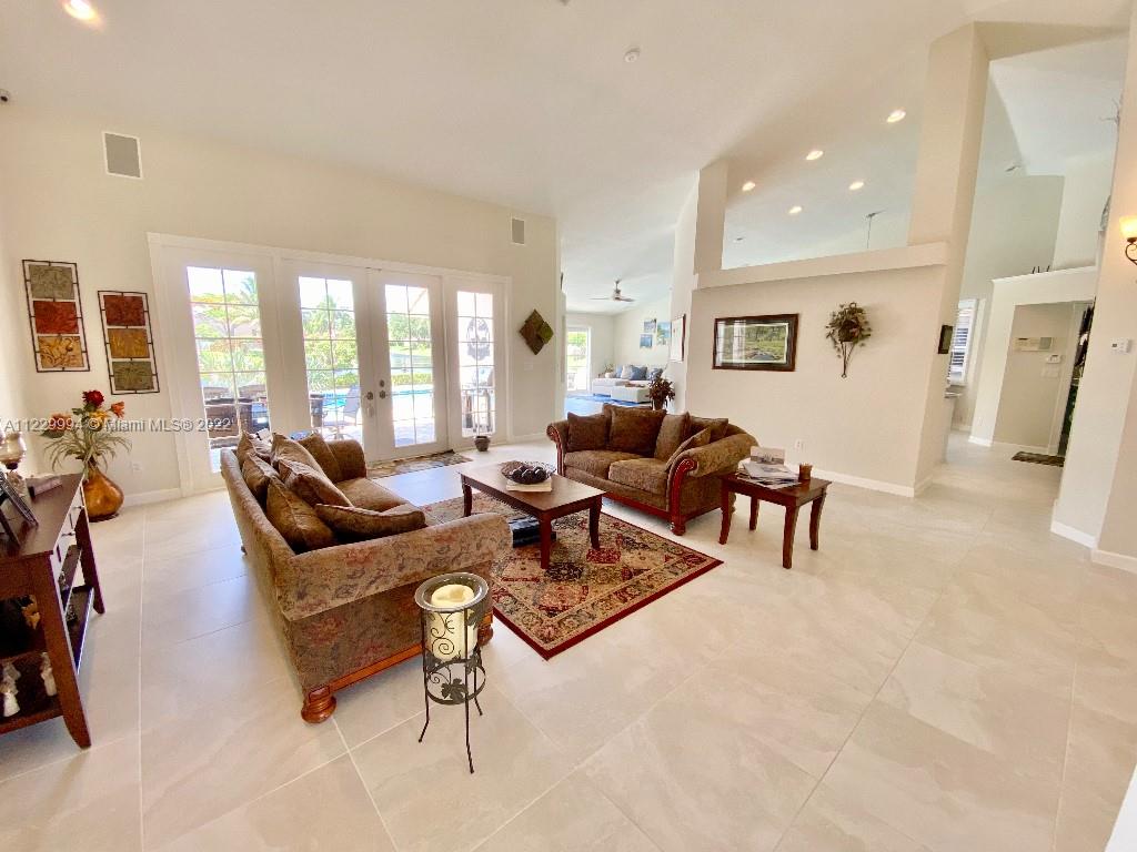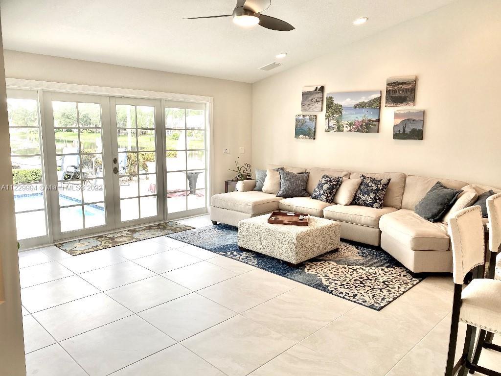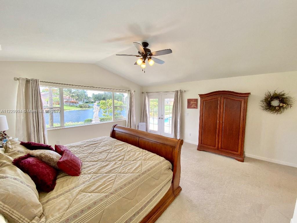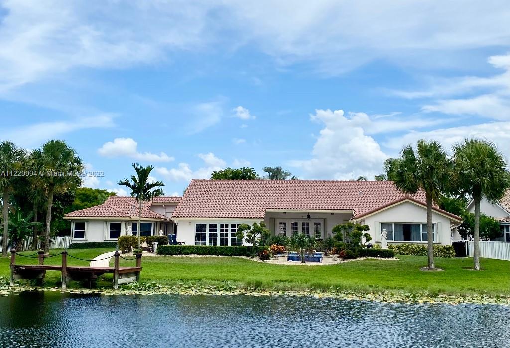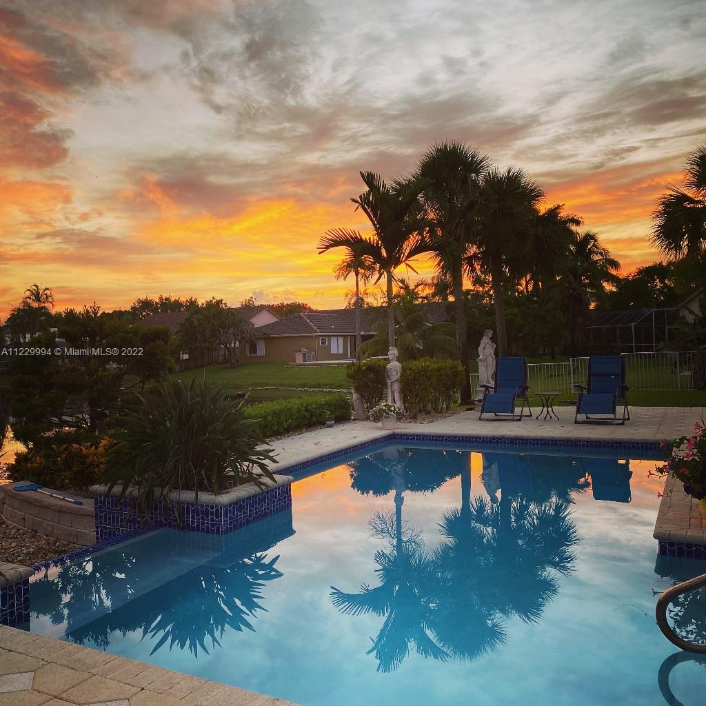 Immaculately clean, meticulously cared for Westport home. Abundant natural light. One-of-a-kind 2900 sf model home with connected 1000 sf guest suite area for hosting visitors or a 3-room office/study/studio. Stunning master bath & large bedroom window with full lake view and patio door to the pool. Expansive patio includes covered area w/ceiling fan. Listen to the peaceful waterfall feature on the pool and experience Florida's wildlife and breathtaking sunsets from your own dock extending over the lake. 3 Zones AC new 2018; Roof 2008; Diamond Brite 2018; water heater 2018; pool heater 2019; wifi-enabled garage door opener 2021. Plantation shutters on many windows. One impact patio door 2022, hurricane panels front, accordion shutters back and sides. Always been smoke-free and pet-free.