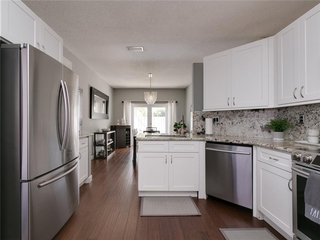 Beautiful and moving ready 3 bedrooms and 2 bathrooms plus den home in Chapel Trail. This gorgeous home feature real wood floors throughout, updated bathrooms and kitchen with stainless steel appliances and granite countertops. Completely pavered and fenced backyard, screened patio. 1 car garage and 2 parking spaces driveway. Gated community with pool and children playground. The HOA community maintenance, gate, pool and children's playground, Great schools and easy access to mayor roads.