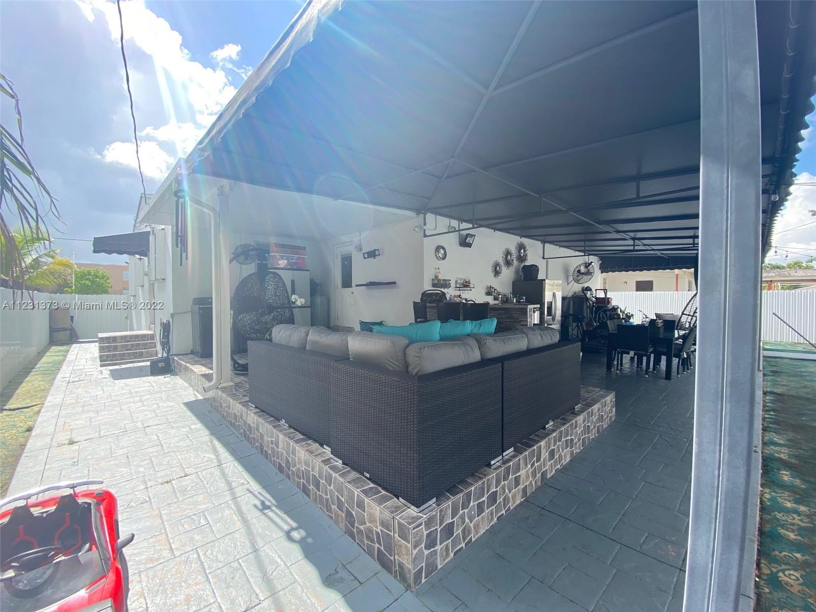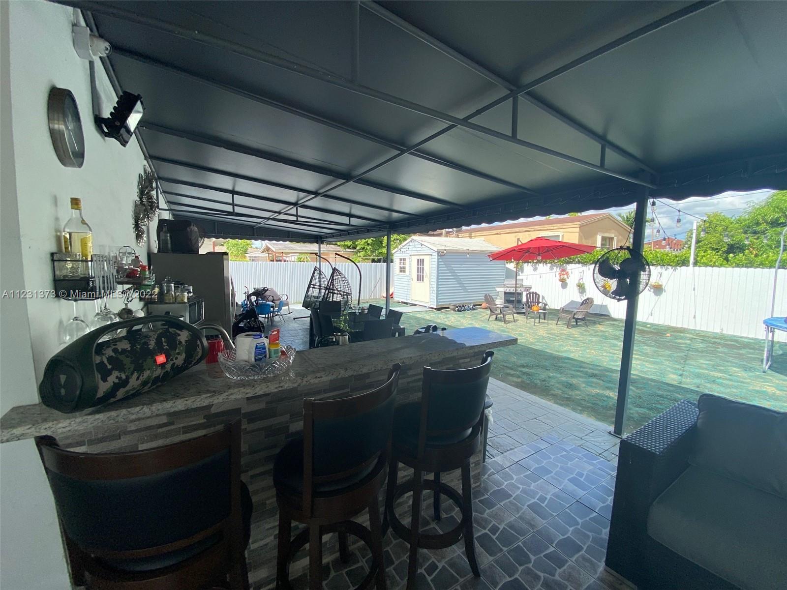 Great outside summer kitchen ideal for gatherings! Newly renovated kitchen with stainless steel appliances and beautiful kitchen island. Newly renovated bathrooms that include pocket doors. Master bedroom has LARGE walk-in closet. Electrical gate and 6 parking spaces! New Roof from 2019. Electrical breaker replaced 2021. Beautiful In-Laws quarters. All appliances are staying, as well as all shutters and lighting fixtures. Ring doorbell included, also large storage shed. Hard wire alarm system, motion detector camaras all around the house!! GREAT LOCATION! MUST SEE TO APPRECIATE!