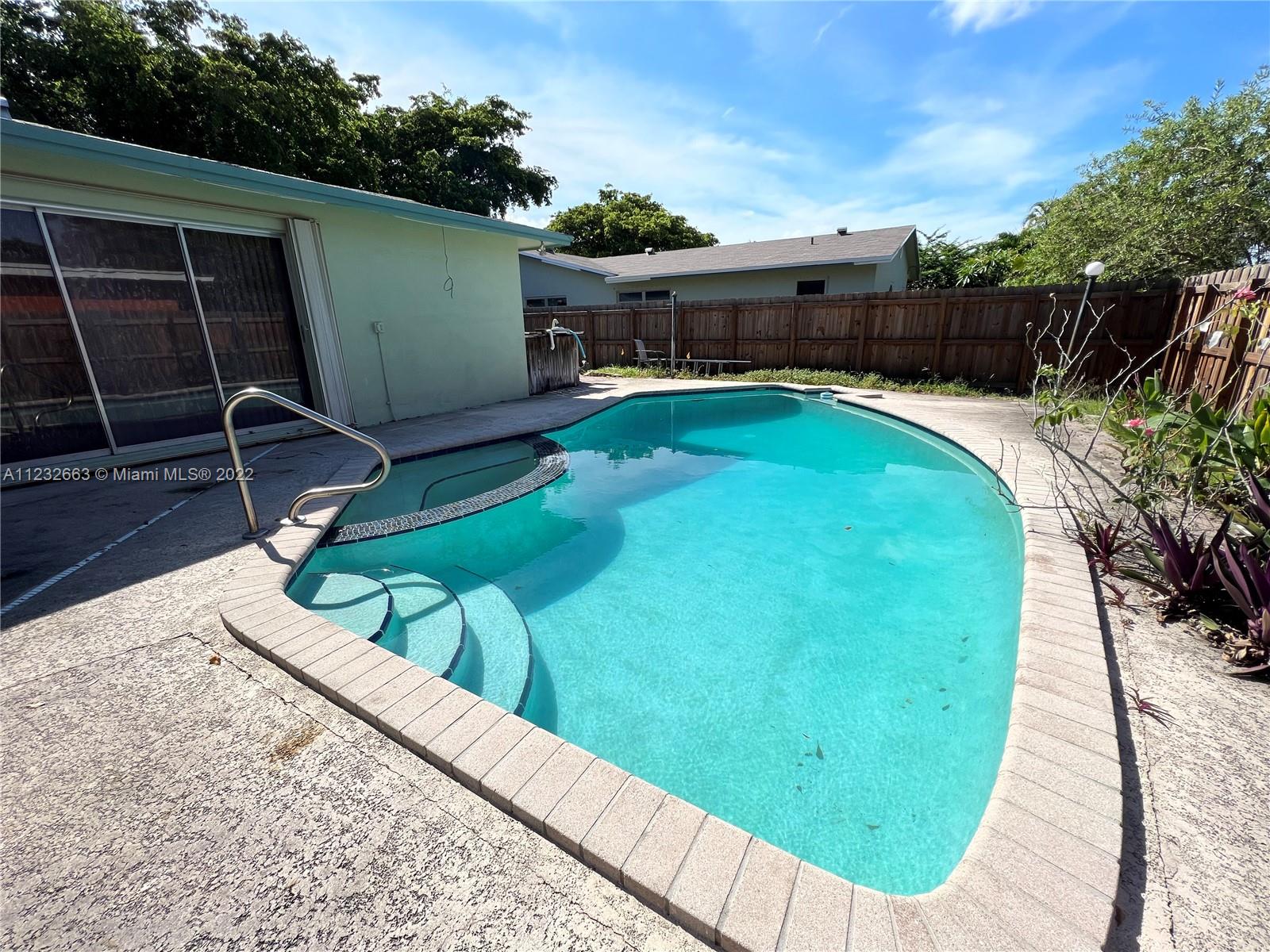 Corner Home in Pembroke Lakes, with Pool,and Jacuzzi, fenced patio, and trees in a 8864 Sq ft, The home has three bedrooms and two bathrooms, family room, formal living room and lots of storage, two car garage. Tile, wood floors. Lots of light in the home and fantastic view to the pool from the master bedroom,the kitchen, and the Florida room. Circular driveway, and the property is close to the City of Pembroke Pines where there are restaurants, shopping, and lots of activities for the family.