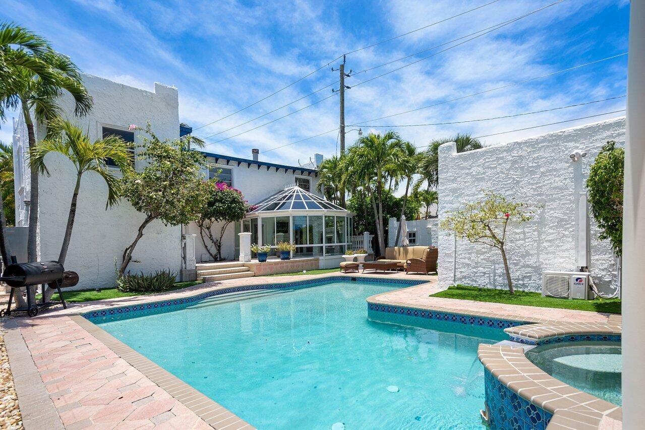 DON'T HESITATE AT THIS PRICE, AMAZING DEAL! Award-winning 1923 historic Mediterranean home located in the highly sought after Grandview Heights historic district of Downtown West Palm Beach. This home is priced to either completely remodel this home or a buyer can move in with a huge amount of equity, priced for quick sale. This home has great bones and combines historic charm with modern touches such as an oversized L-shaped pool with a waterfall hot tub, grand solarium overlooking the backyard and second house.The main house features two bedrooms and two full bathrooms and the second home features two bedrooms with one full bathroom. As you enter into the main home you will find marble flooring throughout, wood beams accent the dining room and family room, custom crown molding.