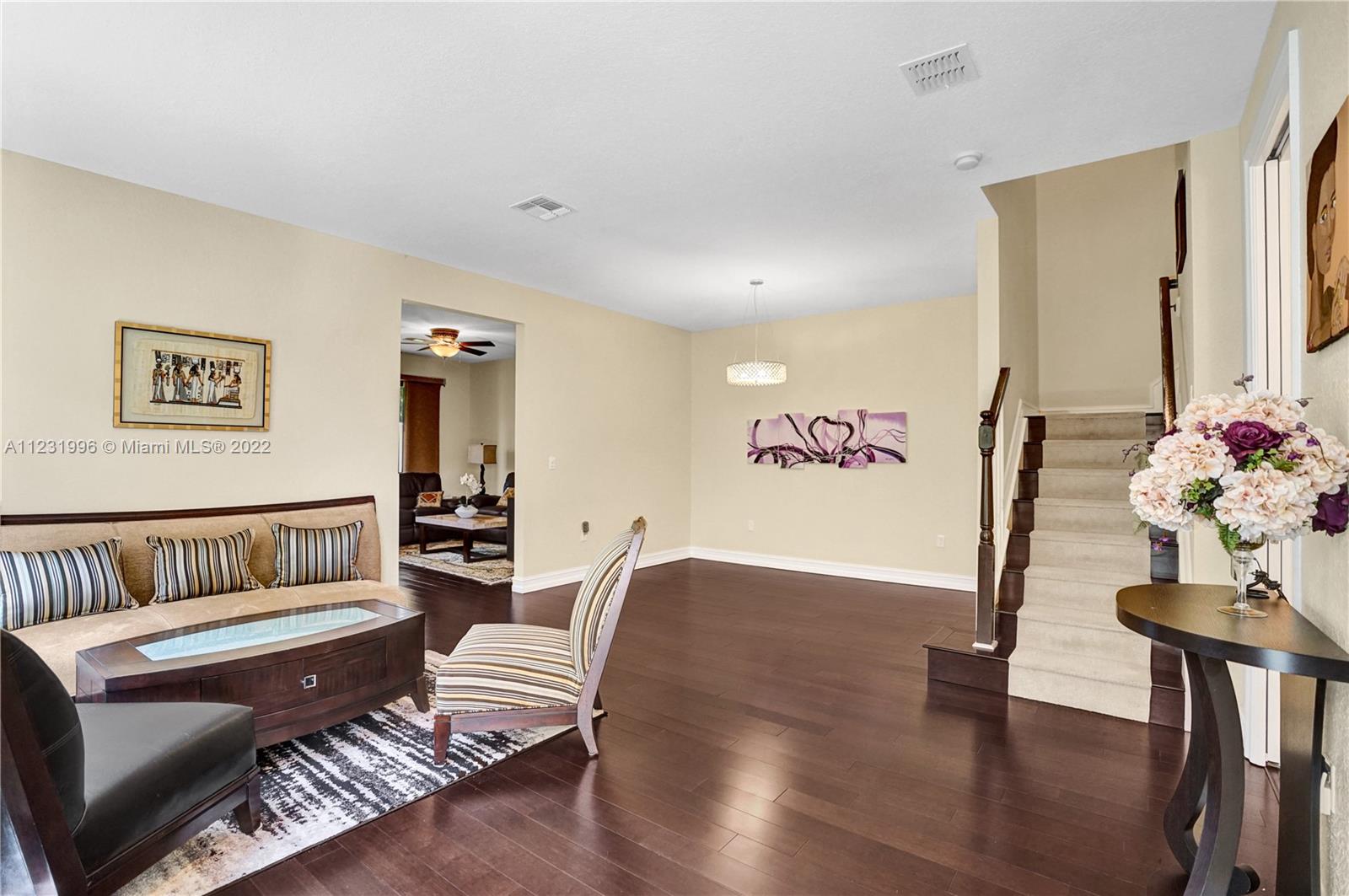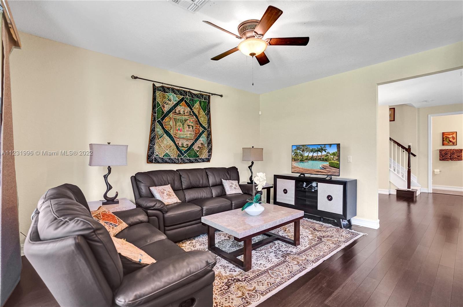 Gorgeous, light & bright, this freshly painted 4 bed, 2.5 bath, 2 car garage corner lot home is waiting for you! Featuring an open concept layout w/designer wood flooring throughout spacious living areas, new commercial grade flooring in the spotless garage, a generously sized kitchen w/island, tastefully remodeled baths & custom window treatments. Offering amazing outdoor living w/an extended screened patio perfect for BBQ, expansive green space and steps to the Parkland Reserve pool! Impact Windows & Doors, newer A/C (2020) and laundry room on 2nd floor for convenience. Great location in the heart of Parkland, close to A+ schools, shopping, dining, parks & transportation.