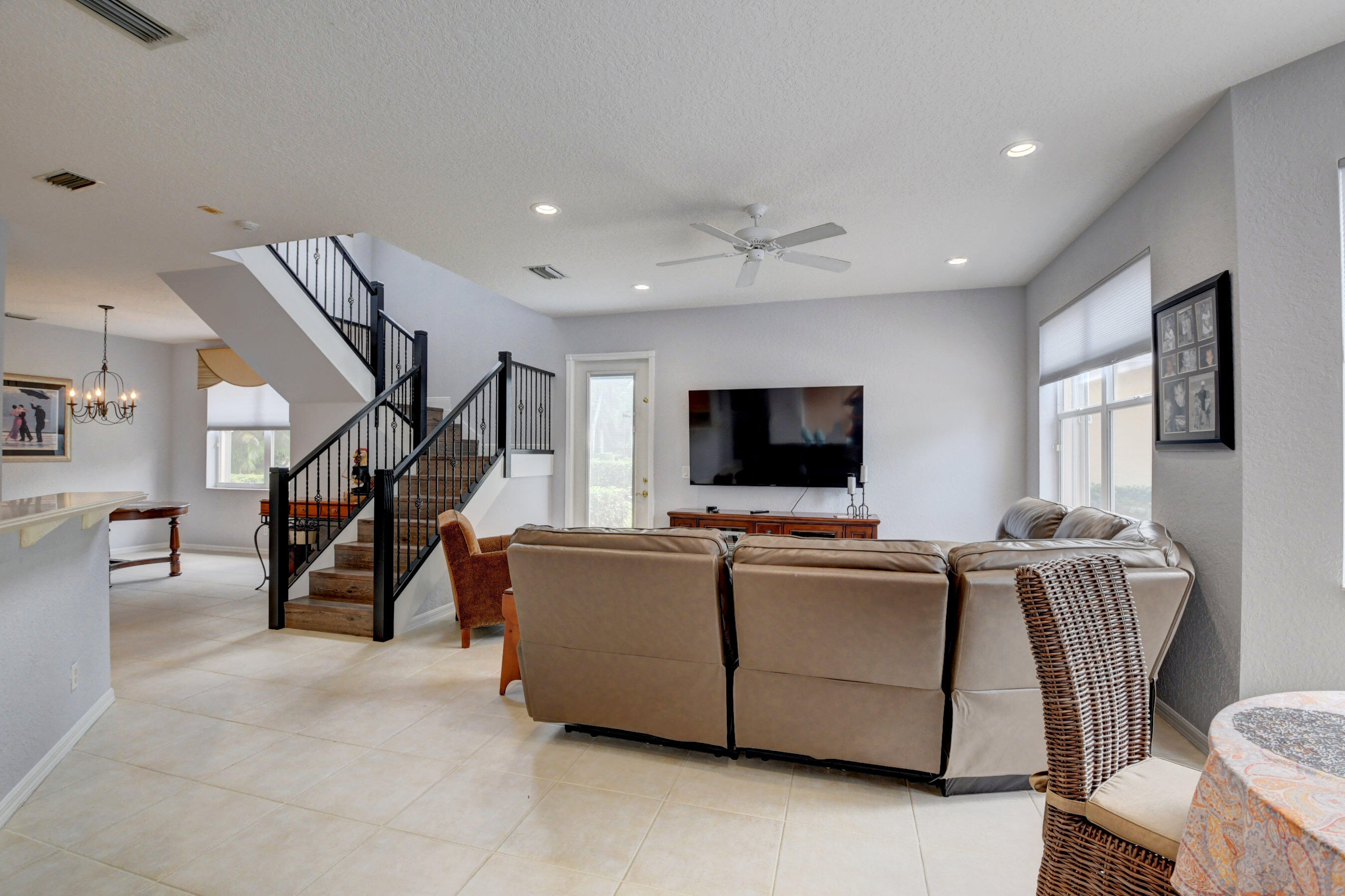 PRICE IMPROVEMENT!Exceptional lakefront pool home w/NEW ROOF(just installed 6/22)! Heated Pool resurfaced & has newer tiles. Outdoor kitchen is ideal for entertaining year round. Accordion Shutters & 2 impact glass windows for hurricane protection. Newer sprinkler system. Recessed lights. Kitchen features SS appliances, corian counter tops, snack bar& is open to living area. Exterior has been repainted. Newer w/d. 2 ACs(1 was recently replaced). Water heater approx 5yrs. Flooring on stairs has been replaced. Hand rails painted.The Shores is located in the BEST ''A''rated school district& directly across the street from the So. County Park. Security gate, Cable TV and internet is included in HOA fee. Amenities include: community pool, tennis, play area, kids club, basketball and fitnes