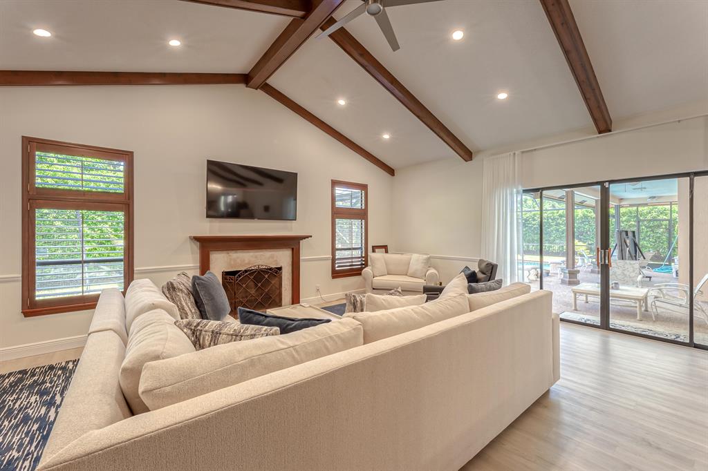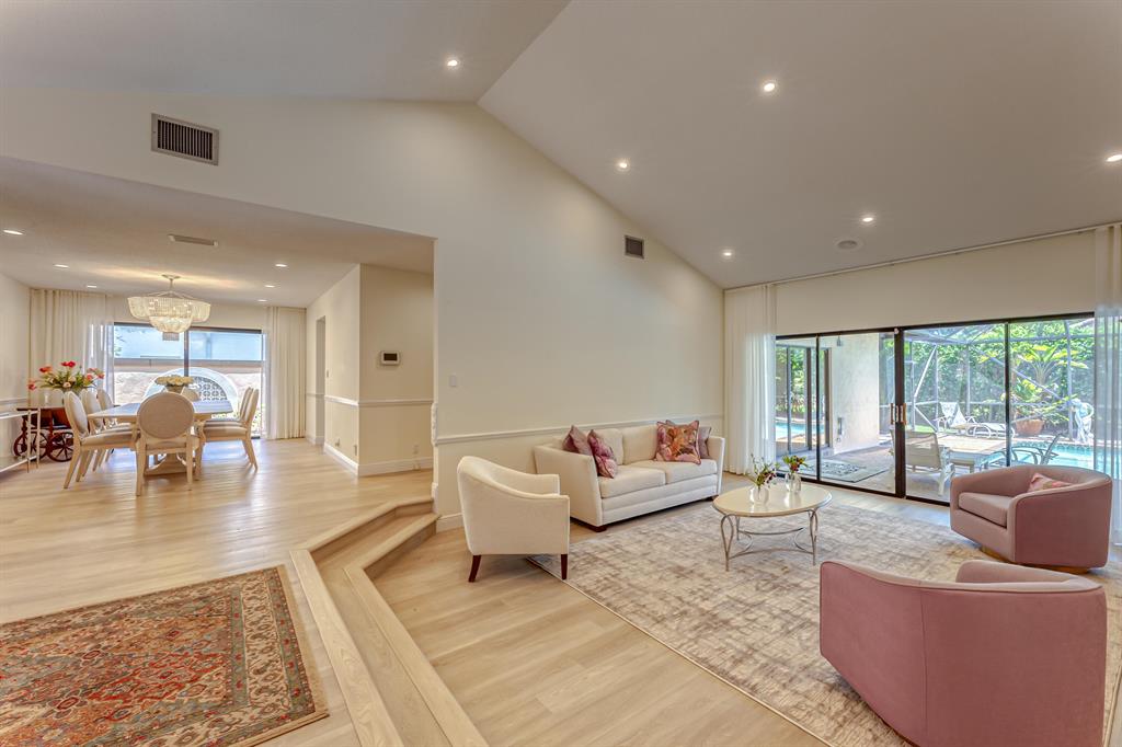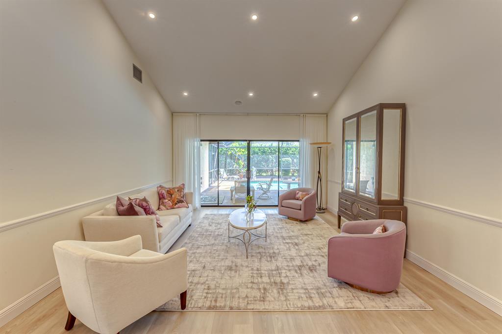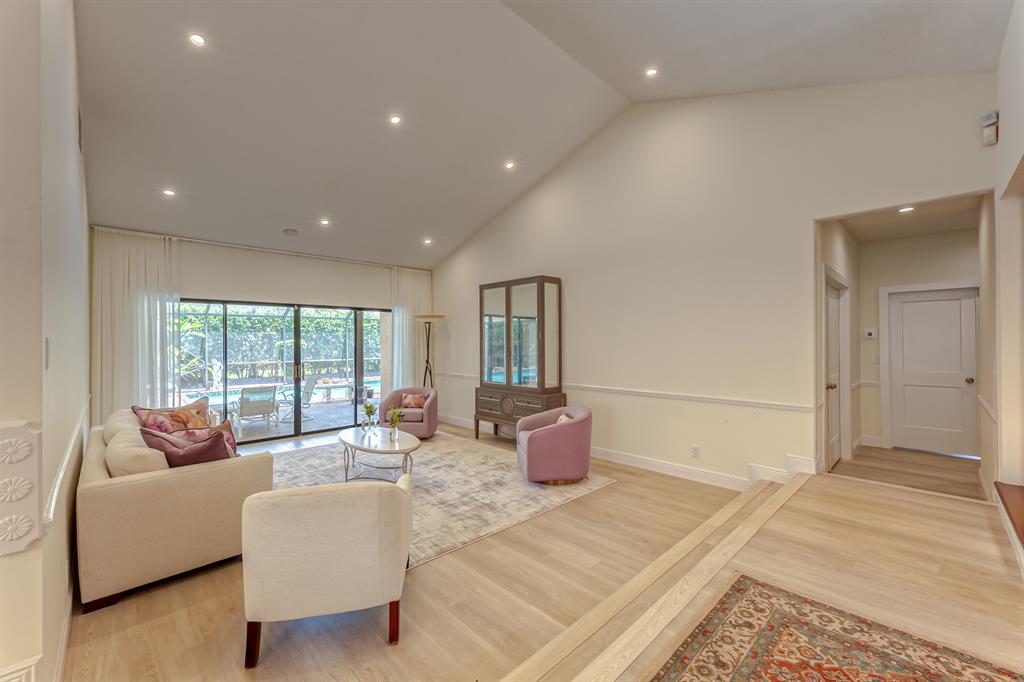 Imagine Walking Through Your Double Entrance Doors and Seeing the Inviting Cathedral Ceilings to Your View of the Pool and Garden Area. This Home has Recently Been Completely Remodeled by an Interior Designer. 4 Bedroom/2 1/2 Bath. 2 Car Garage. Screened Enclosed Pool. Tile Roof 2018, AC 2021, Water Heater 2021. Home Features High Vaulted Ceiling w/Wood Exposed Beams. The Spacious Master Bedroom offers Walk in Closet, Custom Closets, Frameless Shower, Soaker Tub, Dual Sinks, Cabana Bath. Enjoy your New Home in Highly Desirable Upscale Tree Lined Community In New Floresta . A+ Schools, Shopping,Restaurants,1-95 & Turnpike Close to Beaches.
