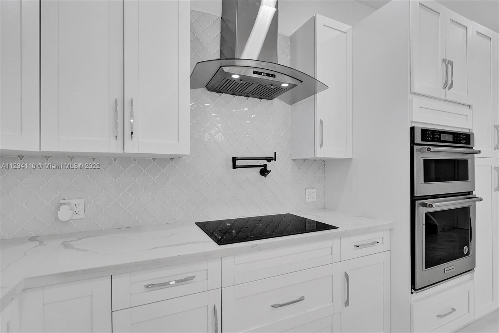 Gorgeous & fully renovated smart home in the sought-after gated community of Mapleridge! When you step into this home you truly feel like your on a vacation, with a built in wet bar, open concept chefs kitchen with two sinks, induction cooktop, wall oven/ microwave. This home is an entertainers paradise, with beautiful glass bannisters leading upstairs and custom zebra shades throughout the house! Boasting 3 bedrooms, 3 full bathrooms plus a bonus room with a en-suite bathroom that can be used as you see fit! Ample closet space in every room and through out the house! Outside features a custom made pergola and fish pond perfect for a backyard party! All doors are Italian solid wood, new Italian porcelain flooring, new tankless water heater, new gutter system, security system. A MUST SEE!!!