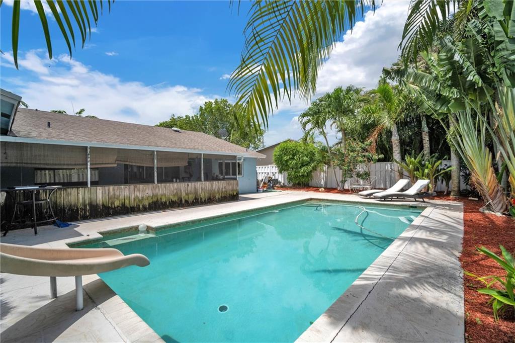 Welcome to your own Slice of Paradise! 4 bed/2 bath/1 car garage home in desirable West Sunrise community. Walk into a spacious, open floor plan with nearly 1,700 sq ft of living area! Updated kitchen with stainless steel appliances & lots of counterspace opens to the family room with grand vaulted ceilings & boasts beautiful views of the pool area. Fenced in backyard is perfect for entertaining & for pets to run around! Screened in patio allows you to relax under the shade while the Tiki Hut is where you can host all your memorable gatherings*Roof 3 yrs*Water Heater 2017*some Impact windows*No HOA*FHA approved*Perfect location, just minutes away from the Sawgrass Expressway. Near LOTS of shopping, dining, & entertaining at Sawgrass Mills Mall, Bahama Breeze, FLA Live Arena, & more!