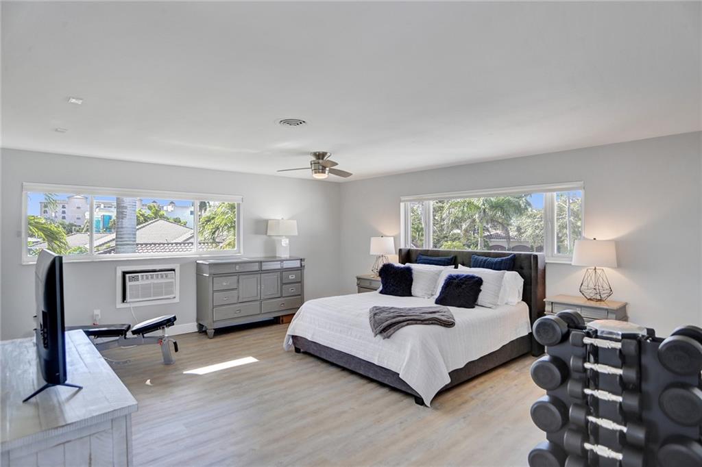 This amazing point lot has over 200 feet of waterfront with 100+ on the intracoastal. Brand new seawall upgraded to existing standards surrounds the property and includes a 27,000 pound boatlift. Existing Three bedroom, 4 bath home is lovely with a mid century design and gorgeous Ketchum/Cuban tile floors, recently updated with fresh paint and modern lighting. Completely renovated guest suite includes one bedroom /one bath above the garage, two bedrooms and two baths in the existing house. Ready for your custom designed home or live in the existing charming home. Amazing views, amazing potential!