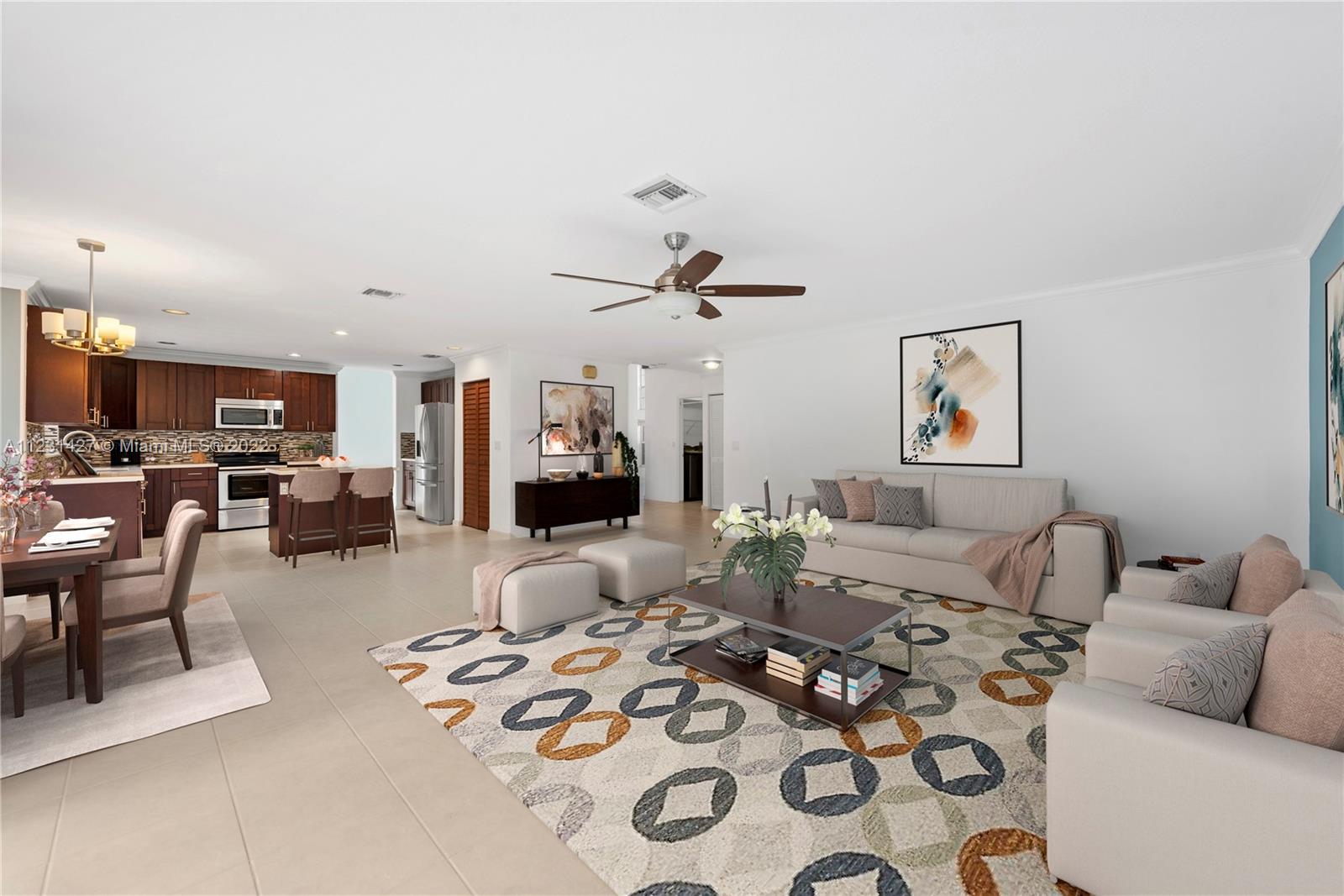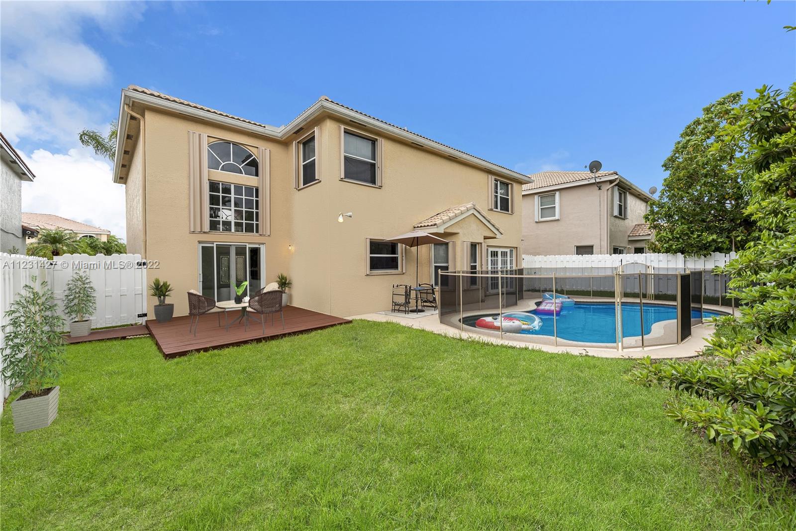 Spacious, immaculate 5 Bedroom, 3 Bathroom home tucked away in the gated community of Silver Lakes w/ a 3-car garage! This move-in ready residence has a fantastic layout, w/ 4 bedrooms upstairs, & a full 1 BD/1BA downstairs (perfect for in-laws & guests). Offering light & bright interiors, large family room & entertainment space on the first floor, upgraded kitchen w/ quartz counter tops & center island, large walk-in pantry, stainless steel appliances, crown moldings throughout the home, impact resistant entry & backyard sliding doors (w/ accordion shutters throughout), & fully fenced backyard w/ saltwater pool, wood deck, & lush manicured landscaping w/ fruit trees!