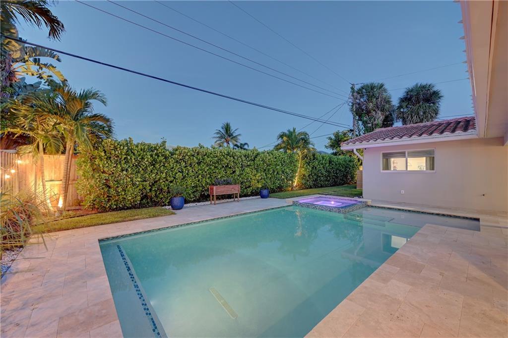 Immaculate and Fully renovated 4/2, with an oversized 2-car garage In East Fort Lauderdale, just a few mins from the ocean. This Mid-Mod & Contemp design flows perfectly out to the open patio and summer kitchen, which is overlooking the pool. The open layout, along with a true split floor plan, creates the perfect balance of entertaining and practical function. Features include: Custom Kitchen, Impact windows/doors, Custom bathrooms, Porcelain tile throughout, AC and Duct Work 2018, Roof 2013, All updated electric, updated trim, solid interior doors, crown molding. Custom built outdoor kitchen with almost 400Sq.ft of covered patio, Newly built in 2018 salt water and heated pool w/hot tub, New travertine, New paver driveway, and much more..