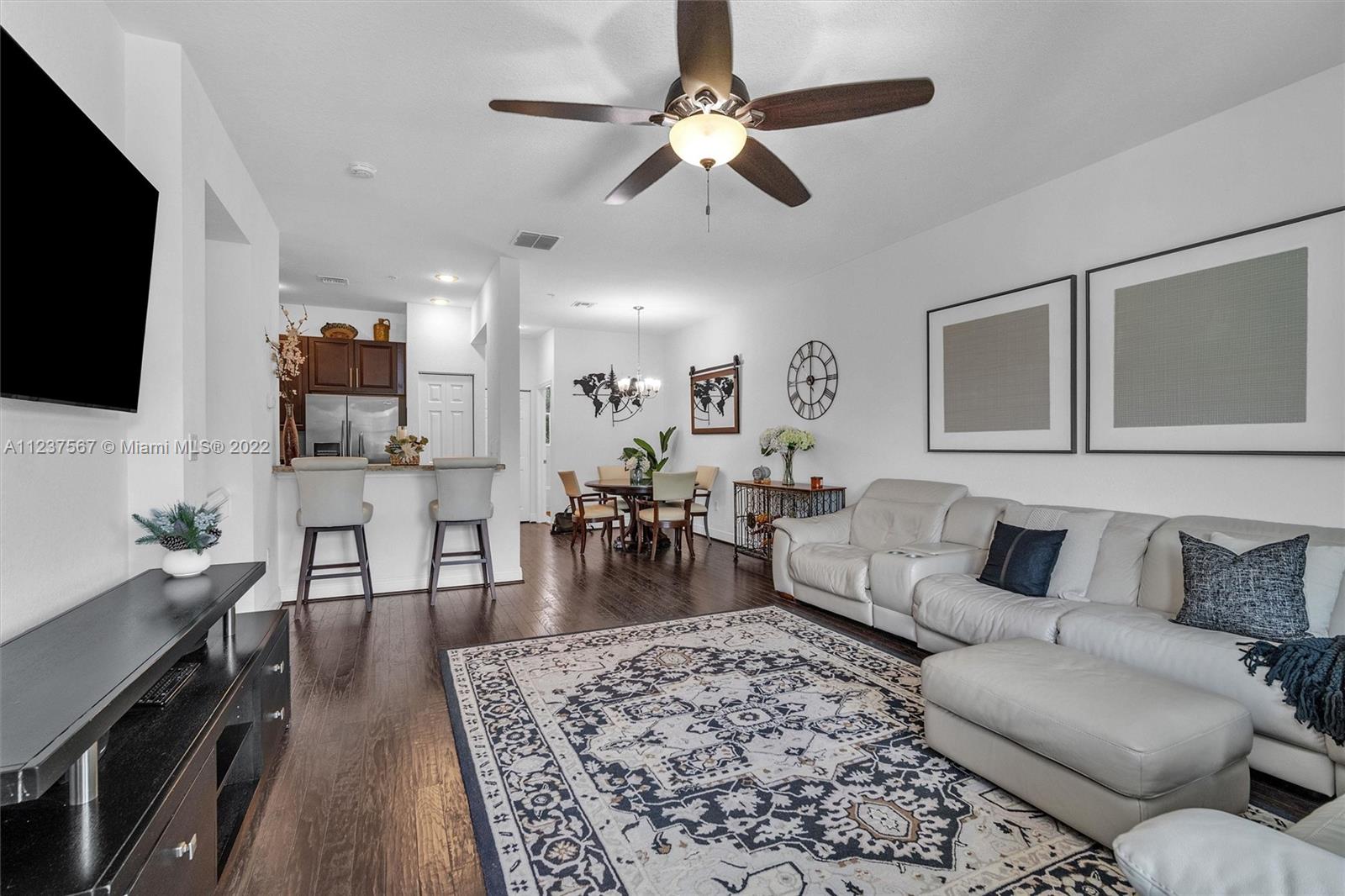 Extremely clean and luxurious Mediterranean tri-level townhouse with a full 3 beds / 3.5 baths / 2-car garage. Upgraded kitchen with granite counter tops, dark wood cabinets + stainless steel appliances. Spacious primary suite on 3rd floor has dual closets and a primary bath with dual sinks, along with a separate tub and shower. Gorgeous white plantation shutters + REAL wood floors throughout the home. HURRICANE IMPACT WINDOWS with FULL SIZE WASHER AND DRYER. Playground in courtyard steps away- visible from multiple windows and patio. Community boasts a gated entrance, clubhouse with full kitchen, pool, gym, and over 1 mile of scenic paths that wraps around the lake. Montclair is conveniently located near Turnpike, I-75, restaurants and shopping.