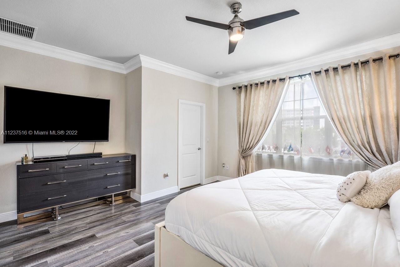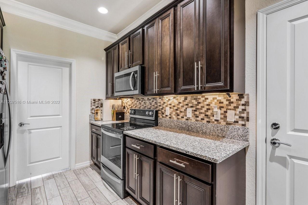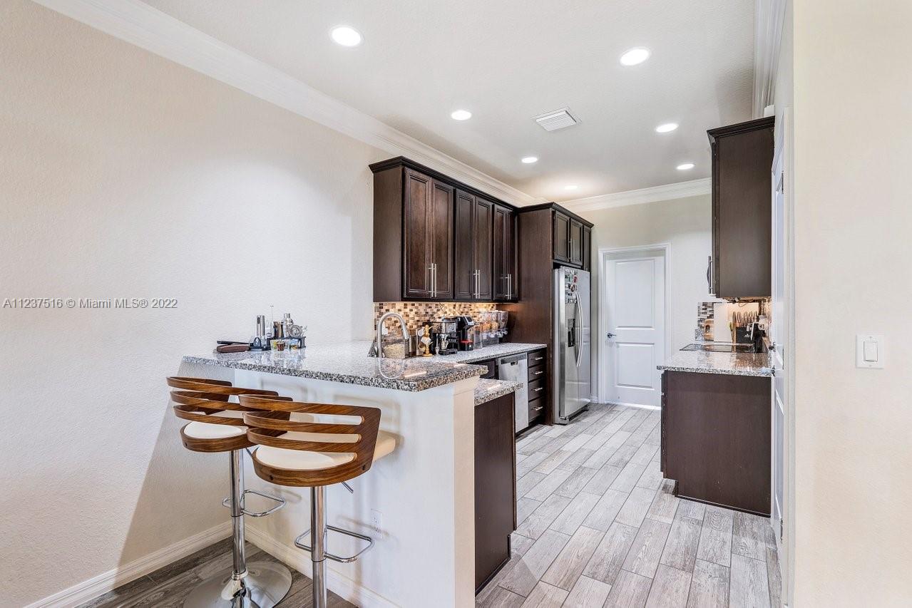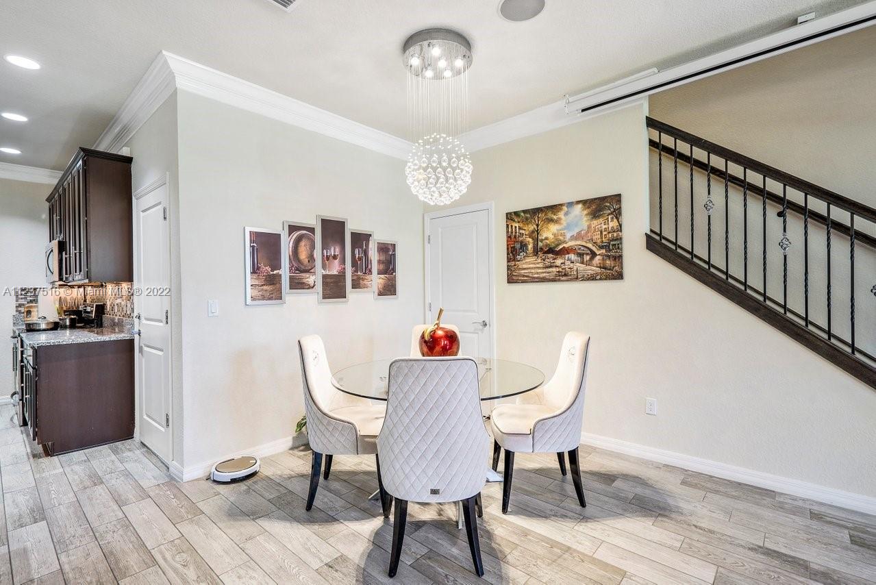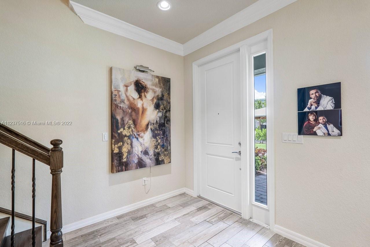 Spectacular townhouse. Bright and spacious floor plan. It offers, 3 bedrooms, 2.1 bath, laundry room, one car garage and 3 car driveway parking. Completely remodeled including high modern cabinetry, vinyl flooring, kitchen splash back, fresh paint, movie projector, projector screen built in, surround sound system, jewelry-like chandeliers over the sleek dining room table, living room, staircase and master bedroom. This newer construction includes metal roof, impact glass windows throughout and 12'-foot ceilings. Club house offers, fitness center, ballroom, card room, swimming pool, dog park and children's playground. Low HOA. Hollywood is centrally located just minutes from major highways, restaurants, popular beaches and shopping malls.