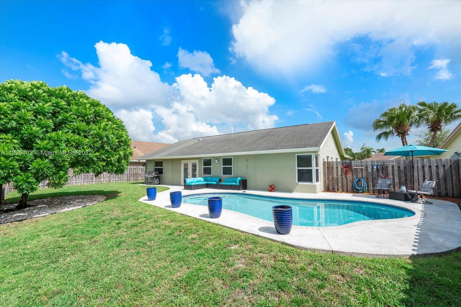 Beautiful 3/2 home with Florida room and pool on the water in a quiet cul-de-sac in Westbridge-Welleby - a pet friendly, well maintained community. Hurricane windows & salt water pool, huge fenced yard great for entertaining, kitchen recently upgraded with white cabinets, granite countertops & newer stainless appliances; vaulted ceilings, spacious layout.