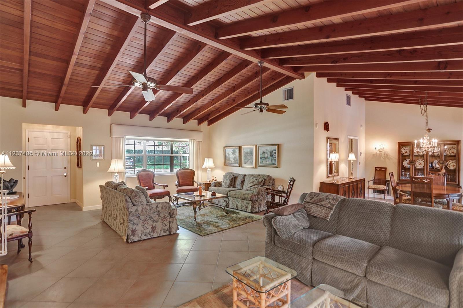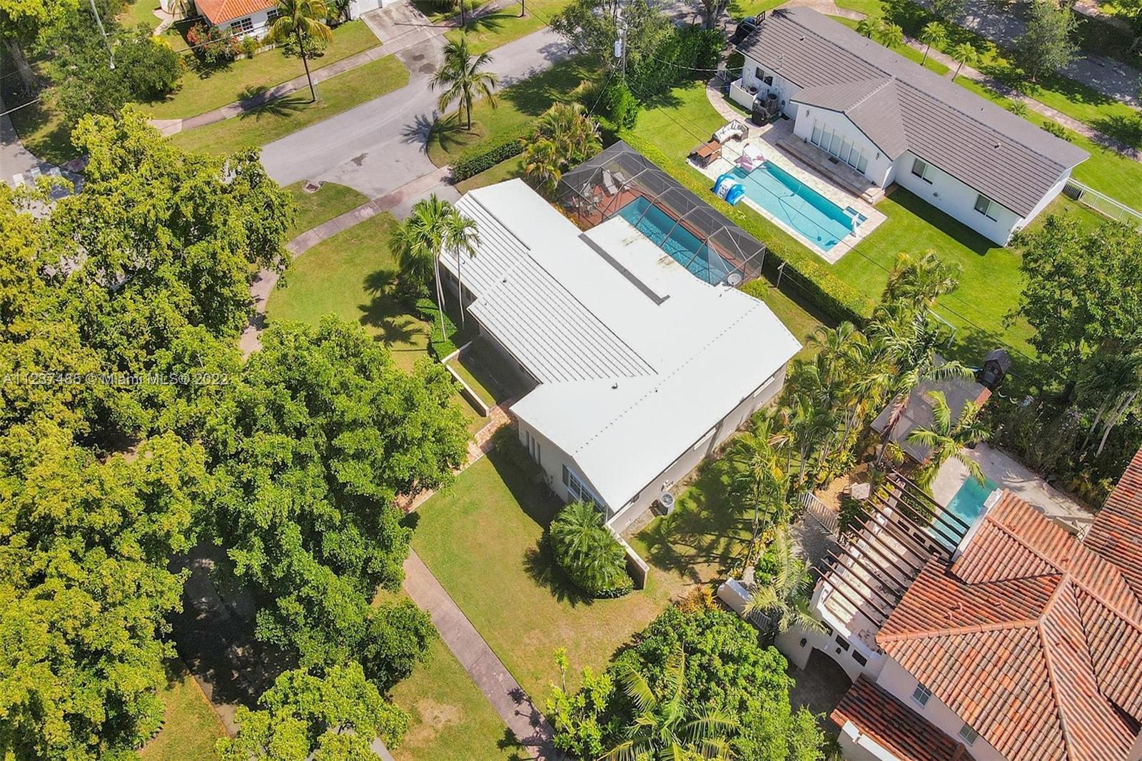 Location! Location! Location! A fantastic opportunity to own a beautiful & well maintained Mid-Century home in South Coral Gables. A wonderful floorplan with 3 bedrooms, 2 baths, plus pool, & a side entry 2-car garage, on a large corner 11,400+ sq ft lot. Upon entering you will be impressed with dramatic vaulted wood beamed ceilings in social areas, French doors overlooking the screened patio, & dome-screened pool. 3 bedrooms have original hardwood floors, in impeccable condition & 2 bathrooms in original impressively preserved condition. Large eat-in kitchen with door leading into the 2-car garage. Roof has been recently replaced (5+ years ago). Close to Whip 'n Dip, play & exercise park, Publix, Sunset Place, Whole Foods Market, restaurants & the Metrorail. A HOME FOR ALL TO ENJOY!