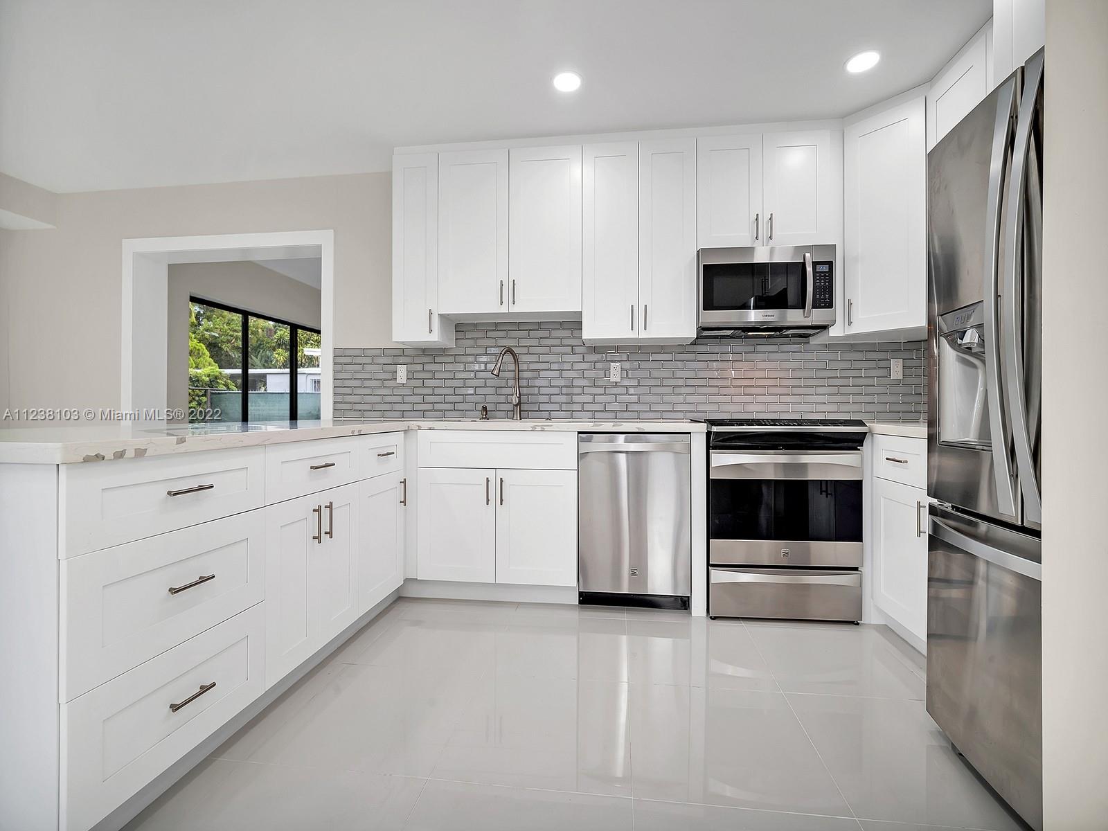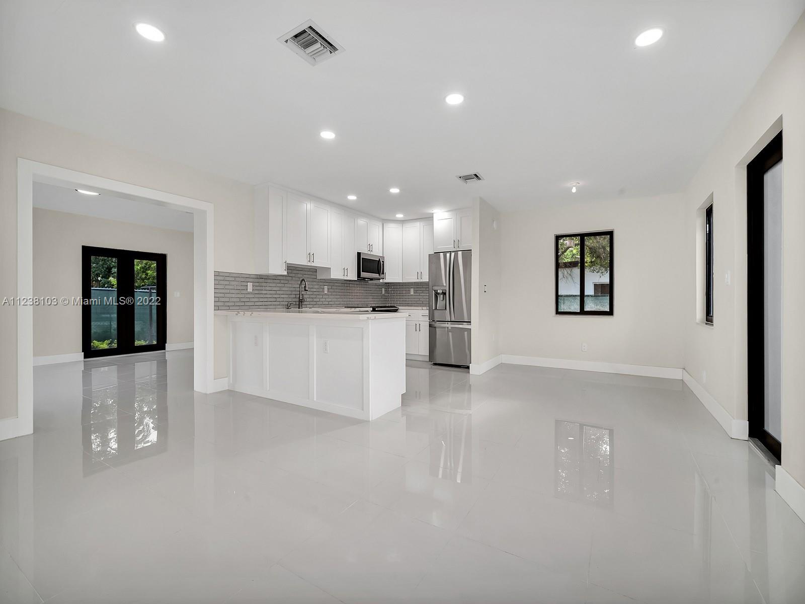 Completely REMODELED 3 bdrm 3 full bath home. This amazing house sits on a corner lot on a private cul de sac. As you walk in, you can enjoy the beauty of the open concept of the open kitchen w/ the living room, dining room & family room area. The kitchen comes w/spectacular quartz countertops, top of the line appliances & beautiful white wood cabinets. Floors throughout the house is a gorgeous white porcelain. A lot of natural light comes in the house.. You can also enjoy the spacious backyard for relaxation. House comes with an outside storage unit. No expense was spared when renovating this house. House has New Plumbing, New A/C, New Impact Windows and Doors, New Electrical, PVC Pipes. Close to Downtown Miami Shores. Click on Virtual Tours for a great video of the house!