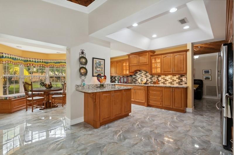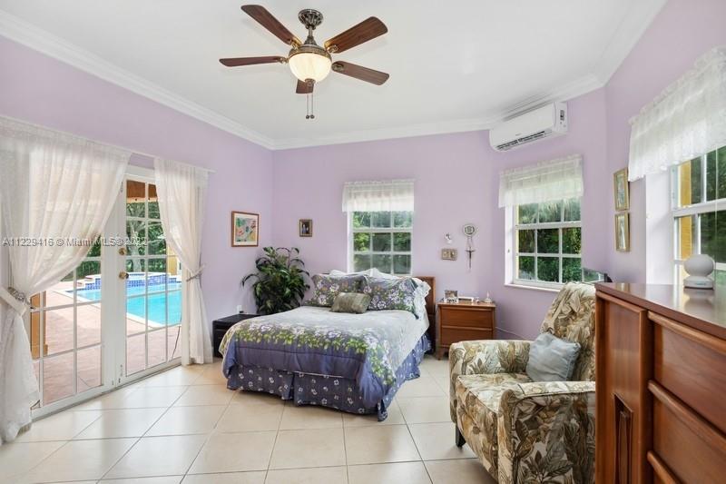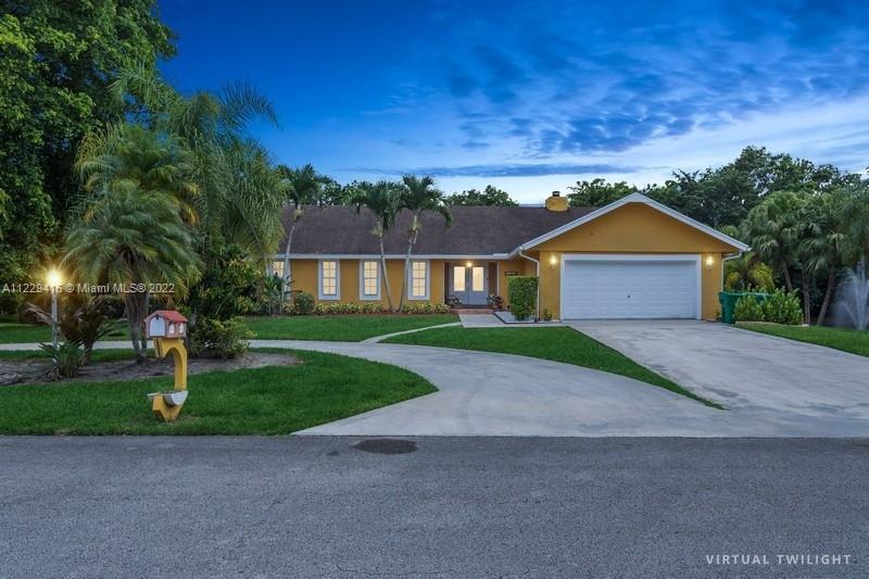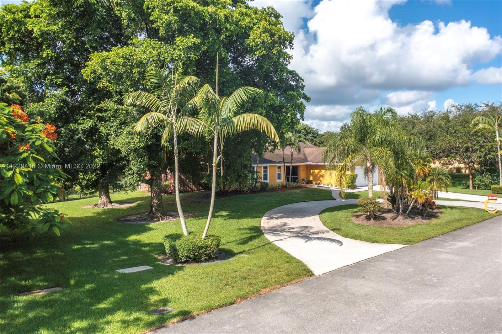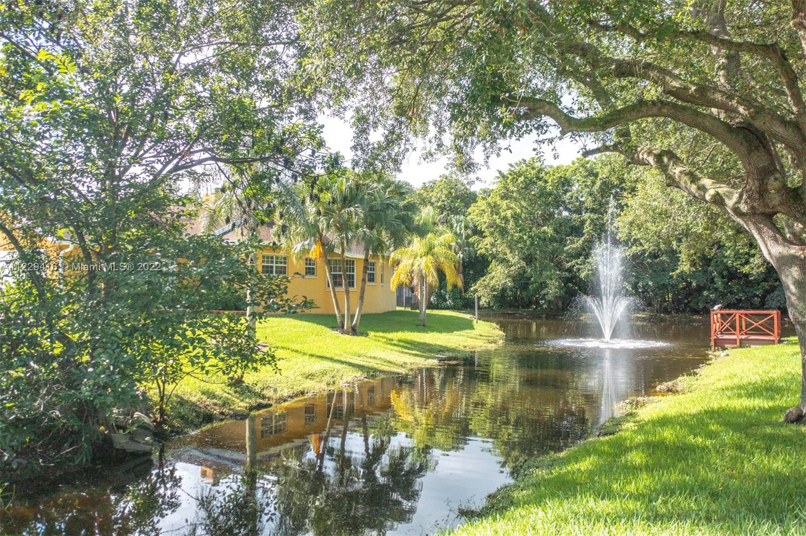 Welcome to the highly desirable Olde Bridge Run neighborhood. Gorgeous piece of tropical paradise with nearly an acre of land with your own pond and water fountain around mature beautiful flowering trees. Open concept floor plan with beautiful porcelain tile and high ceilings. Charming wood-burning fireplace in the living room, perfect for those holiday evenings and gatherings.  Huge eat-in gourmet kitchen with plenty of storage space including a bar. Plus an office/den for your convenience. The back porch opens to a tropical vista with a swimming pool/jacuzzi and an outside storage building/gym. A huge master room and master bathroom with a unique style plus a VIP room on the opposite side of the property. If you are looking for privacy and space, This is it!! HOA only $100 a year.