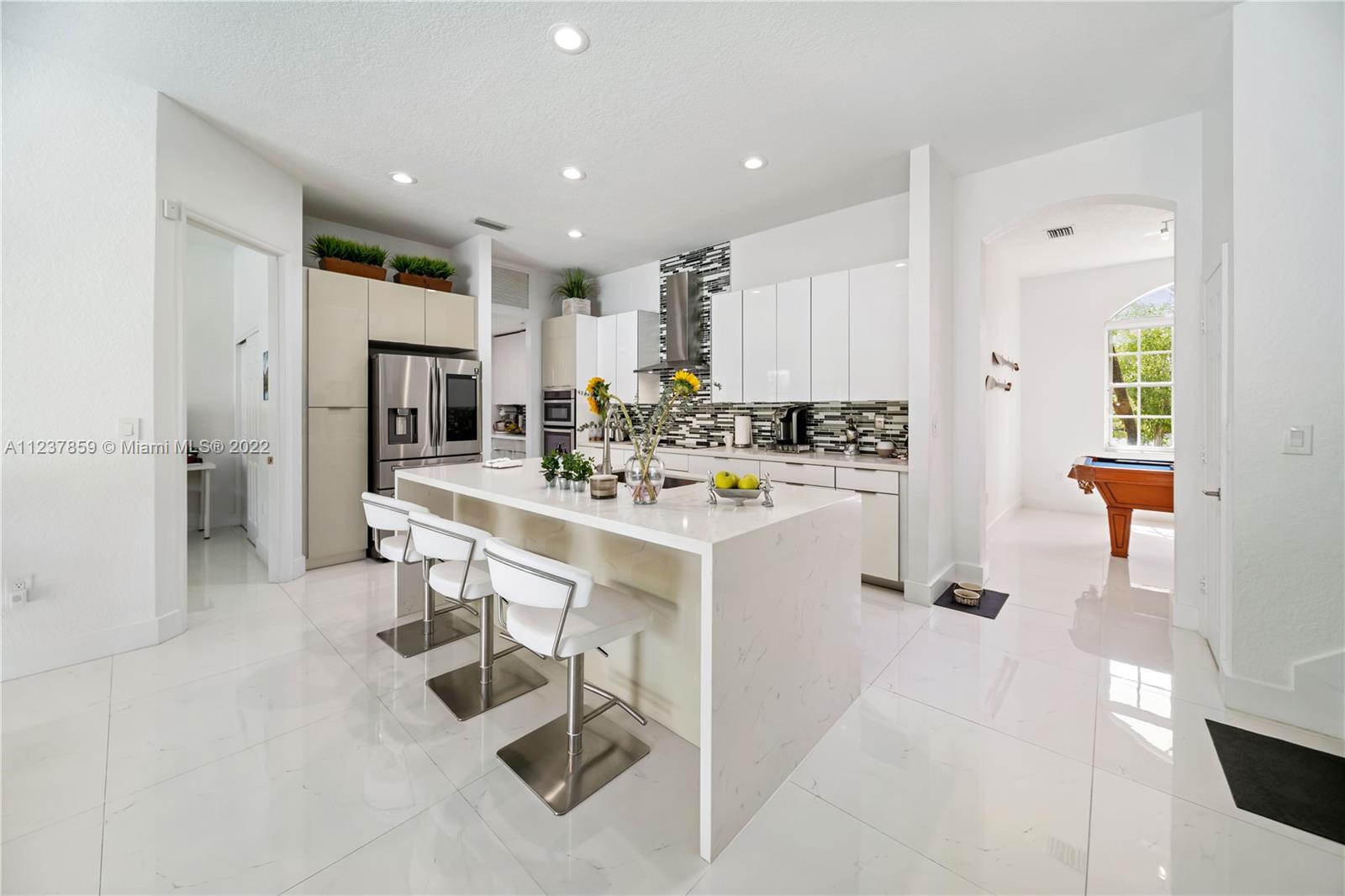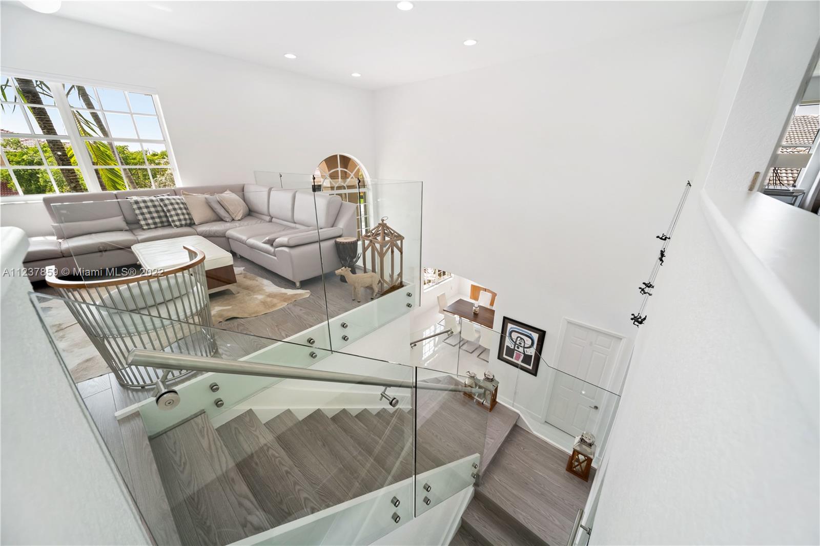Fall in love with immaculate 6 bedroom and 5.5 baths in the gated community of Harbour Lakes State! Home was remodeled less than 5 years ago. Features porcelain tiles, modern double stairs with glass, more than 20 ft high ceilings, plenty of natural light, two master suites, T Shower with jets, custom closets, quartz countertop, self closing cabinet drawers butler's pantry, smart garage and more. Patio is very inviting and perfect for entertainment with extra size pool, jacuzzi and covered terrace.