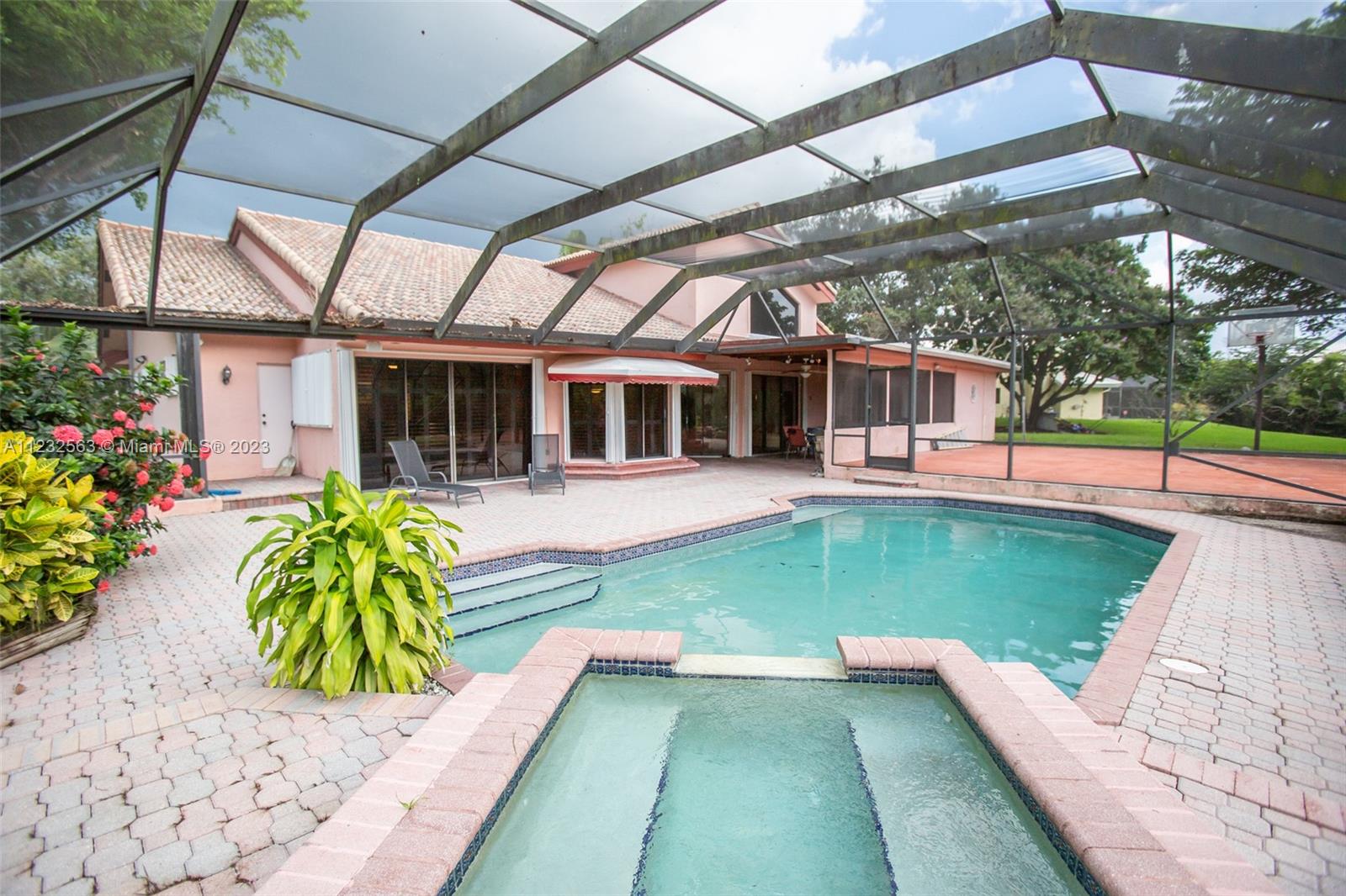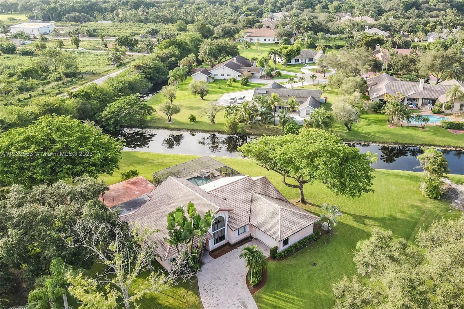 Serenity marks the spot for this Davie home in the beautiful, and much in demand, community of Laurel Oaks. Just minutes from shopping and in an A-rated school district. Sitting on a full one acre lot surrounded by water on two sides, this pool home rests on a cul-de-sac. Four bedroom, split floorplan with 2 car garage. Large, open living and family area separated by the kitchen. Enjoy sitting on your enclosed screen patio overlooking the pool, basketball court and canal. Lot is large enough for additions. Includes 50 kW automatic generator that supports the entire house. Roof was put on in 2006. Plenty of parking, very low HOA and located off of Griffin Road, just two minutes from I-75.
