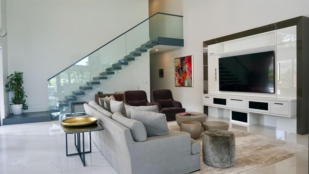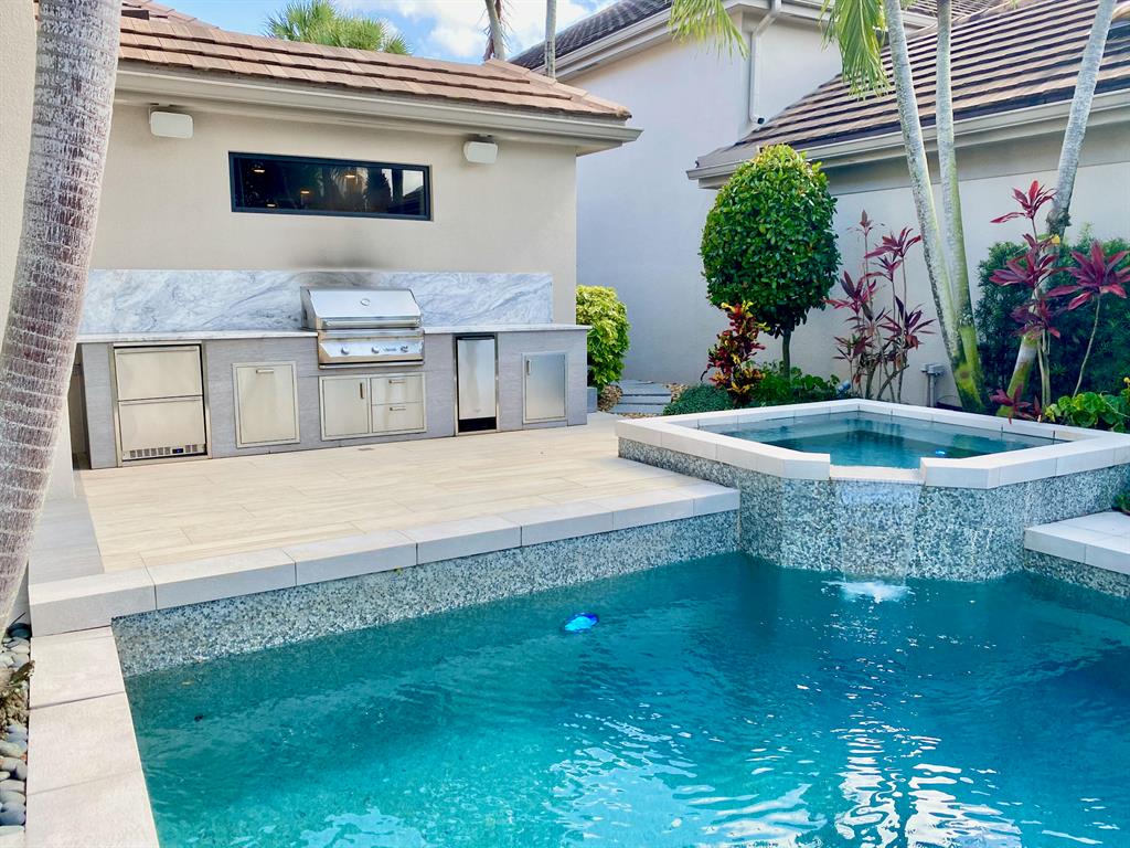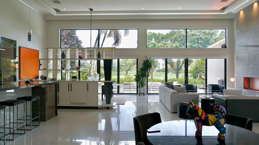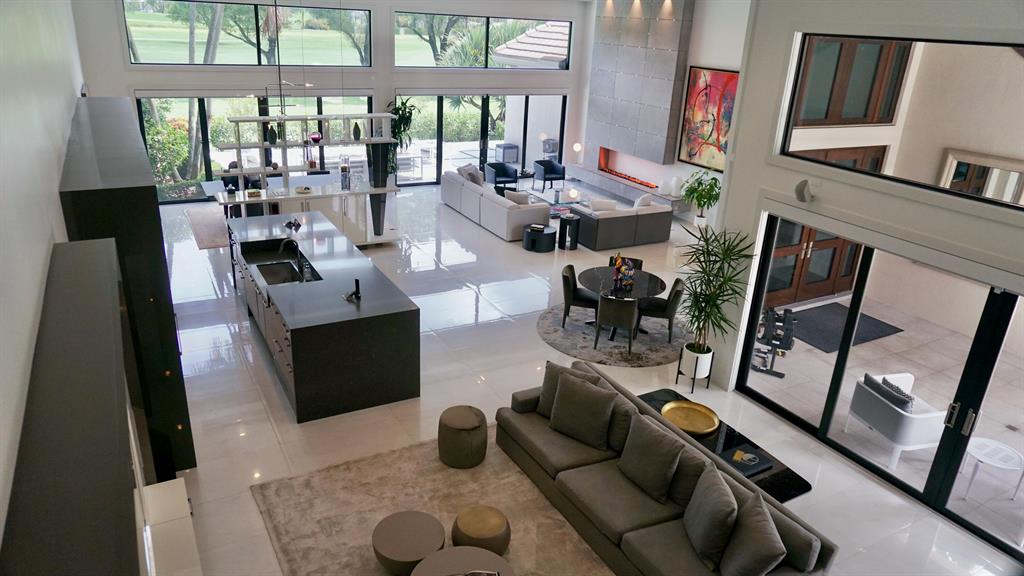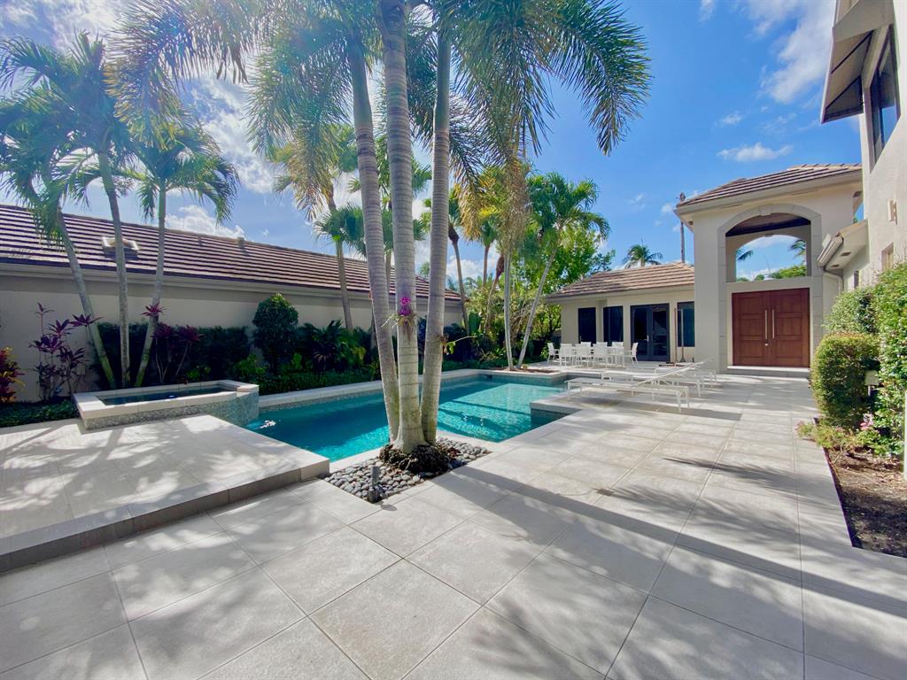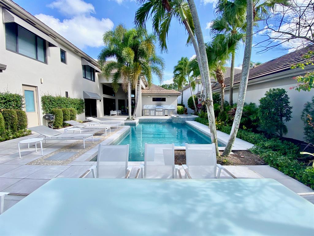 Enter a hidden world of modern luxury and beauty within the award-winning Broken Sound Club. This renovated 5 bedroom 5 1/2 bathroom home features a courtyard that greets you with luxurious Quartzite tile and fully automated modern pool. Entertain outside at the elaborate summer kitchen with a built-in outdoor sound system, and savor the privacy behind the lavish mahogany doors. You will find 15' ceilings in main living area with unique ceiling designs and cove crown moldings throughout. The kitchen boasts Miele, Bosch, and SubZero appliances in the custom kitchen, island and bar. Kitchen features quartz countertops, high-pressure laminate cabinets and full glass backsplash. Large hurricane windows and sliders encourage the sun's energy to fill u