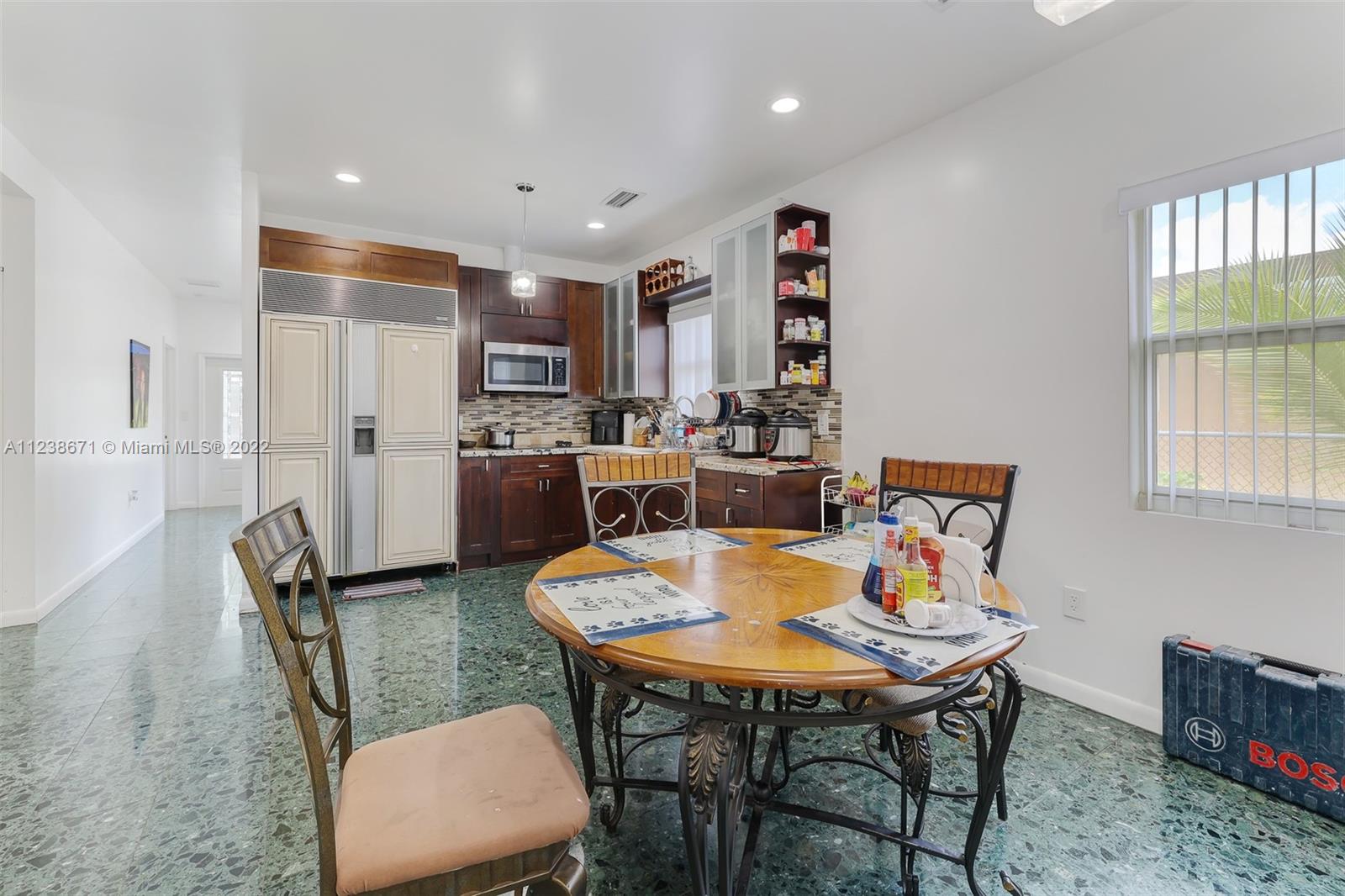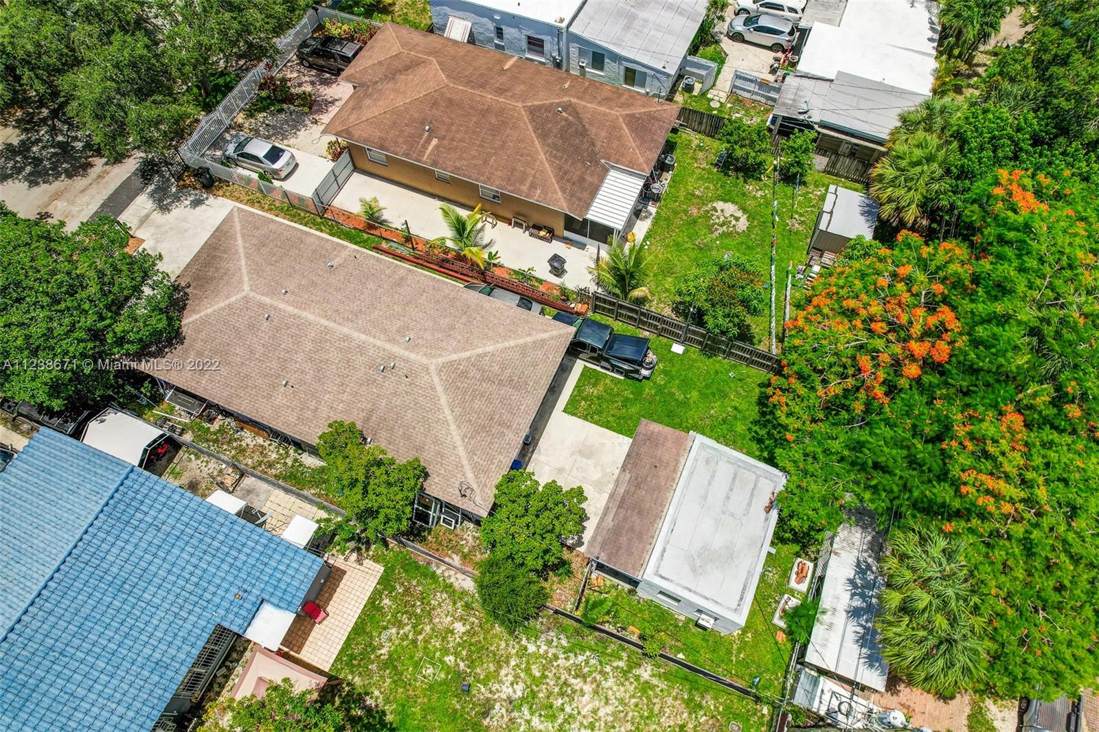 New house built in 2021 has 5 bedrooms 3 bathes, marble floors, wood cabinets, granite counter tops, Sub Zero Refrigerator, marble guest bath and marble master with jacuzzi tub, high ceilings with LED high hats through out, impact windows and doors, two tankless water heaters, 4 ton A/C with 2 electric meters and a rental income of $3600 a month. The original house which is in the back has approximately 469 sq. ft. with a 1-1. Front house which is 4-2 has approximately 1650 sq. ft. All dimensions must be confirmed.