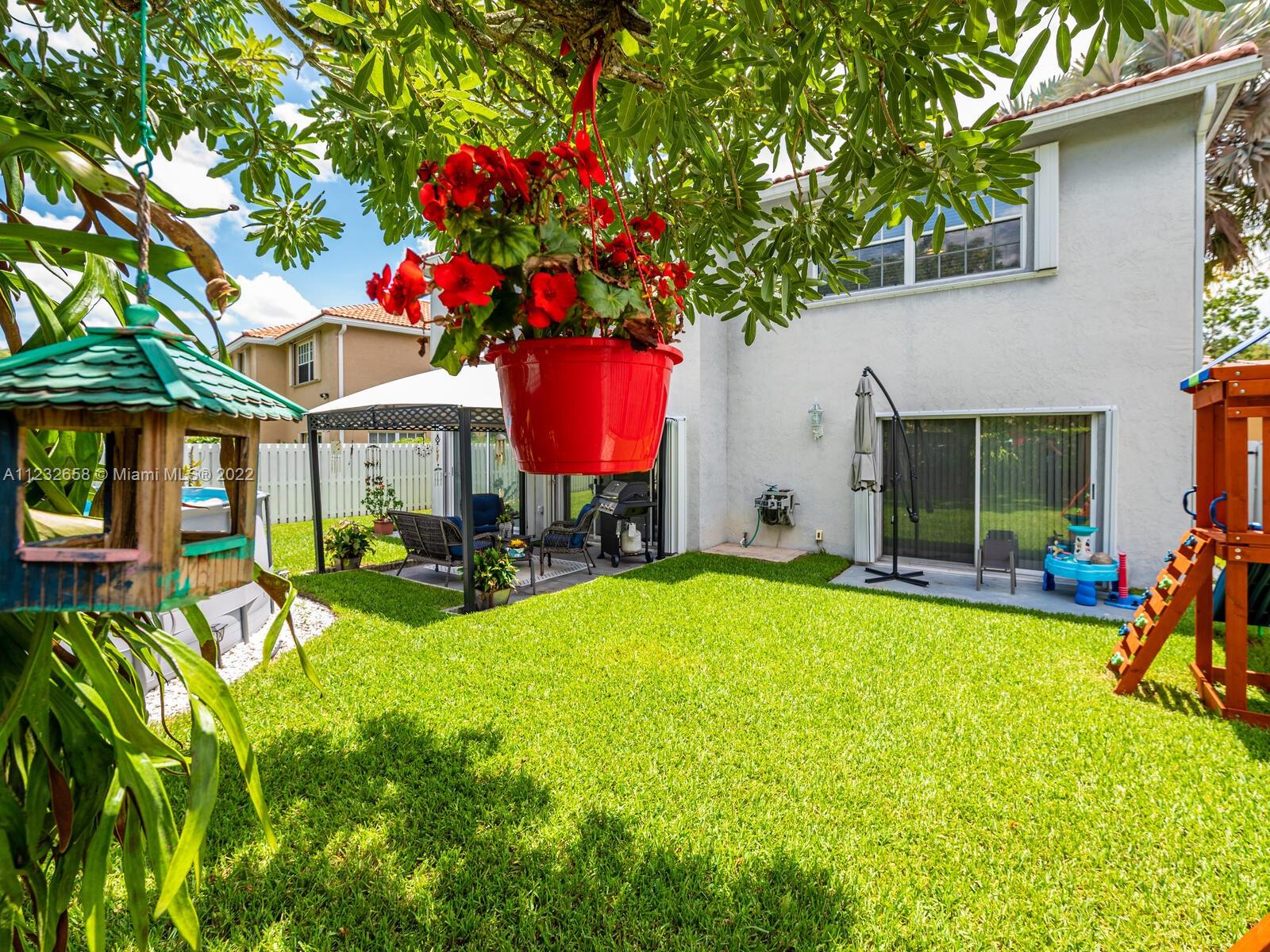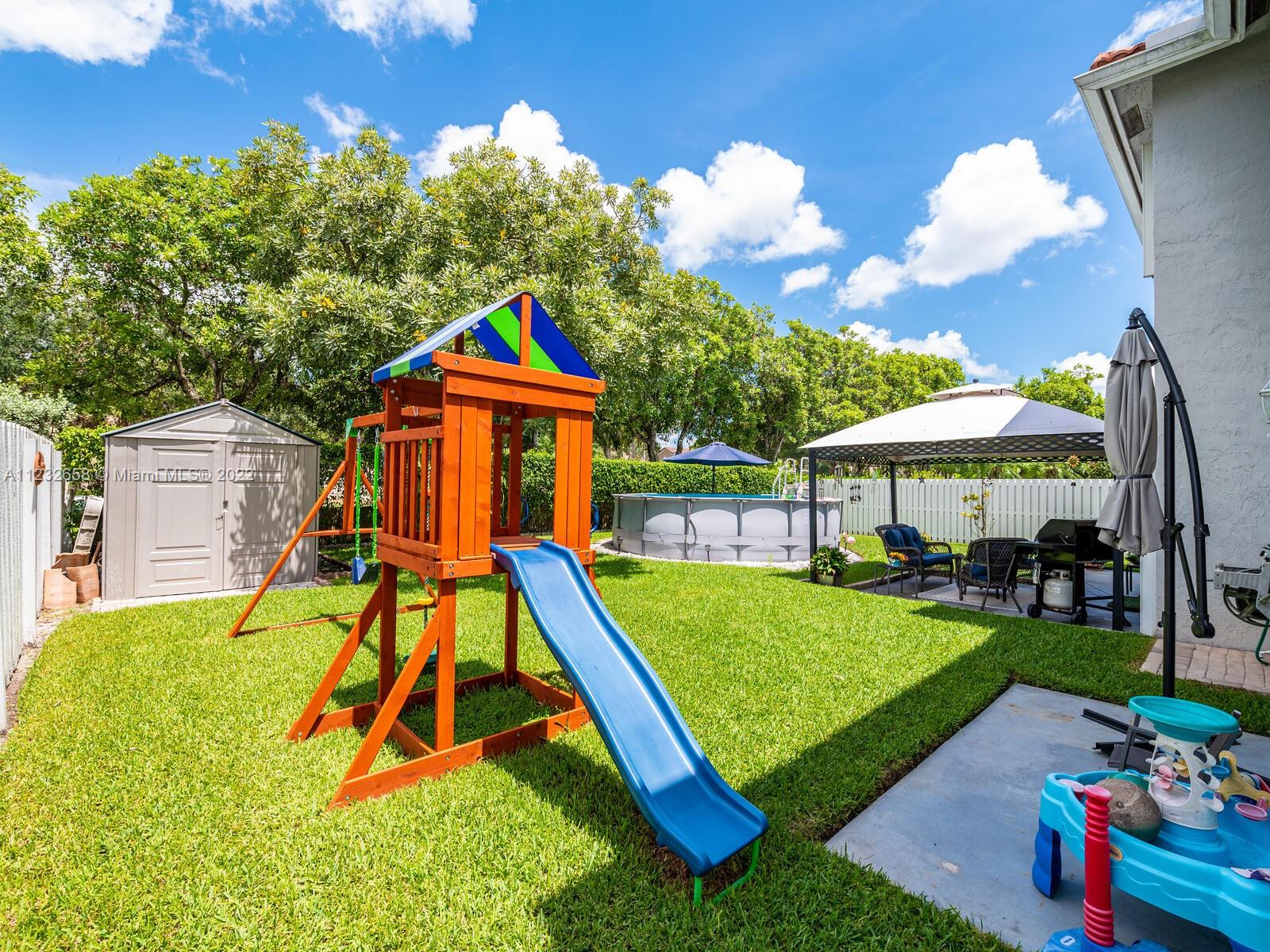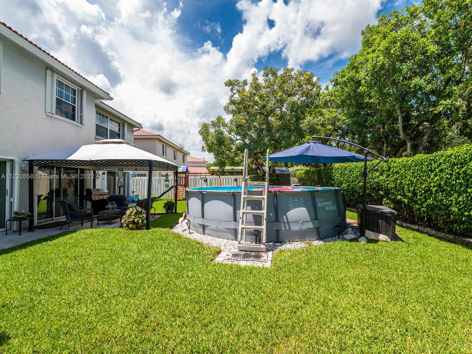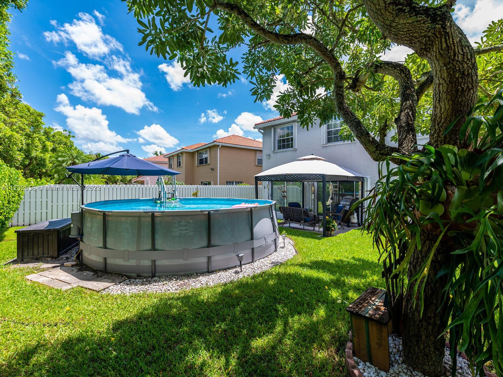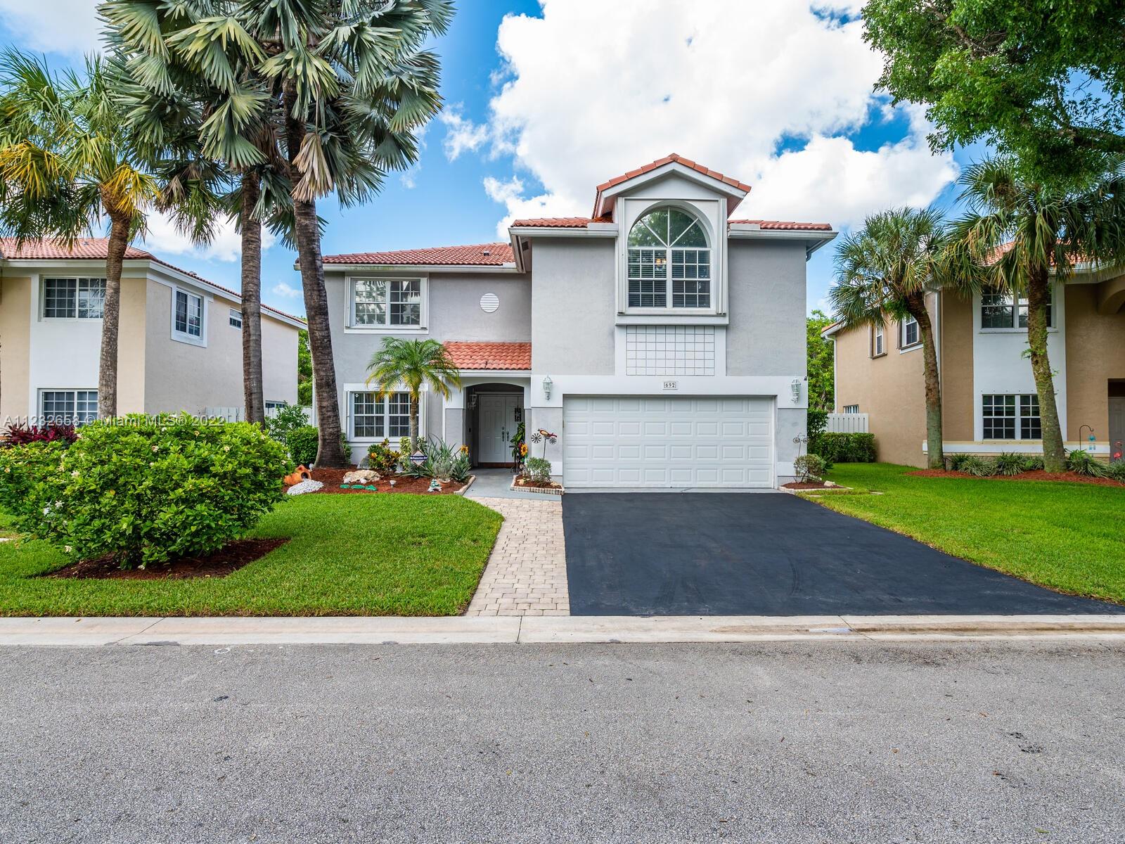 Beautiful well kept home featuring 4 bedrooms w/ 2.5 baths & 2 car garage. High end engineered wood flooring. Kitchen overlooks the family room. Newer S/S appliances. Gas water heater (2019) and dryer. all bedrooms on 2nd level featuring an oversized master suite with a double door entry & 2 walk in closets. Loft area on 2nd floor Attic flooring for extra storage. Master bathroom has separate shower plus a roman tub & double sinks. Alarm system with 2 motion detectors. The exterior has an above ground pool and the yard is totally fenced. Accordion shutters, tinted windows. Sprinkler system w/ separate water meter. 2 sheds. This home is walking distance to A+ schools plus a wonderful park with a splash pad! 5 minutes to Sawgrass Mills Mall. Centrally located for easy access to tri-county