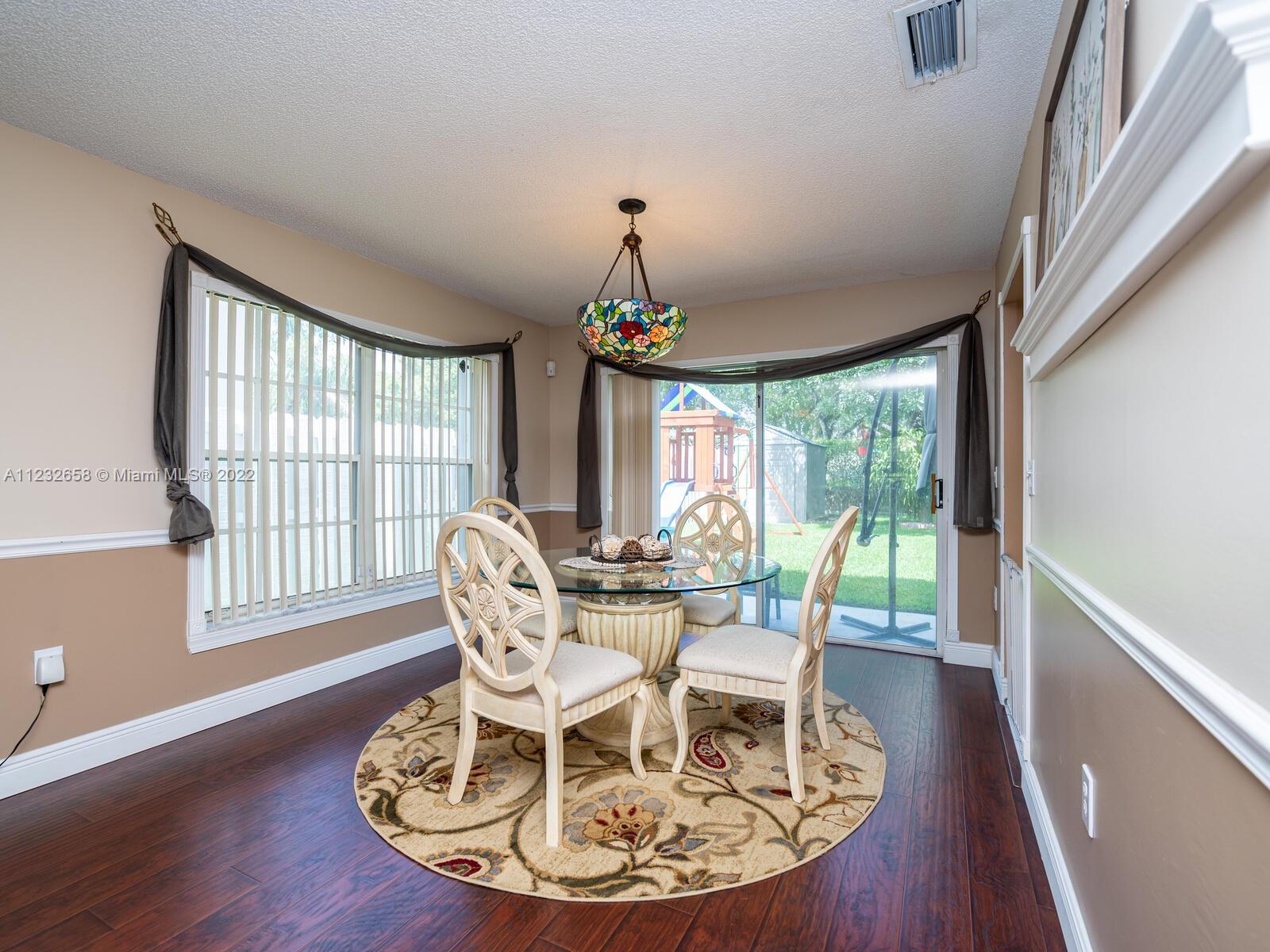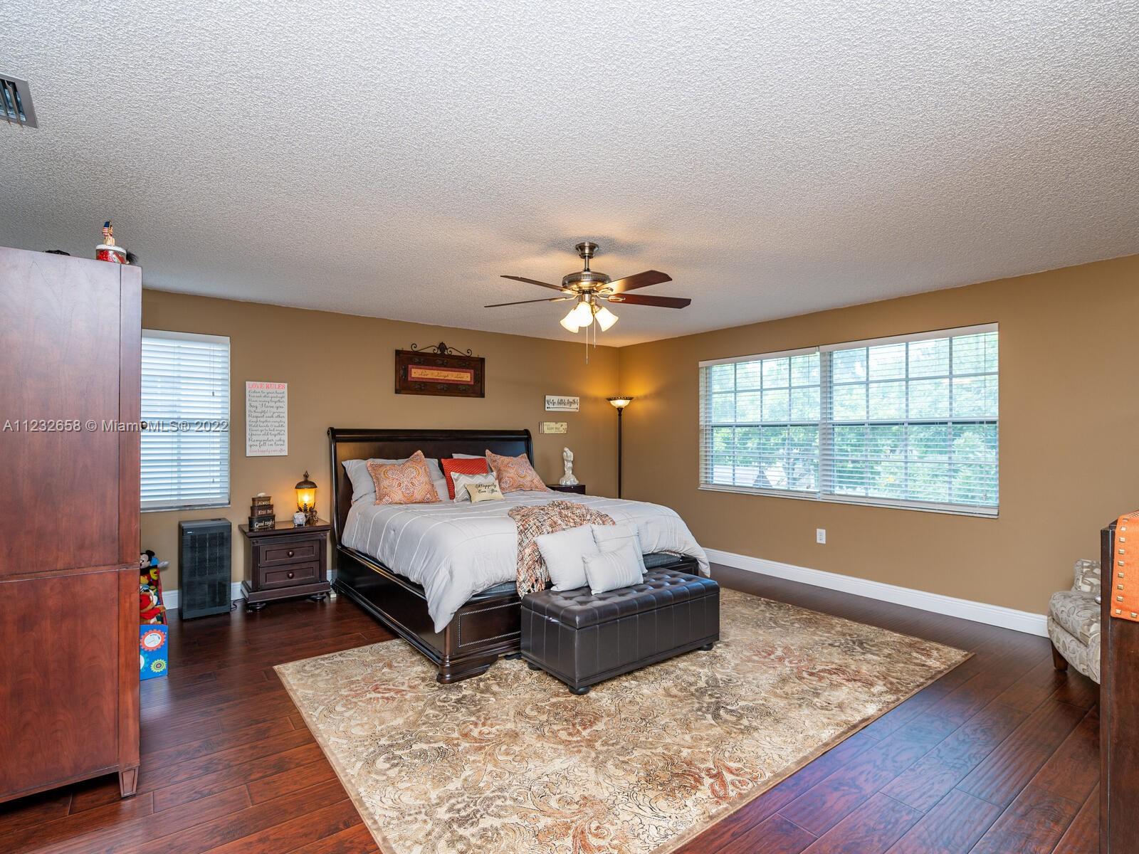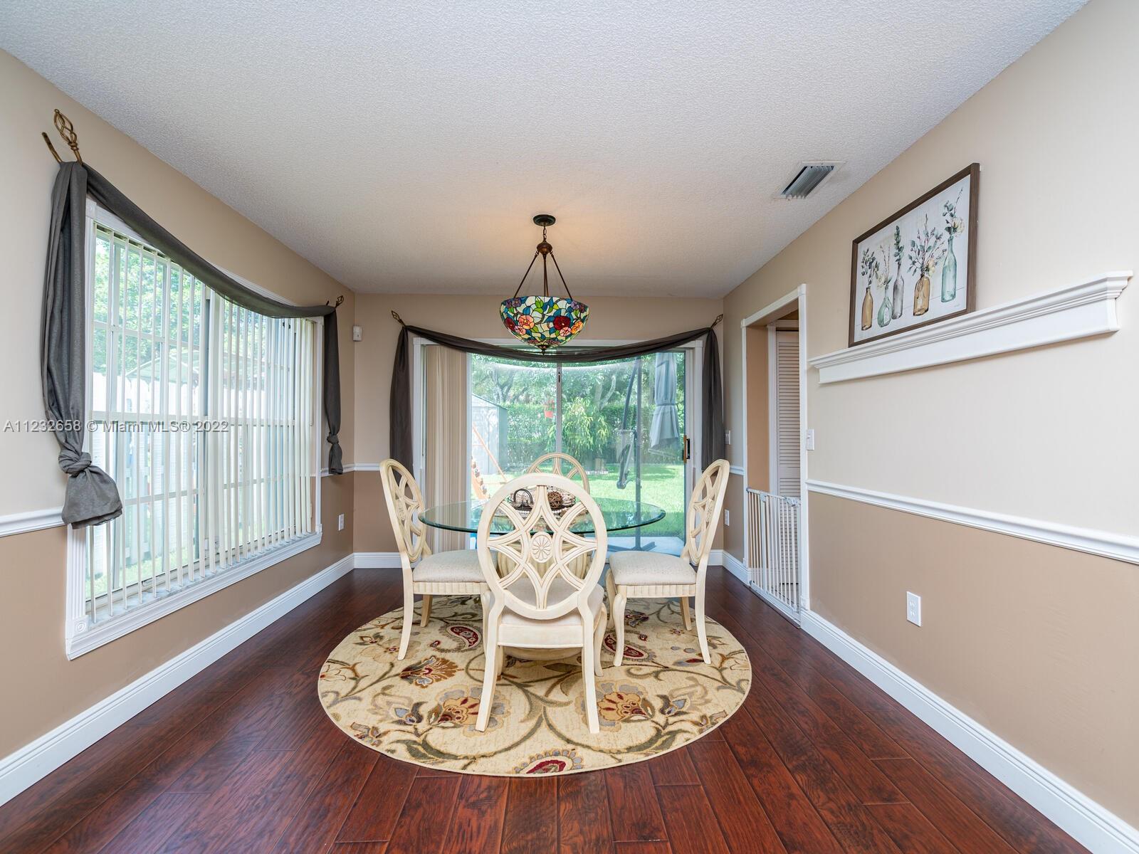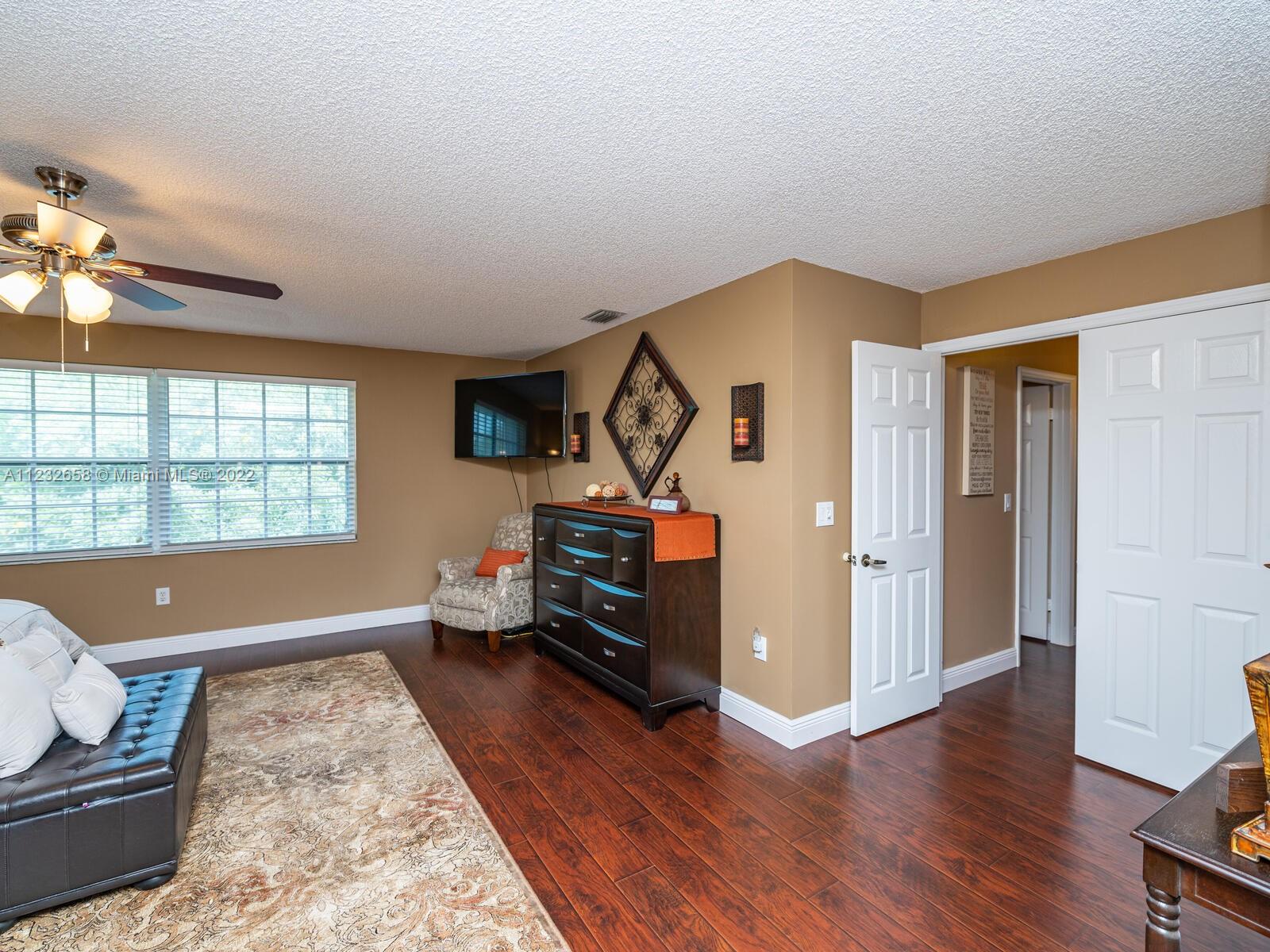 Beautiful well kept home featuring 4 bedrooms w/ 2.5 baths & 2 car garage. High end engineered wood flooring. Kitchen overlooks the family room. Newer S/S appliances. Gas water heater (2019) and dryer. all bedrooms on 2nd level featuring an oversized master suite with a double door entry & 2 walk in closets. Loft area on 2nd floor Attic flooring for extra storage. Master bathroom has separate shower plus a roman tub & double sinks. Alarm system with 2 motion detectors. The exterior has an above ground pool and the yard is totally fenced. Accordion shutters, tinted windows. Sprinkler system w/ separate water meter. 2 sheds. This home is walking distance to A+ schools plus a wonderful park with a splash pad! 5 minutes to Sawgrass Mills Mall. Centrally located for easy access to tri-county