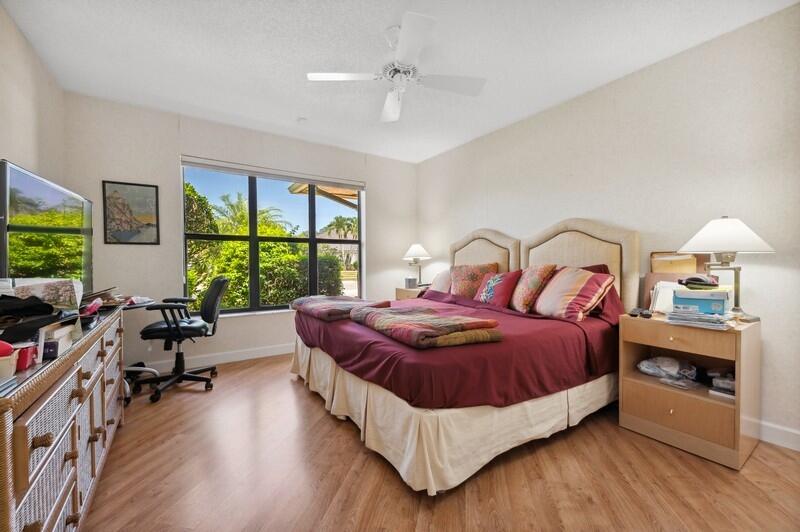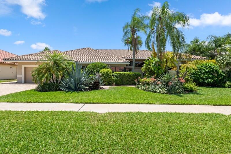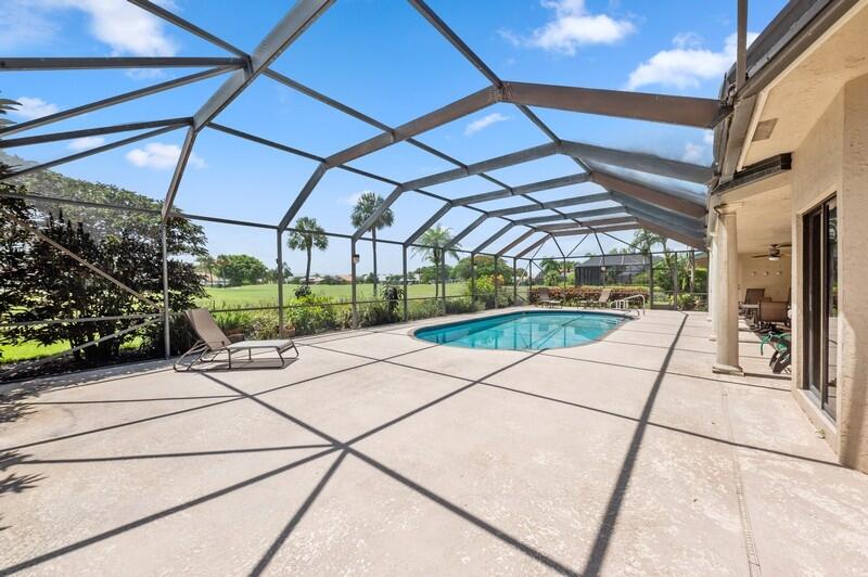 Big and Bright 3 bedroom, 3.5 bath Chardonnay Ranch in the Fabulous Boca Woods Country Club. Features include:large open eat in kitchen with granite counter tops adjoining spacious great room, living room, dining room, library and split bedrooms, walk in closets, Gorgeous sunsets & golf course views. Inground pool with large screened in patio plus retractable awning. 2 car garage plus golf cart storage. 2019 Front Roof, 2 A/C compressors, 1 is new! Newer Washer/dryer/fridge. All ages welcome at BWCC. 2 championship 18 hole golf courses, 8 Har Tru Tennis Courts, Pickle Ball, Fitness center , Fine Dining, Beauty Salon + more. Mandatory Golf Membership $75000 ($20,000 to be refunded when you sell the house, $55,000 non-refundable) paid 10 days prior to closing. Room sizes taken from orig