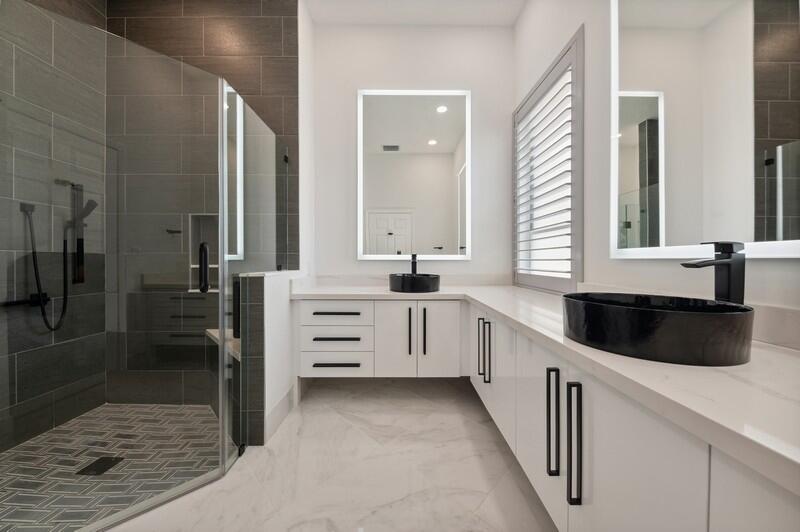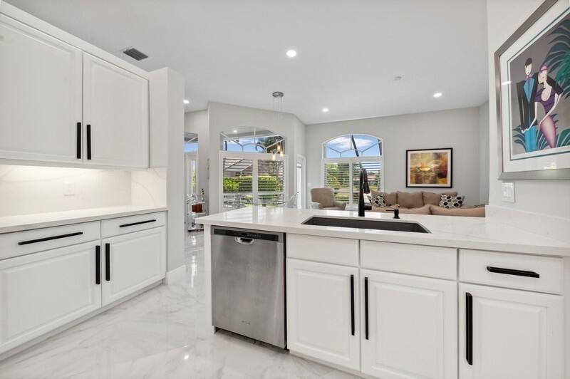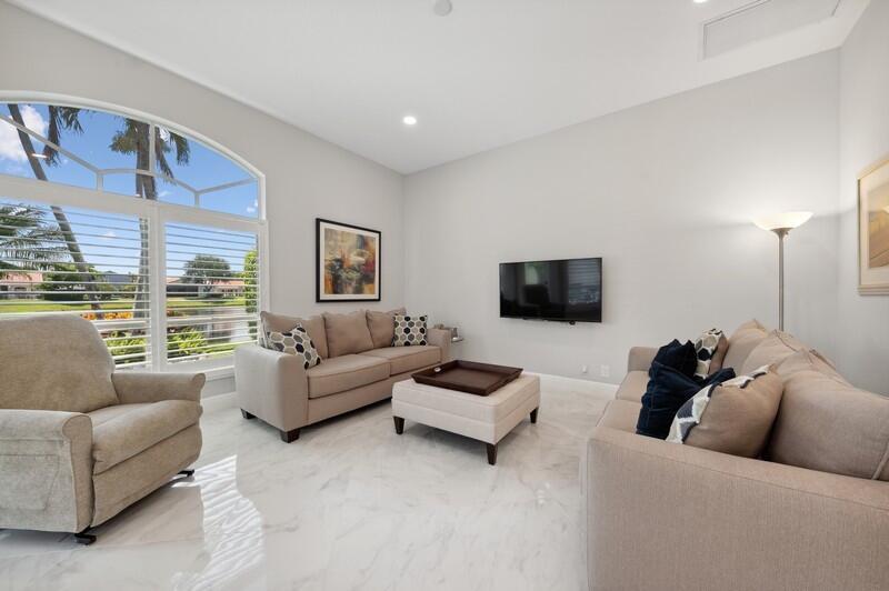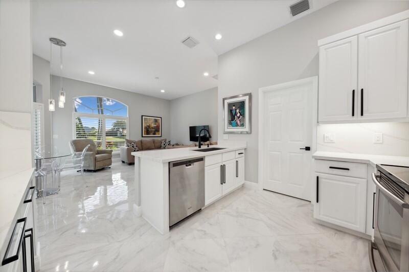 Your search for a truly turn key waterfront home in Boca is over! This 3br/2ba property has been stunningly remodeled in the past year including new flooring, kitchen, bathrooms, and paint. As you enter the sun-filled home you are struck by the vaulted ceilings, open concept floorplan, and water views. The kitchen has been outfitted with quartz countertops, stainless steel appliances, custom white cabinetry, and a separate walk-in pantry. The master is suite situated away from guest rooms to allow for added privacy and boasts a bathroom with double vanities and spa shower. The property's backyard is a true oasis with an oversized patio and long lake views. The home has been meticulously maintained with other upgrades including a new A/C and water heater (2020), built ins in