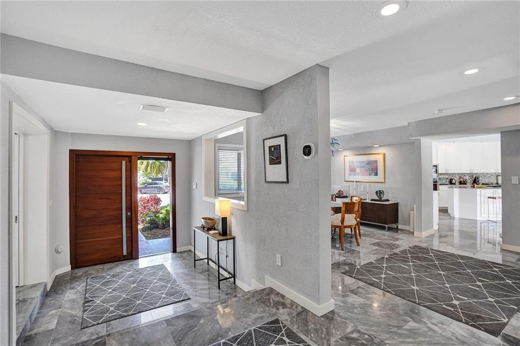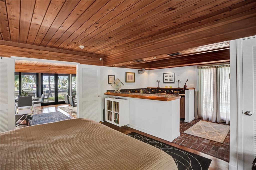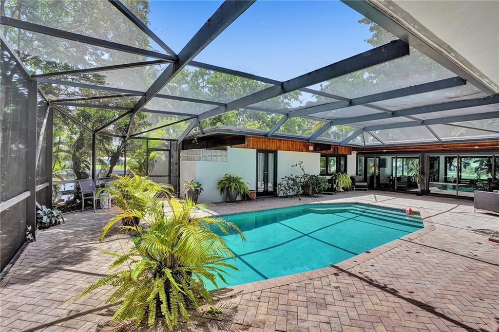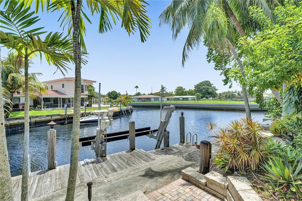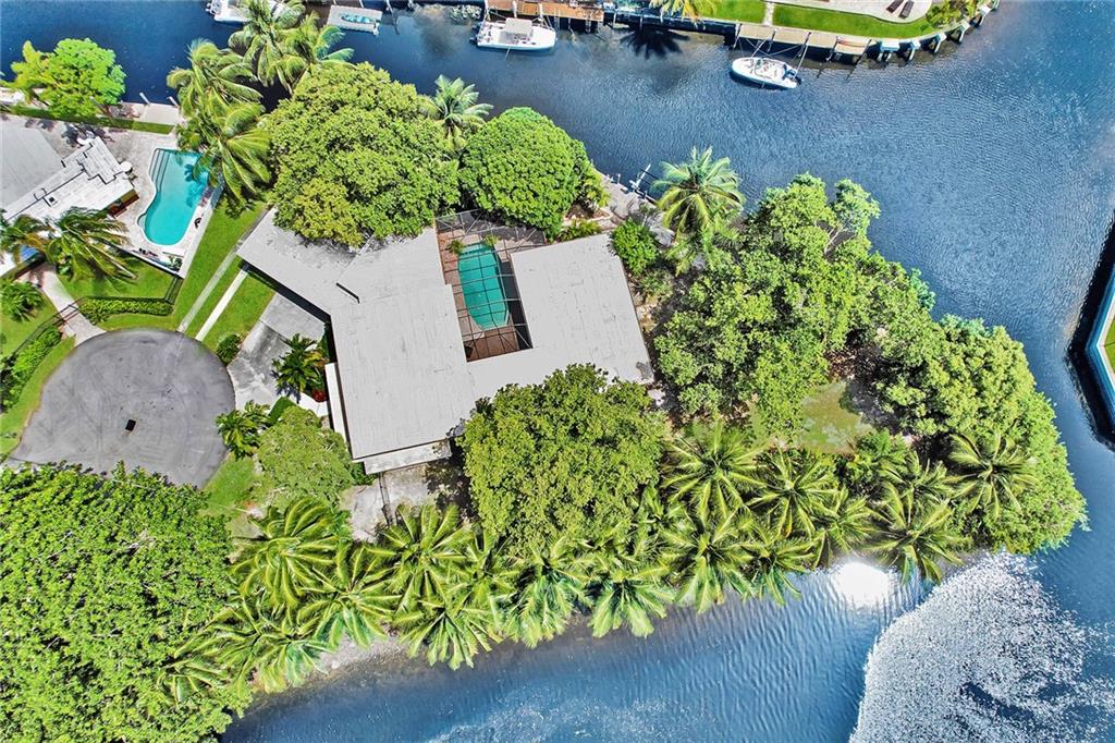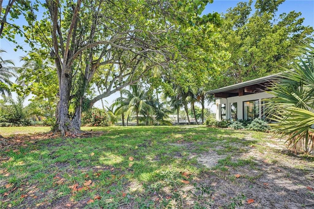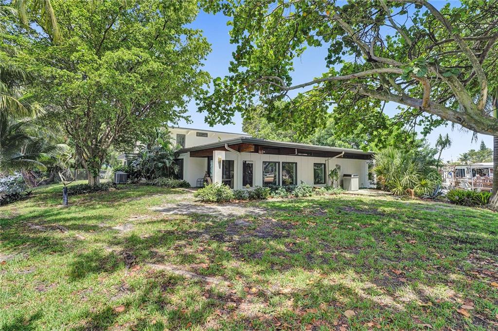 Welcome to this special waterfront oasis. The massive 16,000 sq foot lot operates closer to 20,000 when factoring in land easements and sits at the end of a quiet Cul-de-sac. Almost 450' of waterfrontage. This house has a very mid-century feel. Large 4BR/3.5 bath home with 3576 sq feet under air and massive 600+ sq foot garage. All impact glass. 3 new baths. New marble floors. Newer 10,000LB boat lift. Wide water views from multiple vantage points. An incredible combination of views and privacy. Immense tree canopy. The downstairs wing has a family room and large ensuite bedroom..this wing has its own Air conditioner and can easily convert to a massive master suite..currently makes an ideal "mother in law" or massive home office. Great set up for RV parking.