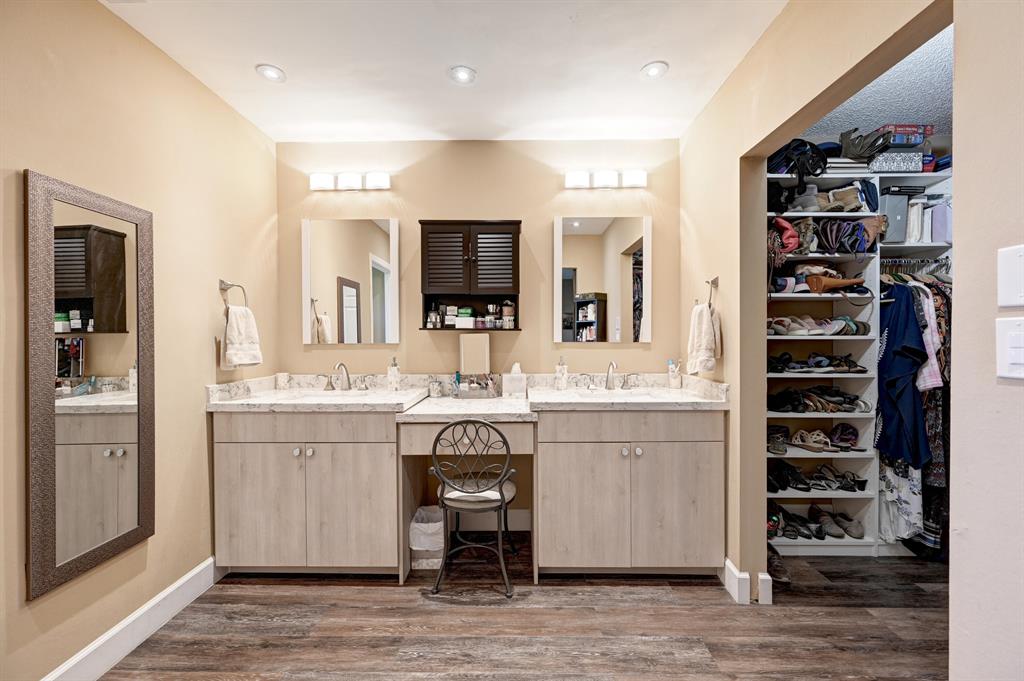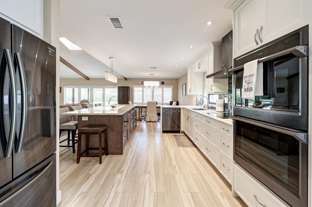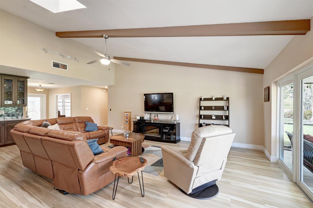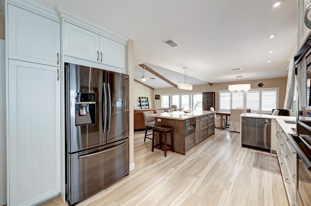 Your search for a totally remodeled home is over. This 3 bd/2bath home was lovingly remodeled 4 years ago. As you enter the sun-filled great room you will love the open concept floor plan with vaulted ceilings, an incredibly large kitchen with white cabinets and quartz counter tops including a huge island and two wall ovens, black stainless appl. and glass back splash.. Living area floors are a neutral plank tile and luxury vinyl through the rest of home. Screened back patio looks out to a water view with no neighbors in view. Popcorn removed from all ceilings, Both baths have been updated and main bath has barn doors & glass shower doors, Plantation shutters on all rooms, This is a 55+ community where 1 resident needs to be 55+ and children 16 & over are welcome. Open house 7/16 & 7/17