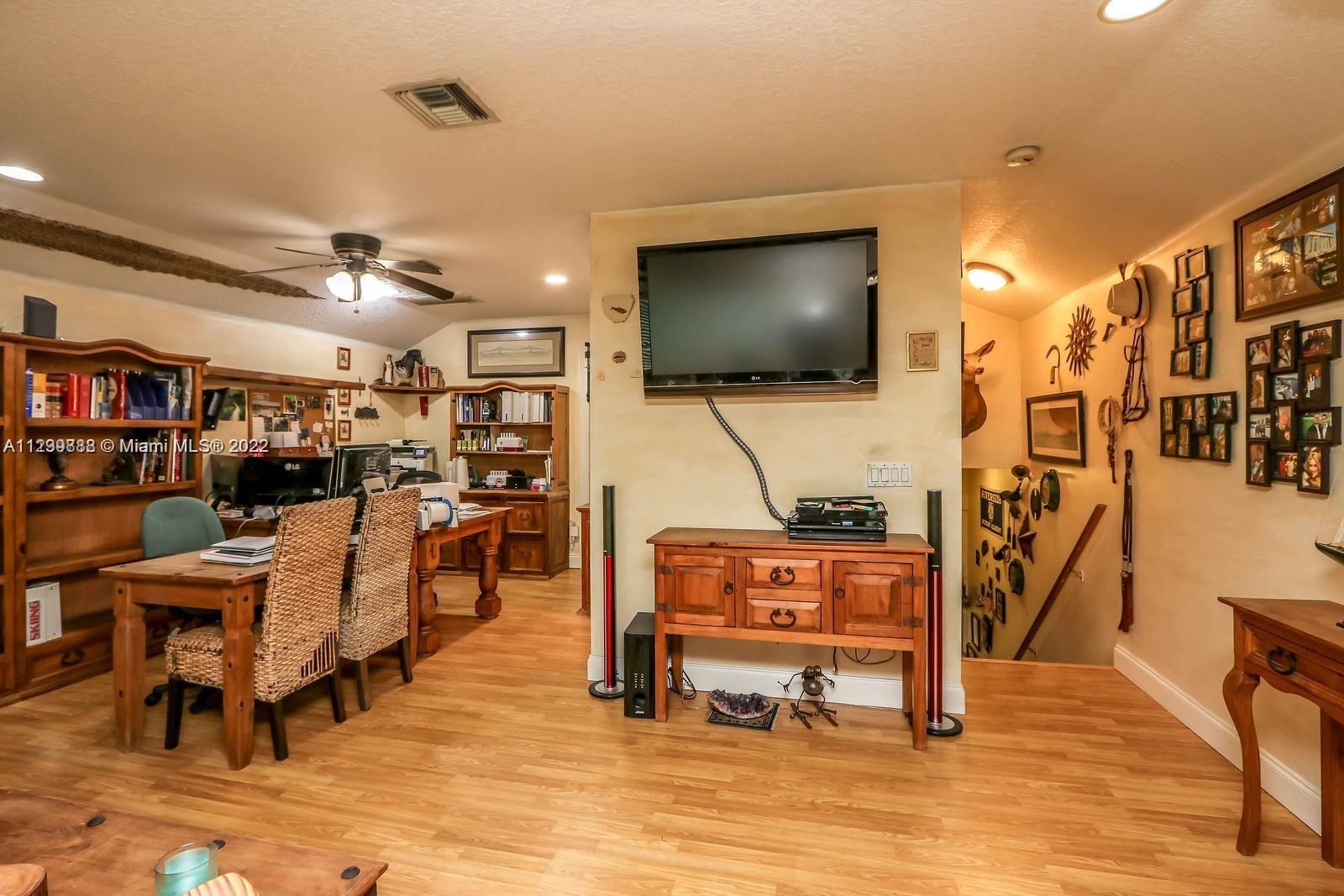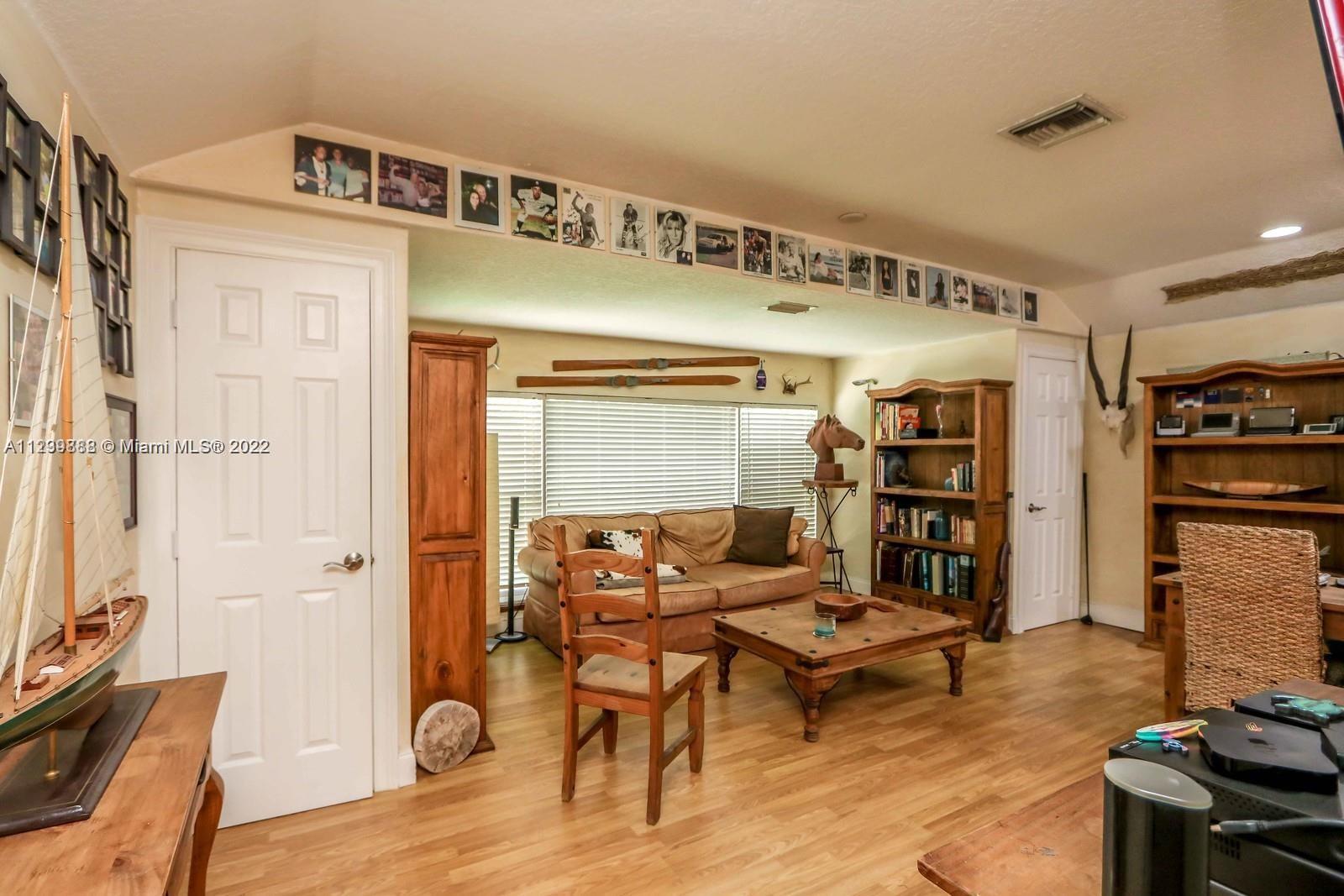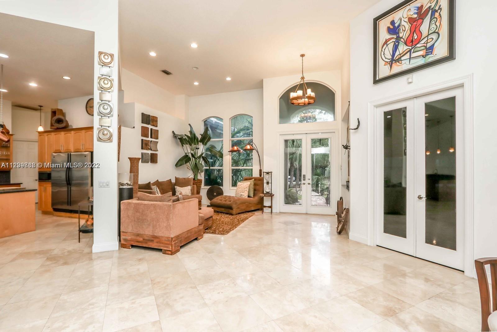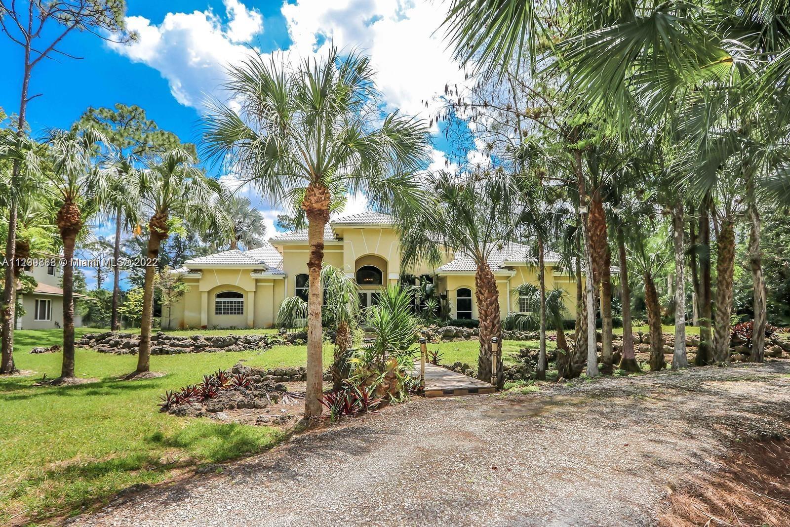 The living SFT is actually 3.427(modification are being actualized with the city).Unique Home & preserve for naturalist in you. Acre+cypress trees with fern filled habitat rear yard, bright open design, extraordinary gourmet cooks kitchen,(master chef style appliances)commercial gas range, wood cabinets with gleaming granite counters, side by side full size & stainless refrigerator /freezer, spacious private upstairs suite with bathroom. Beautiful landscaping, the back door leads to the private jewel pool/BBQ area with splendid gardens and PUTTING GREEN, direct access to family and livingroom and all bedrooms (open concept). Hurricane high impact glass windows and doors.Marble floors throughout included master bad/bed.