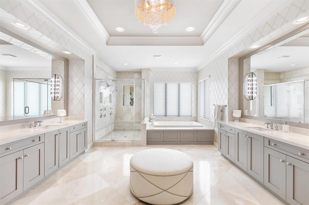 17518 Grand Este Way is located on an oversized, lakefront lot in the prestigious Grand Lake Estates section of The Oaks, Boca Raton. At over 7,500 sq. ft., this beautiful, custom-built GL Home has it all. In addition to six en-suite bedrooms, six full baths and two half-baths, the property also boasts breath-taking high ceilings, an open-concept double-island kitchen, family-room, formal dining room, club room with billiards table and video games, a seven-seat movie theatre with Dolby 7.2 surround sound, two laundry rooms (both upstairs and downstairs), four-car garage, and an upper-level den/loft. This residence comes fully furnished with a Decor package by Decorators Unlimited.