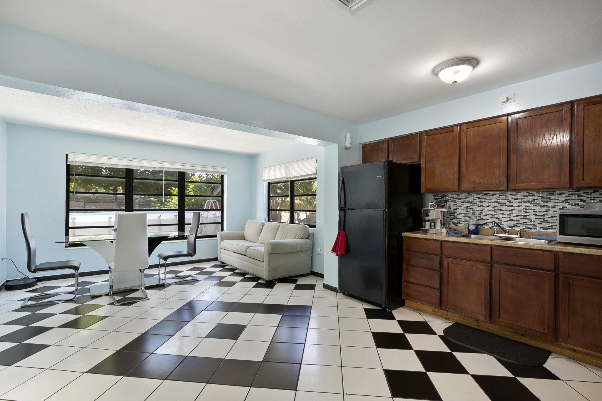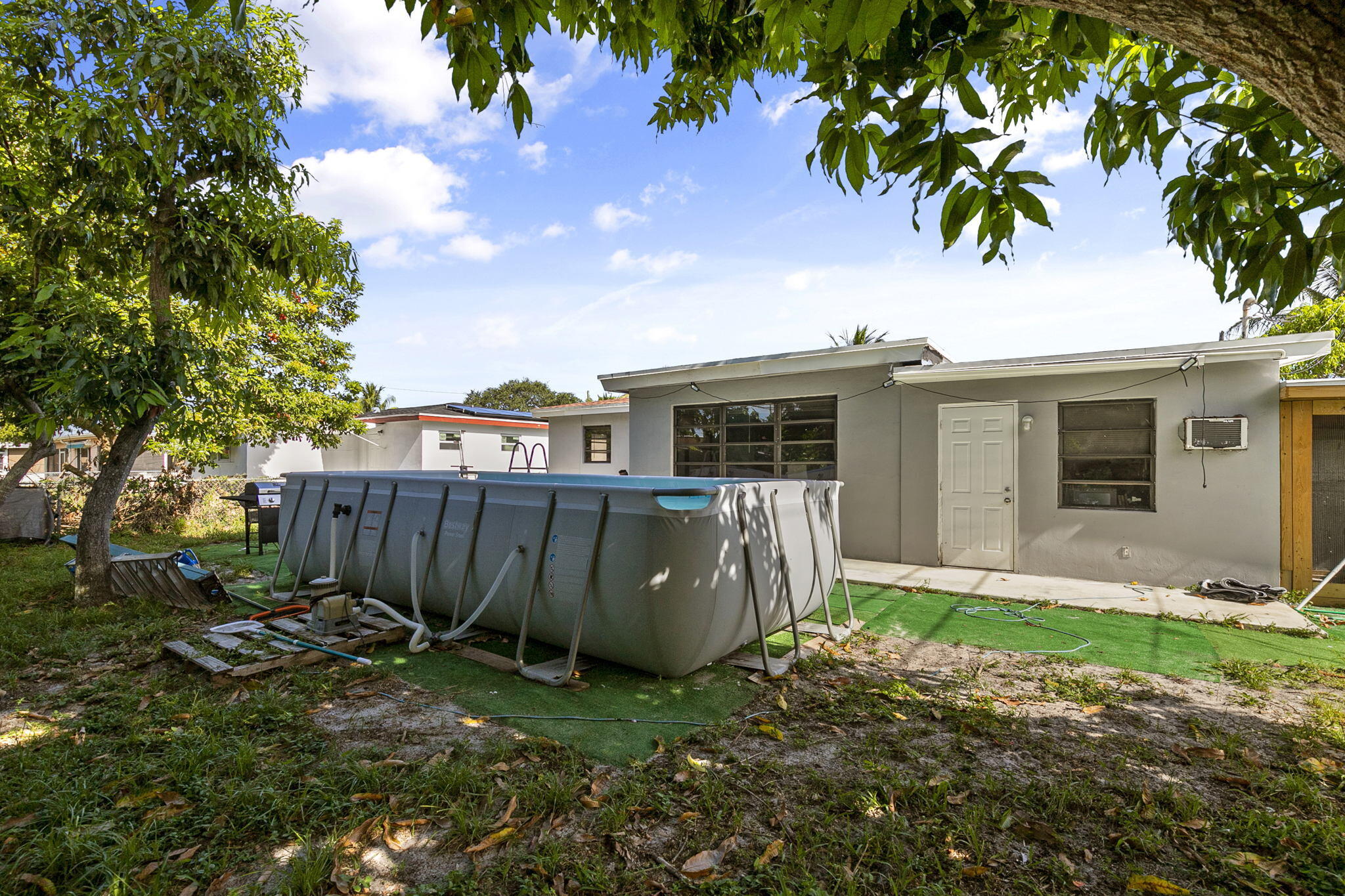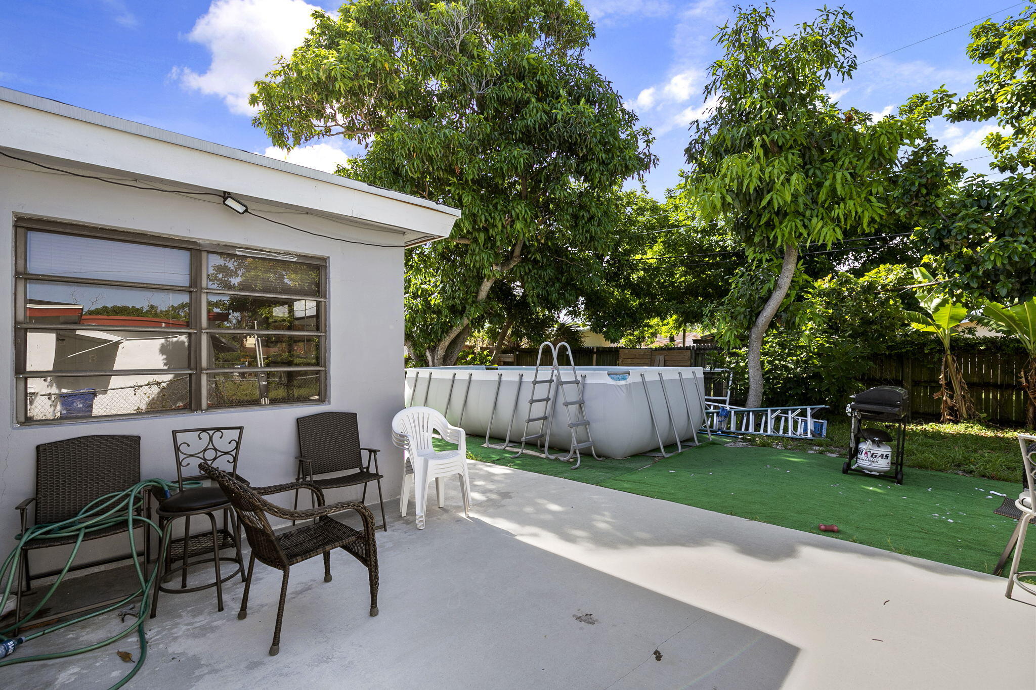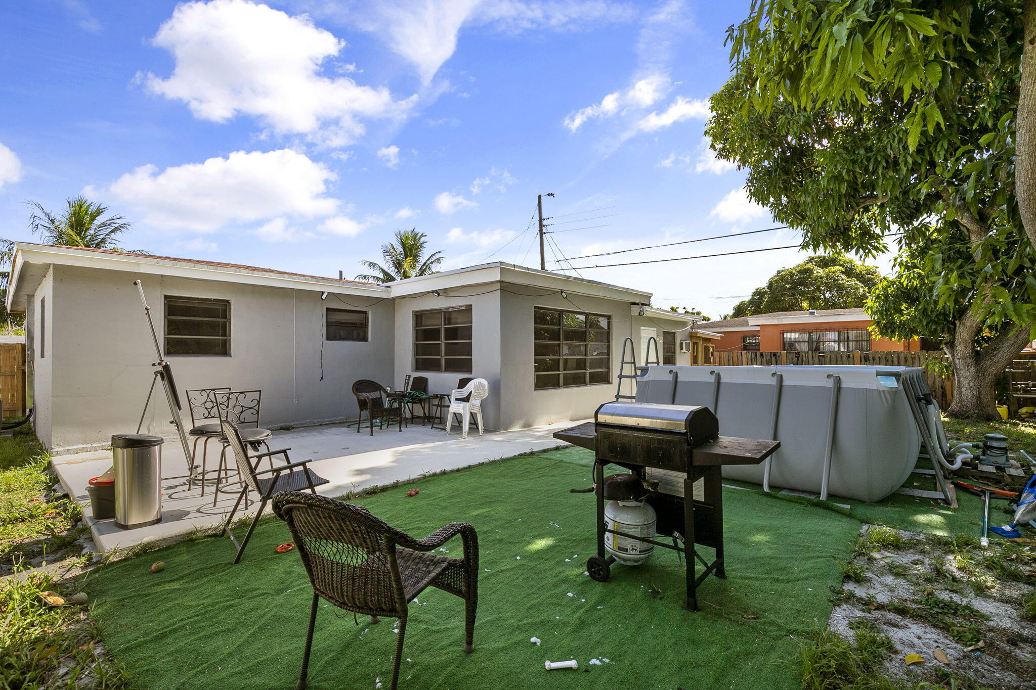Great Location! Charming CBS 3 Bedroom 2 Bathroom home Fully furnished on a quiet street with loads of curb appeal next to St. Thomas Aquinas High School. The property features tile floors throughout, living & dining, open concept eat in kitchen with updated cabinetry, master bedroom with walk in closets, addition room great for home office or 4th bedroom plus laundry / pantry. The property has a large fenced in back yard plus a covered carport & driveway. ,New roof , A/C water heater, breaker box, Insulation , Paint in and out, all done in 2022. Will not last .Pool does not convey.