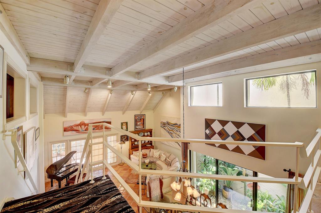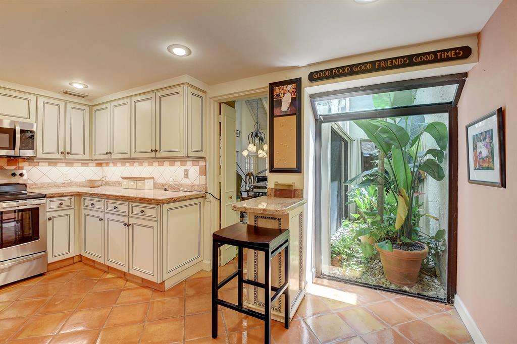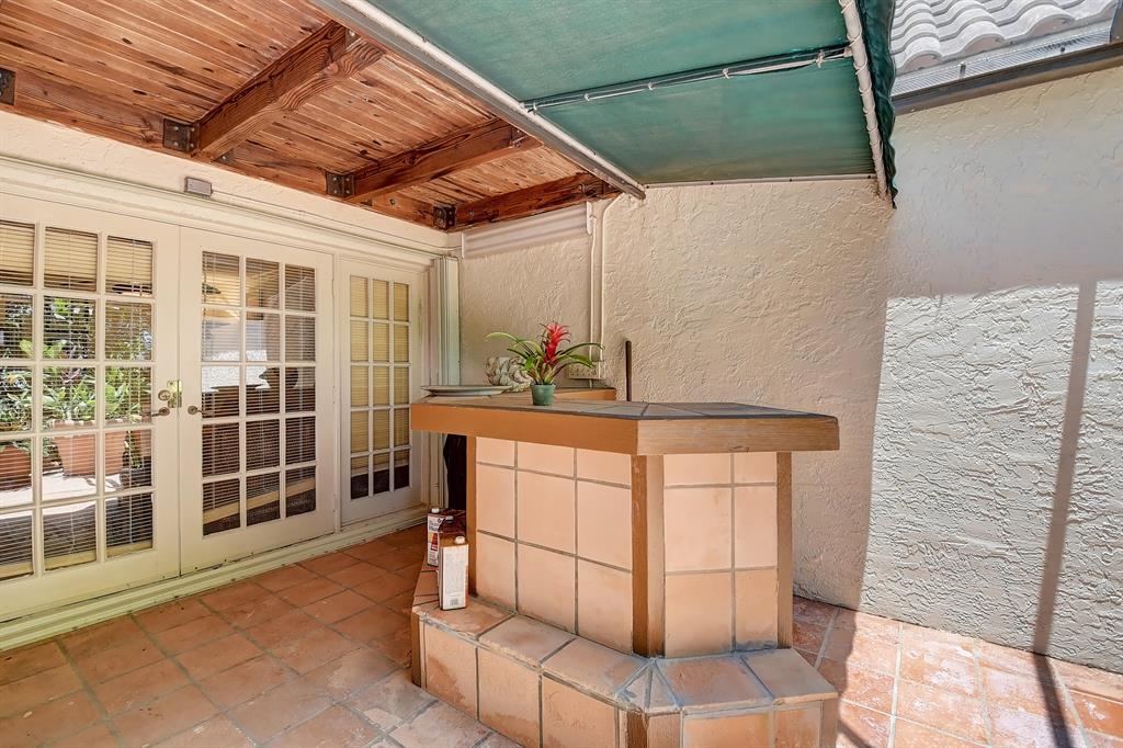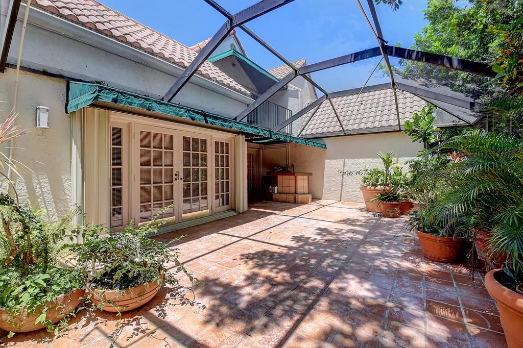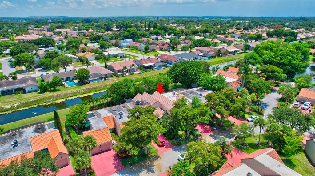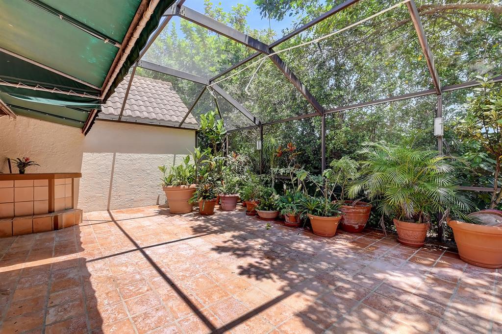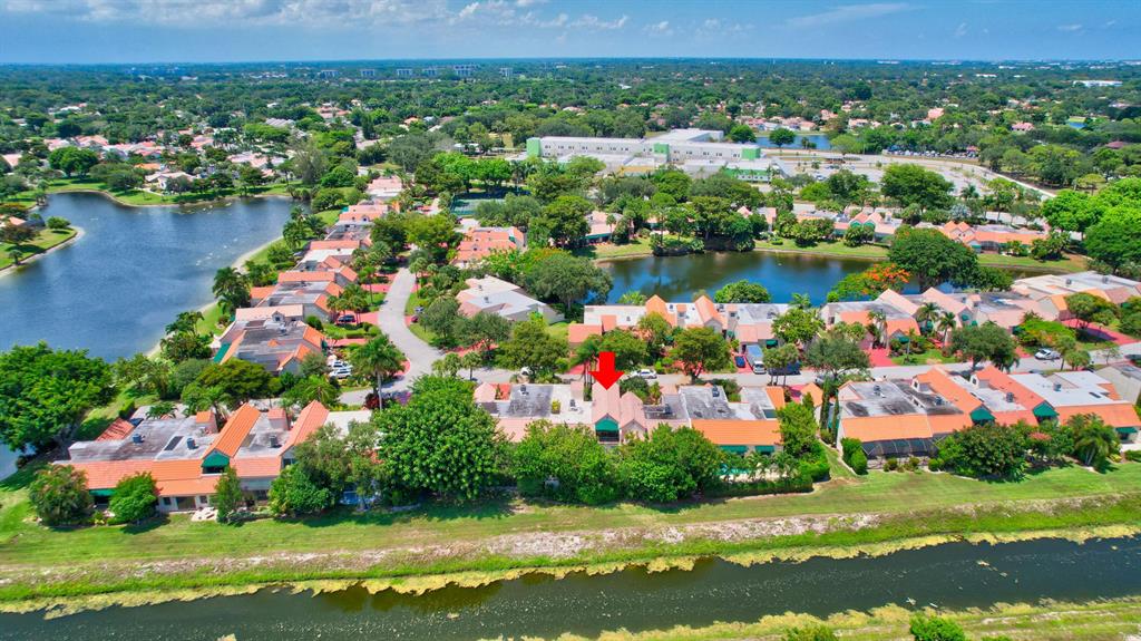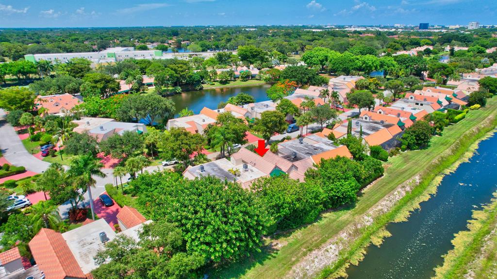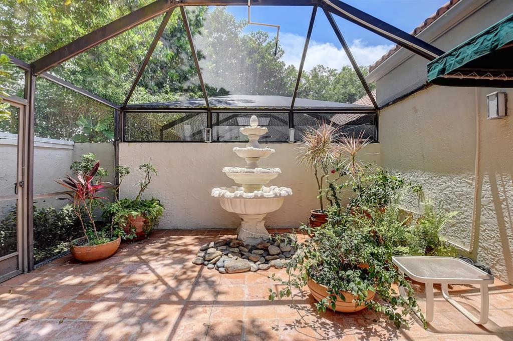 Charming townhome in great central Boca location! Floor plan features high ceilings in living and dining room, 2 bedrooms plus one bath down and master up with huge loft area and 1 car garage. Close to Verde elementary and houses of worship. This home is located on private canal and has huge screened patio with lush landscaping both front and back plus outdoor storage shed. The interior has tons of windows and atrium for additional light. Kitchen updated with light cabinets, granite counters and stainless steel appliances. Accordion hurricane shutters. Other features include built-ins in dining room, loft and third bedroom/den, plantation shutters, walk in closet plus wall closets in master bedroom, extra storage in finished attic and much more! A/C 2014 and roof replaced 2001.