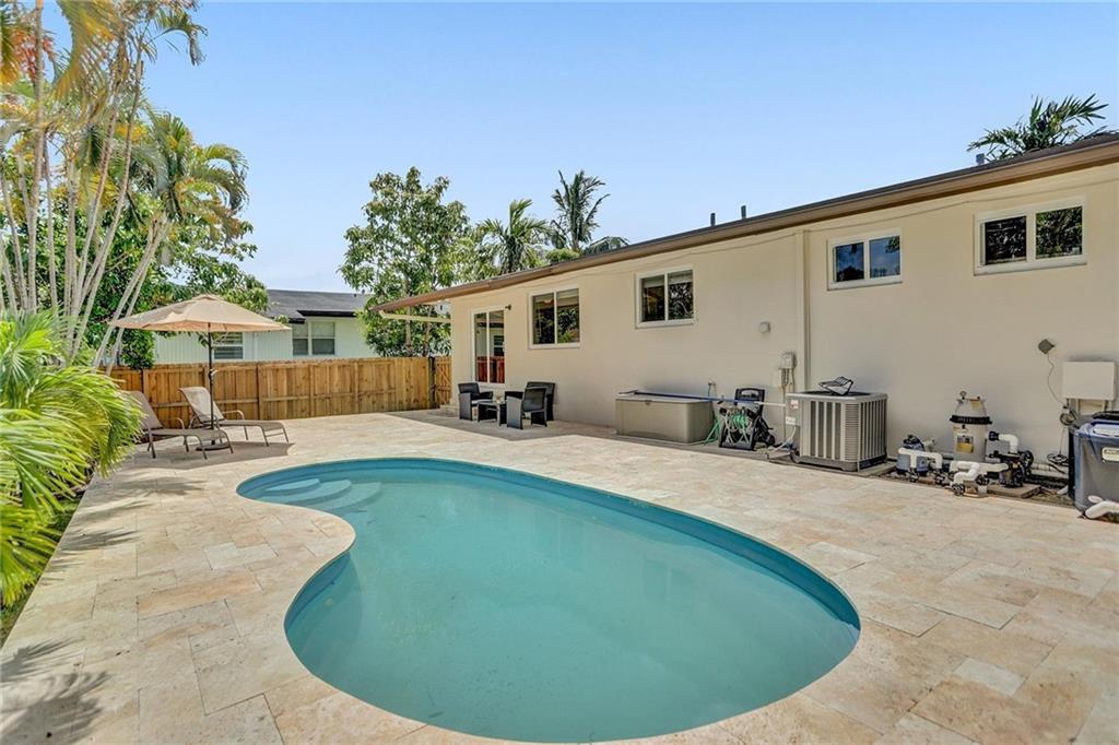 Exceptional location in Edgewood that offers quick access to and from Ft Lauderdale airport, I95, 595, downtown, Las Olas Blvd., and the beach. Located on a quiet cul-de-sac, dead end street. The home offers 1,378 SQ FT under air, 3 bedrooms, 2 baths, and a 1 car garage with storage shelves and cabinets. Parking for 5 additional cars in the driveway. No HOA. Bring your boat or RV. Views of Edgewood Passive Neighborhood Park out your front windows and a short walk to the park’s north entrance.You will love spending time in this backyard with a heated pool surrounded by a 700+ sq. ft. travertine patio. Concrete slab for a shed. Nest thermostat, Nest keyless front door lock and doorbell, and Nest motion activated security cameras with floodlights in front and back.