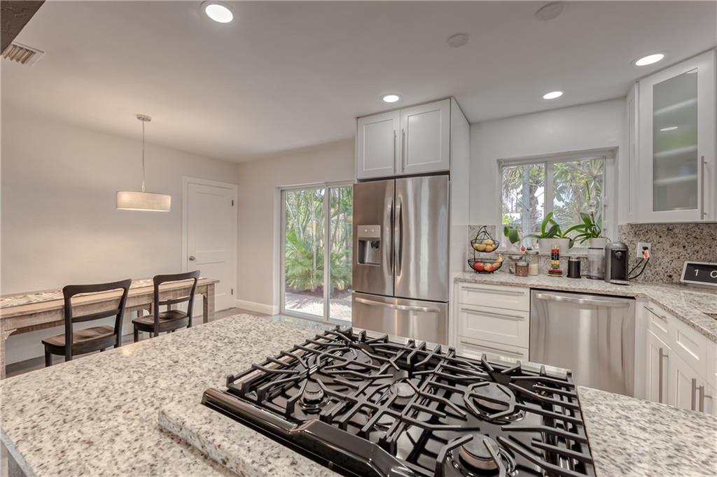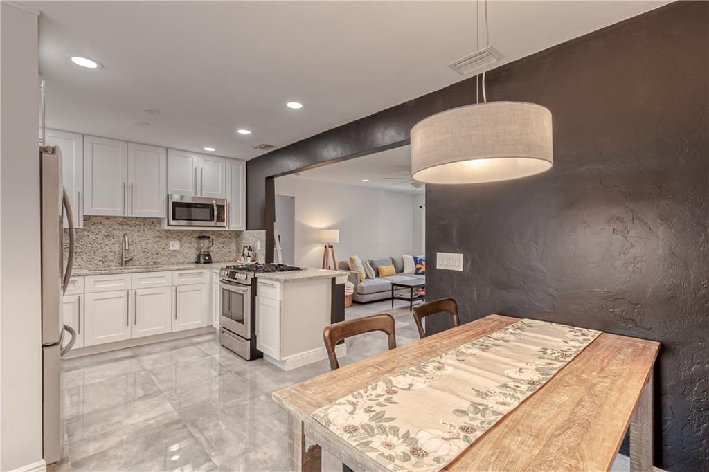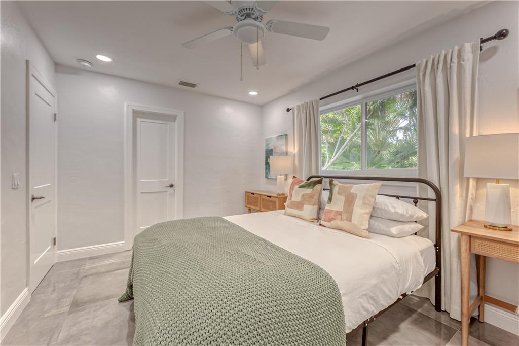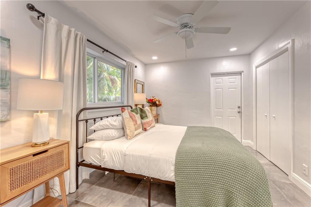 Bright and modern 3 bed, 2 bath home with plenty of room for a pool. Open Kitchen with dining area and indoor laundry room. Primary /Owner's suite on the back of the house, with separate entry door. Renovations done in 2017: porcelain flooring throughout, all impact windows and doors, new roof in 2015, plumbing line trenched and replaced in 2021. A/C new in 2013. Natural gas line from the street runs the stove / oven, dryer, tankless hot water heater, and the A/C heater. Nice paver patio in the large back yard for lovely outdoor dining experiences. One car carport with large storage closet. Very pleasant home ready for you!