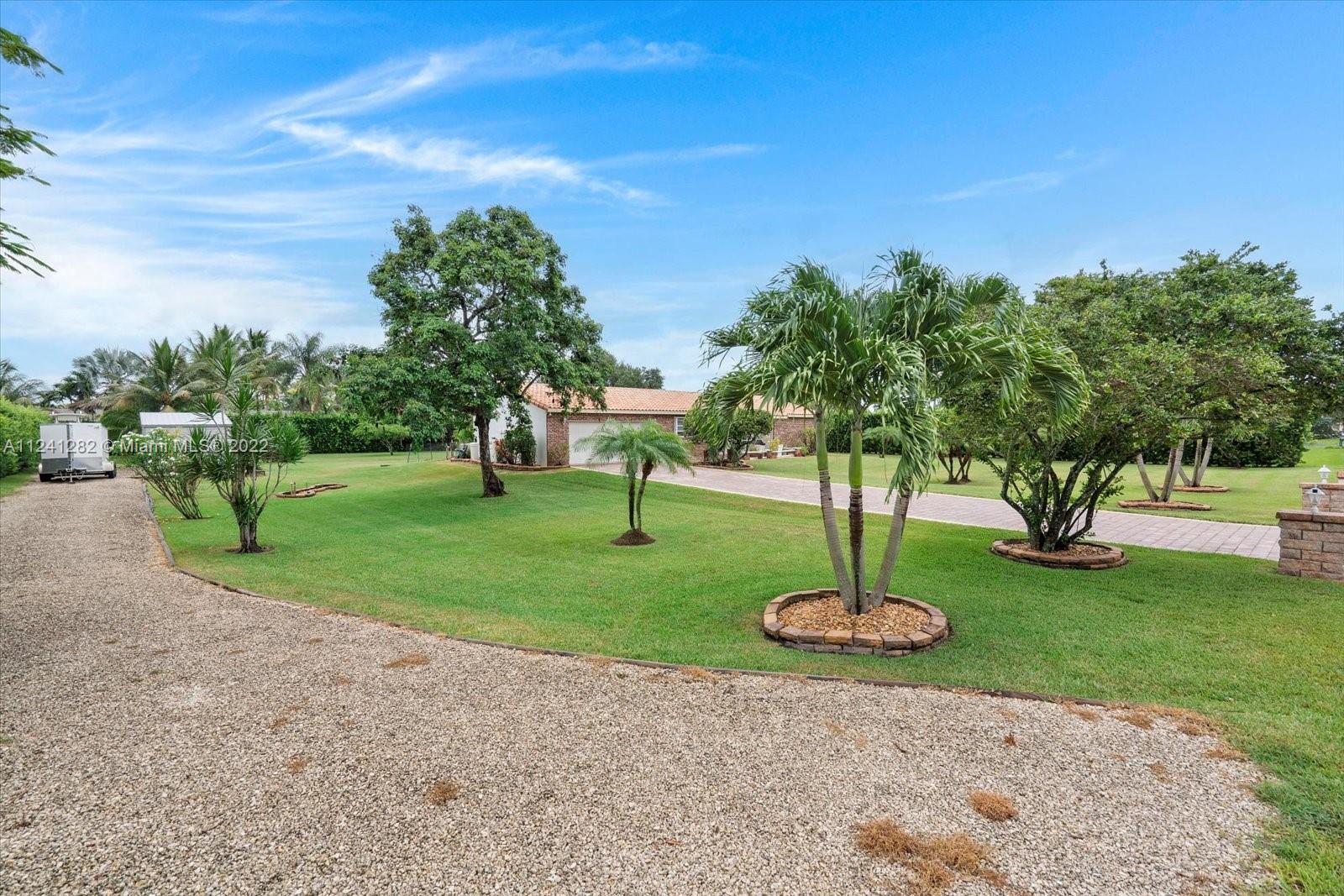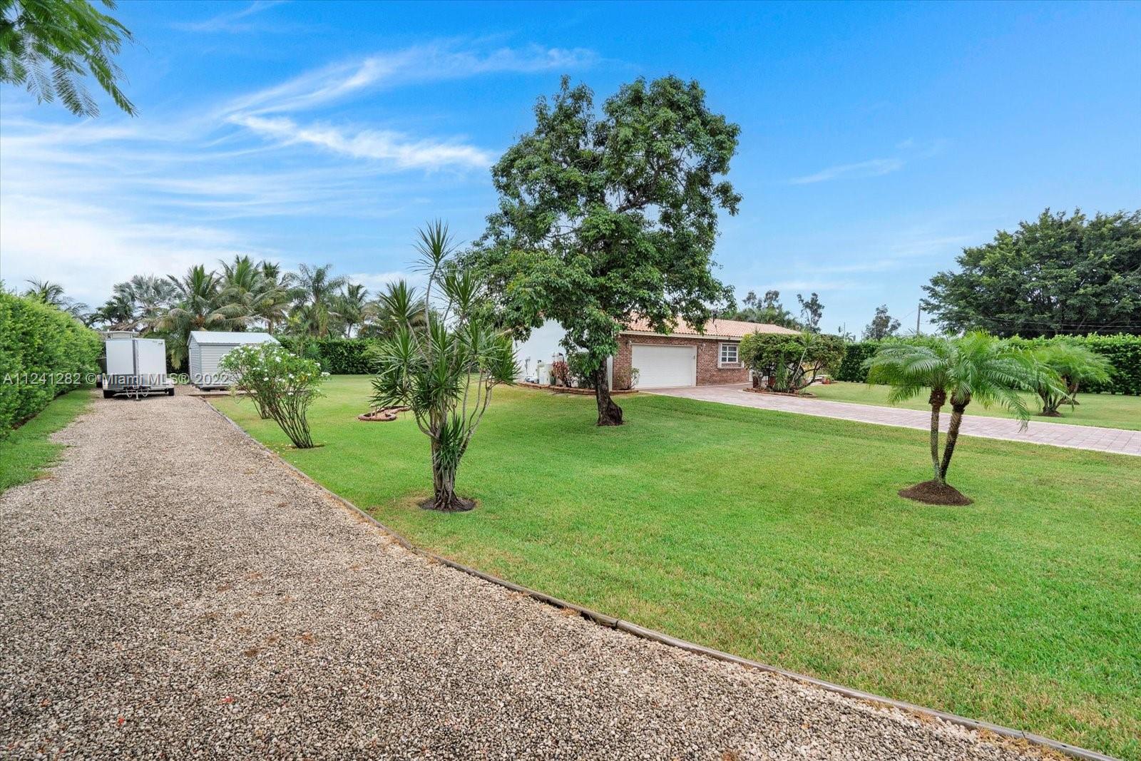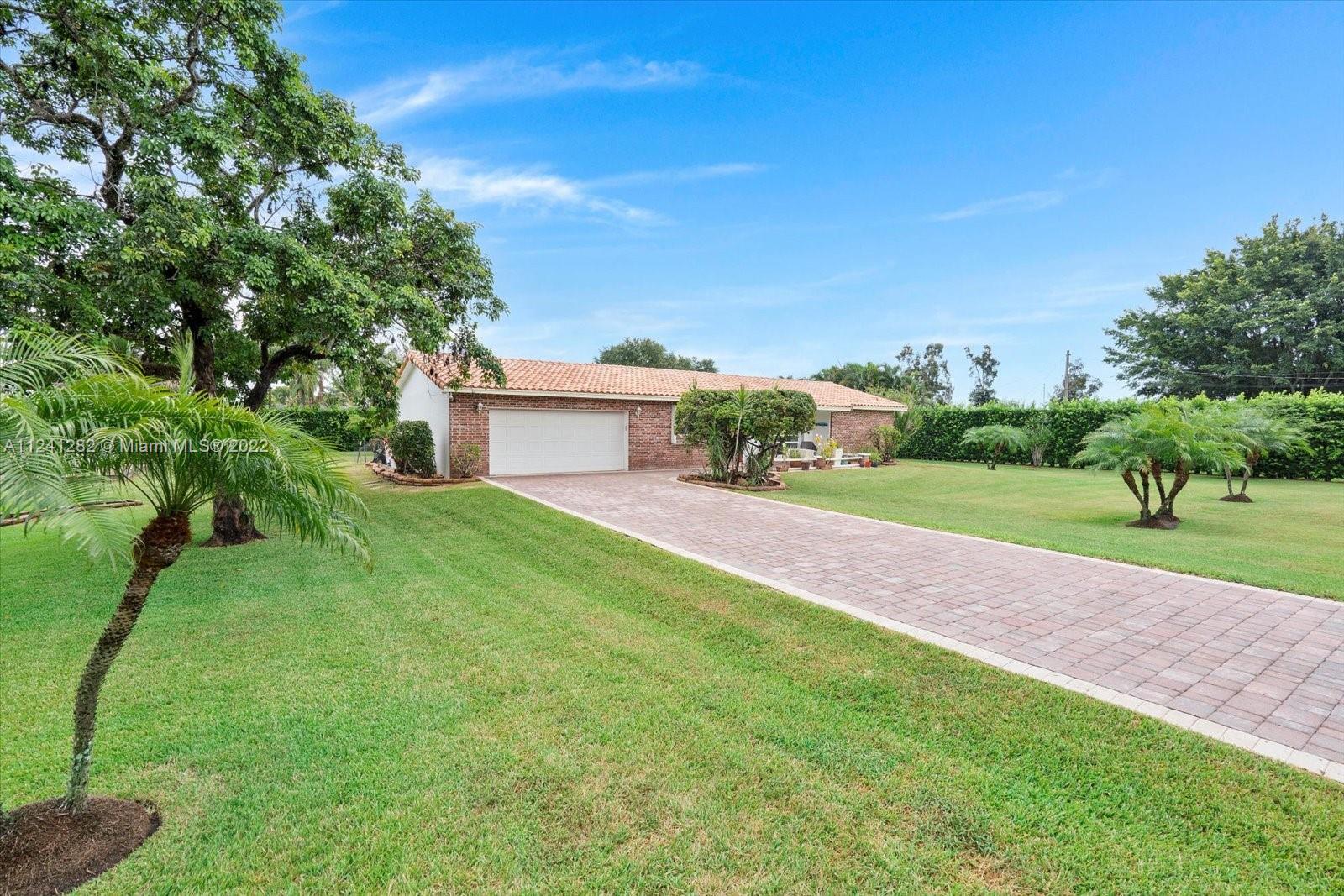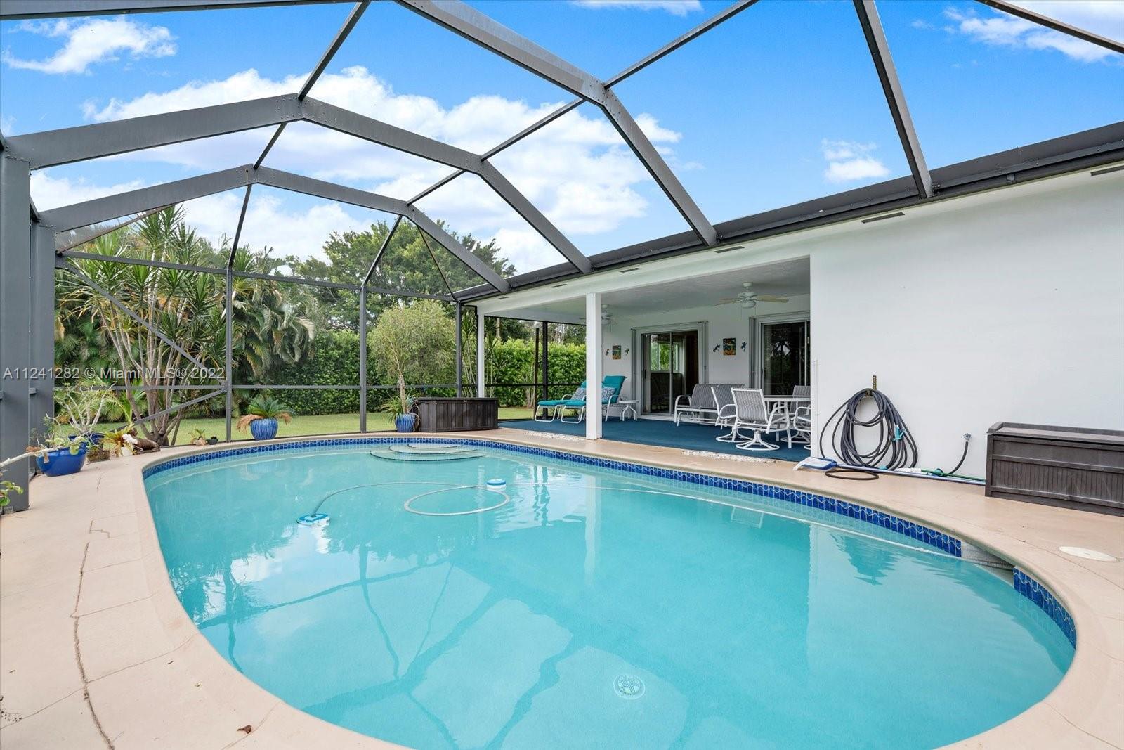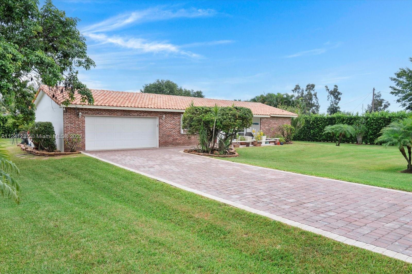 Stunner one-acre lot in Davie offers plenty of space to expand this cozy 2 bedrooms 2 bathrooms single family with screened pool. The one-story home has split floor plan, master bedroom with walking closet, hurricane impact windows, accordion shutters and impact doors. The screened backyard area offers a separate covered area so you can enjoy the pool without getting sunburned. The oversized lot features lush tropical landscaping, with fruit trees including coconut and mango trees. Storage Shed 24x12 offers extra storage space/workshop. 2 Car garage and super long driveway fit up to 6 cars and additional space to park your boat, RV, or trailer. No HOA! A hardwired generator for the whole home. New A/C, pool equipment and water softener. A+ schools. Close to I-595, restaurants, and shopping