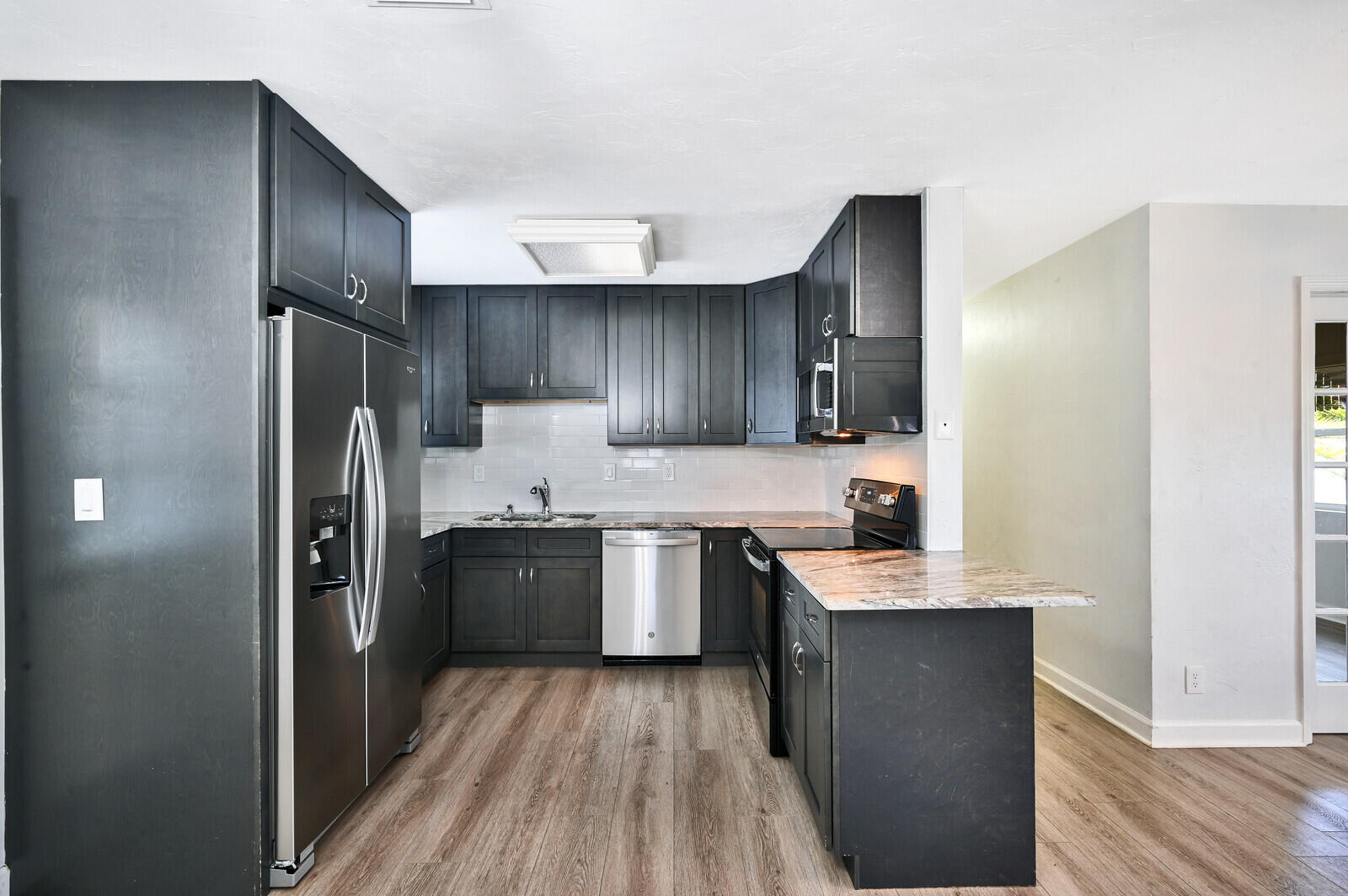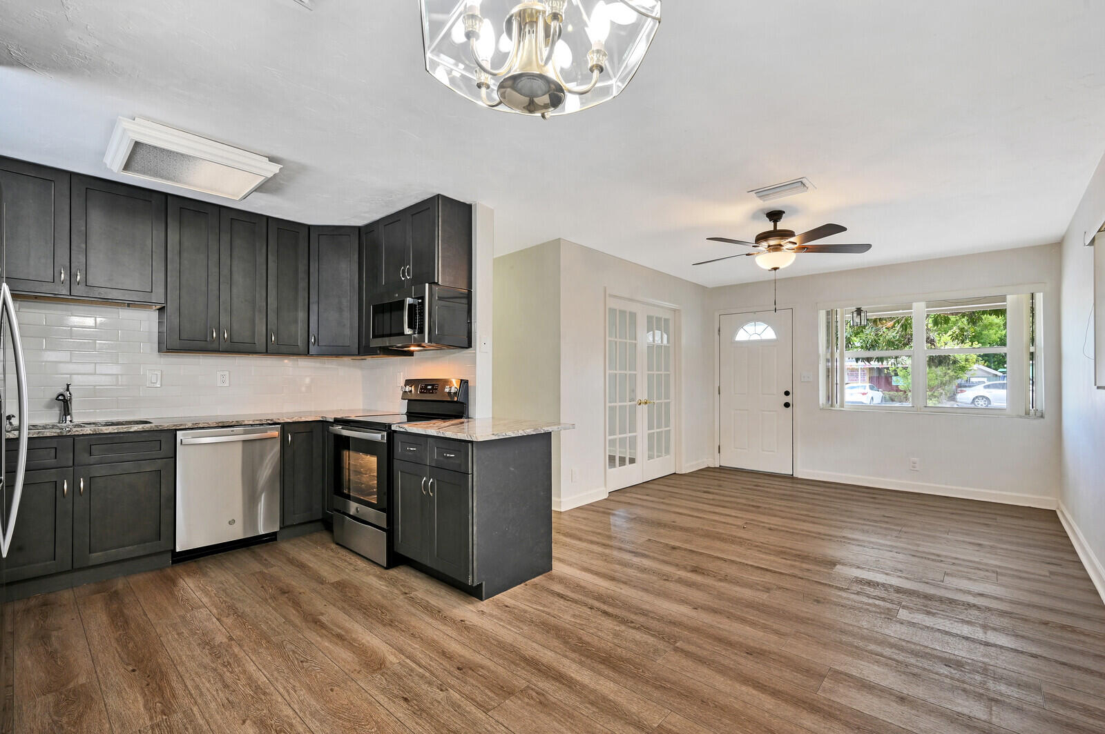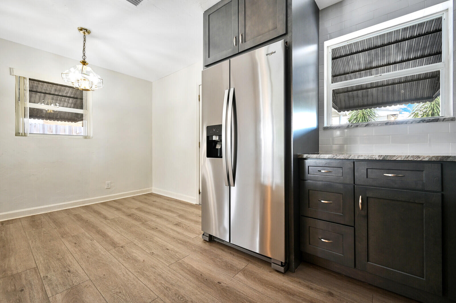 This completely renovated 3 bedroom home is located in the Southerly Hills neighborhood of West Palm Beach. Features include: a new metal roof in 2022, new kitchen with 42'' hardwood cabinetry and granite countertops (2021), brand new stainless steel appliances, completely renovated bathroom , new luxury vinyl plank flooring, recently painted exterior, washer/dryer, garage, large fenced in backyard, & more.. Located just over 2 miles from Palm Beach Island and only 3 miles to downtown West Palm Beach. VIRTUAL TOUR AVAILABLE.