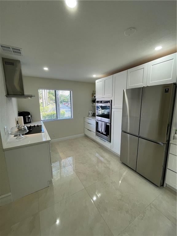 Two story townhouse in Las Brisas, Prime Central Boca Location within easy walking distance of House of Worship. Brand New Kitchen, New Appliances, New AC and Washer/Dryer. marble floor, 2 parking spaces outside your front door. 2 ovens, 2 sinks, vaulted ceilings, built in storage under staircase. Option to buy fully furnished.
