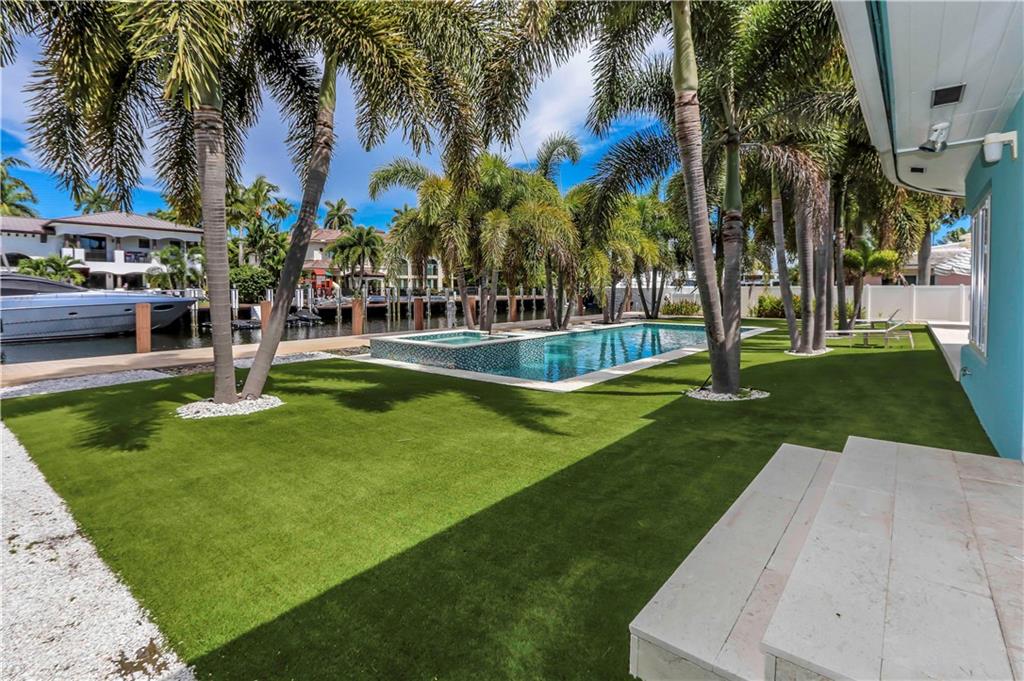 MOTIVATED SELLER! STUNNING Mid-Century Modern home in Ft. Lauderdale off Las Olas. The moment you step into this home you will be awed by the curved floor to ceiling windows which overlook the sleek 48'x16' pool and spa. Large white stone patio, artificial turf and Foxtail Palm trees complete your backyard resort. The property is 120' deep by 110' wide, two lots from the point on an extra wide and deep canal that will accommodate your 90' yacht. Original terrazzo floors throughout, original plaster crown molding, oversized bedrooms with full baths and Euro Tech hurricane windows and doors make this home extra special. The updated kitchen includes a Bosch dishwasher, induction cooktop, double oven, refrigerator and trash compactor. A BEAUTIFUL MID-CENTURY MODERN HOME with a WOW factor.